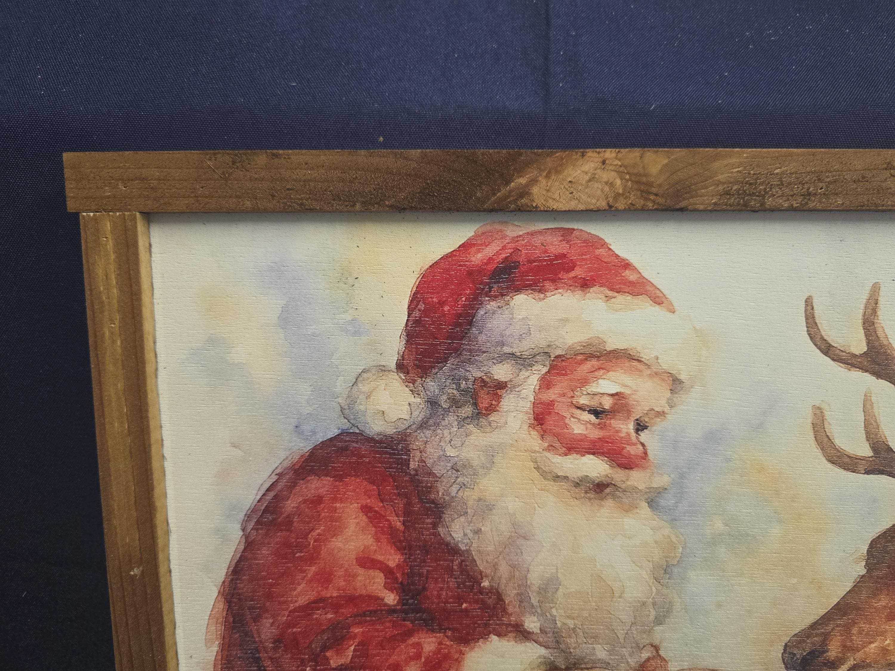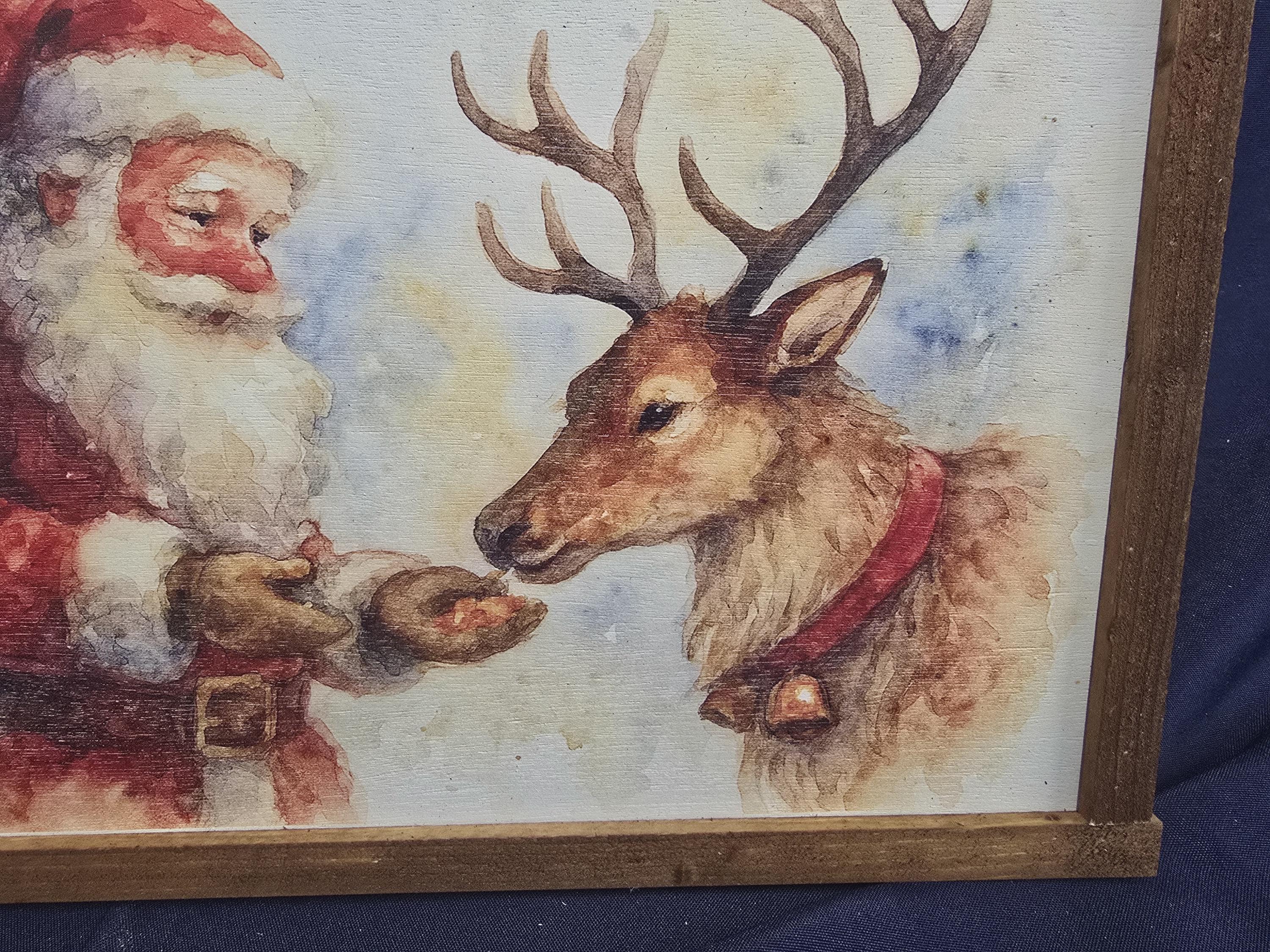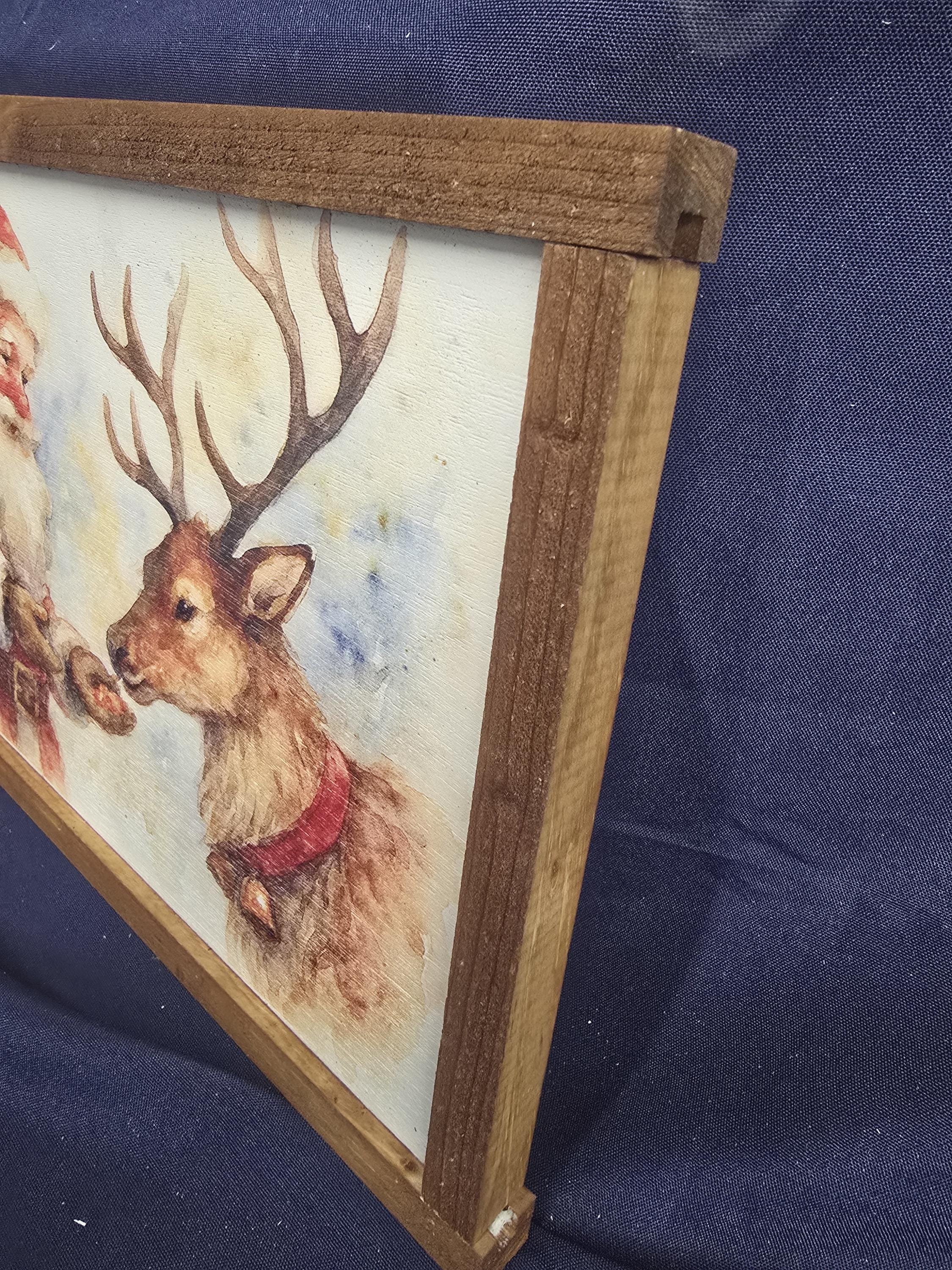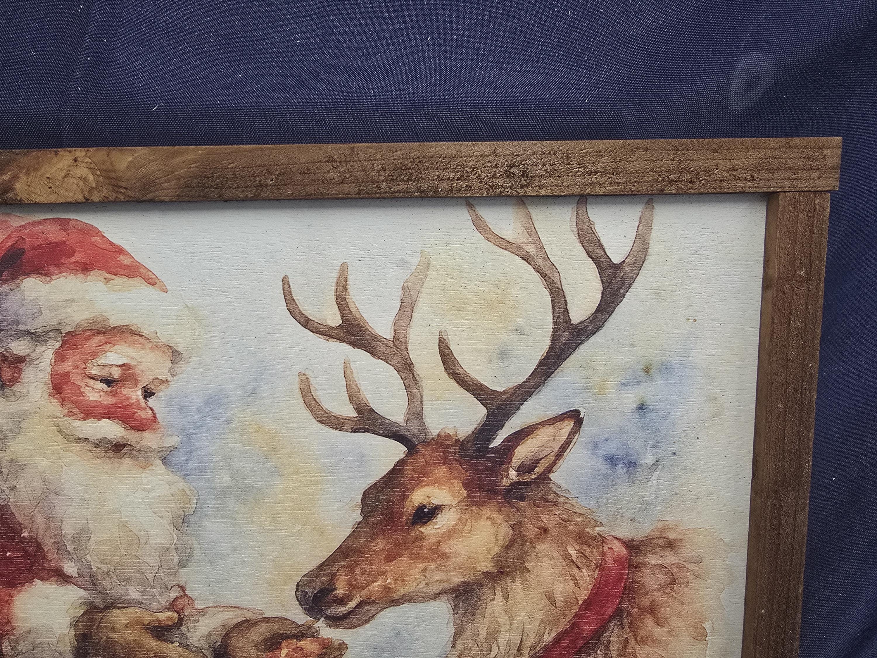 Santa and Reindeer Printed Wood Wall Art Sign with Frame
