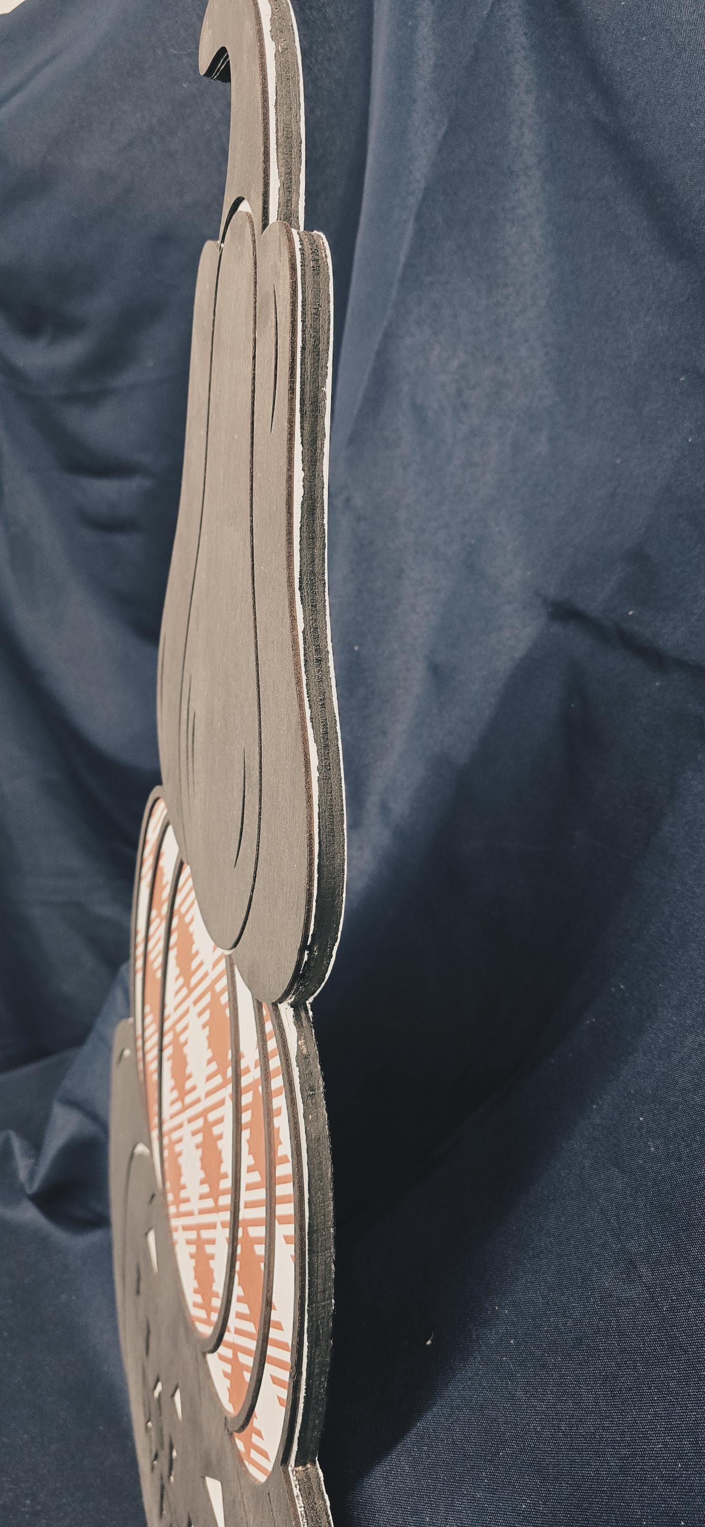They are plywood details stand off of the board, approx. 1/8”. Please see photos.