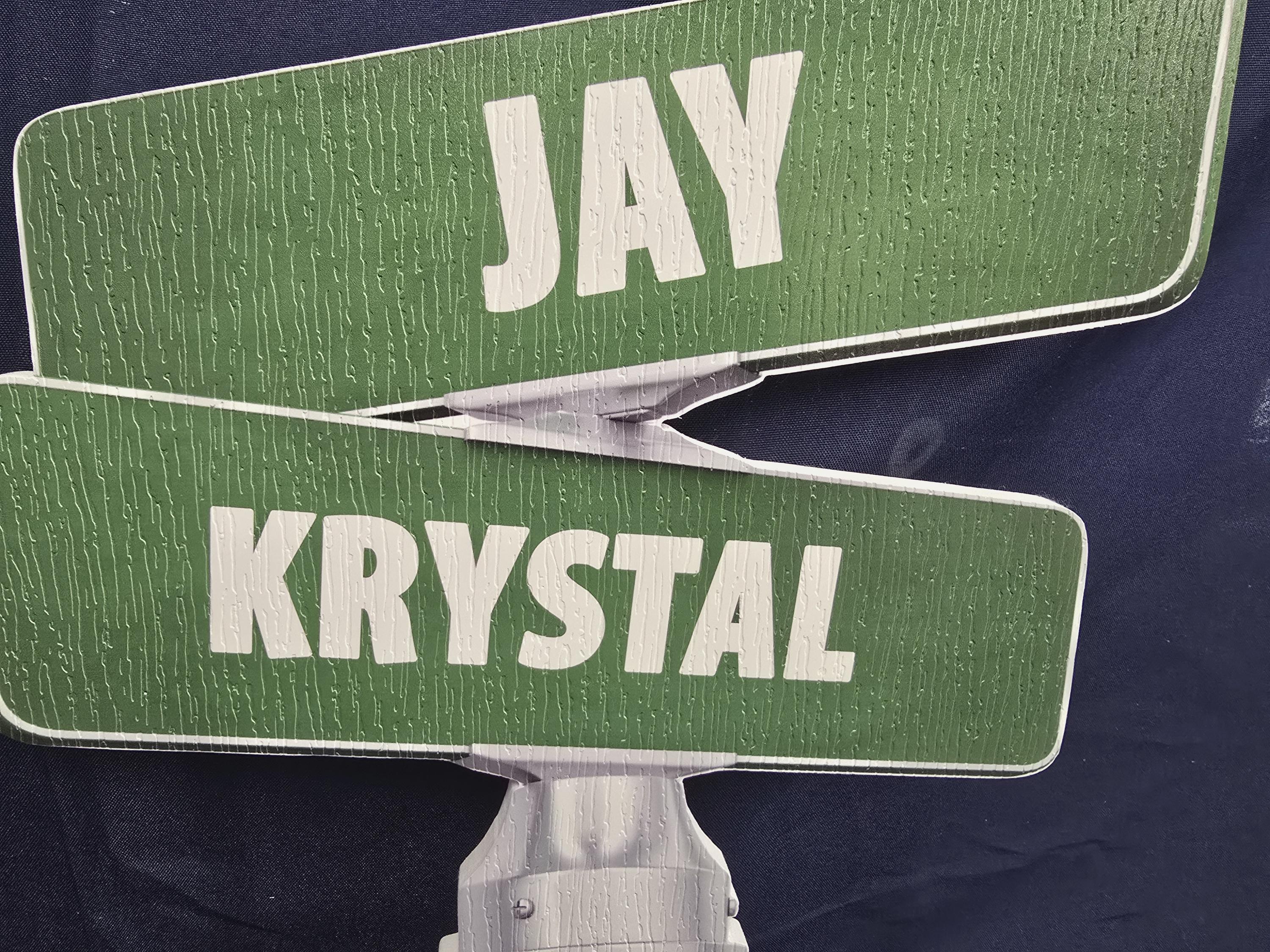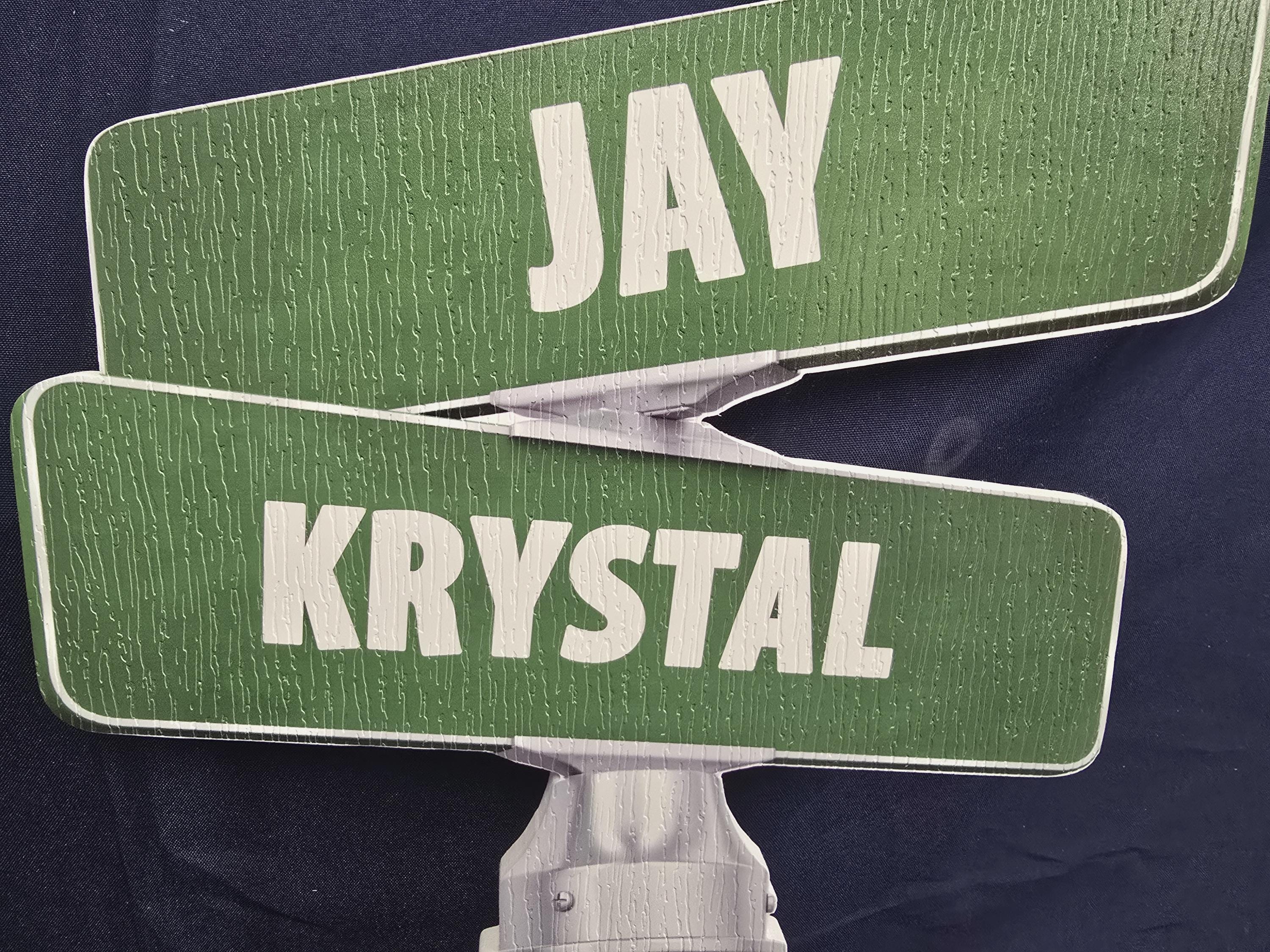 Custom Weatherproof pvc Sign Personalized Textured Great for hanging or wall mounted Valentines Day Wedding Street Sign Crossed Path