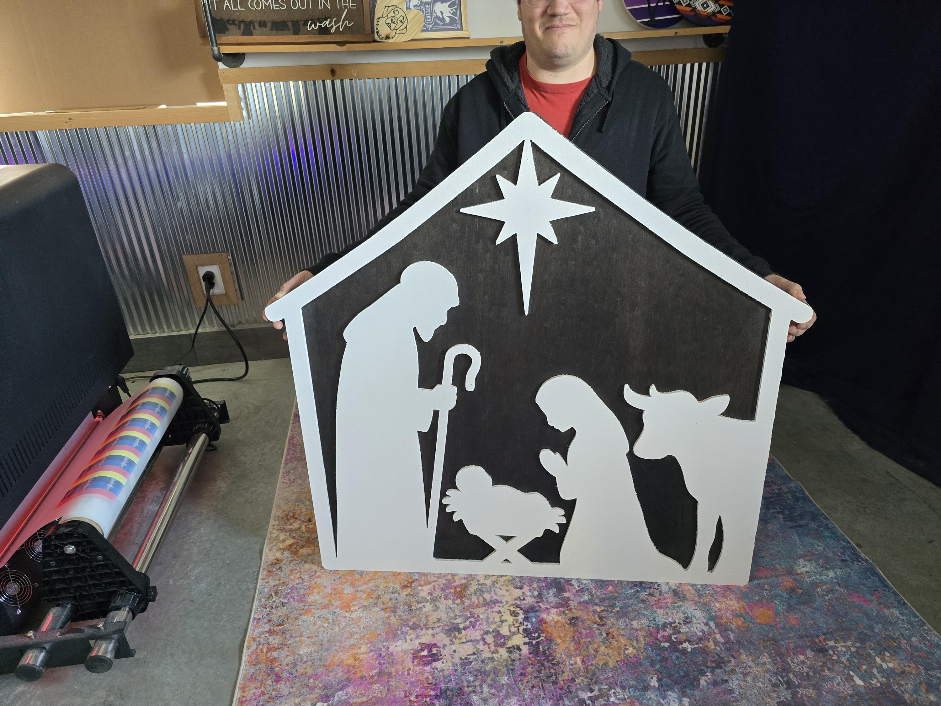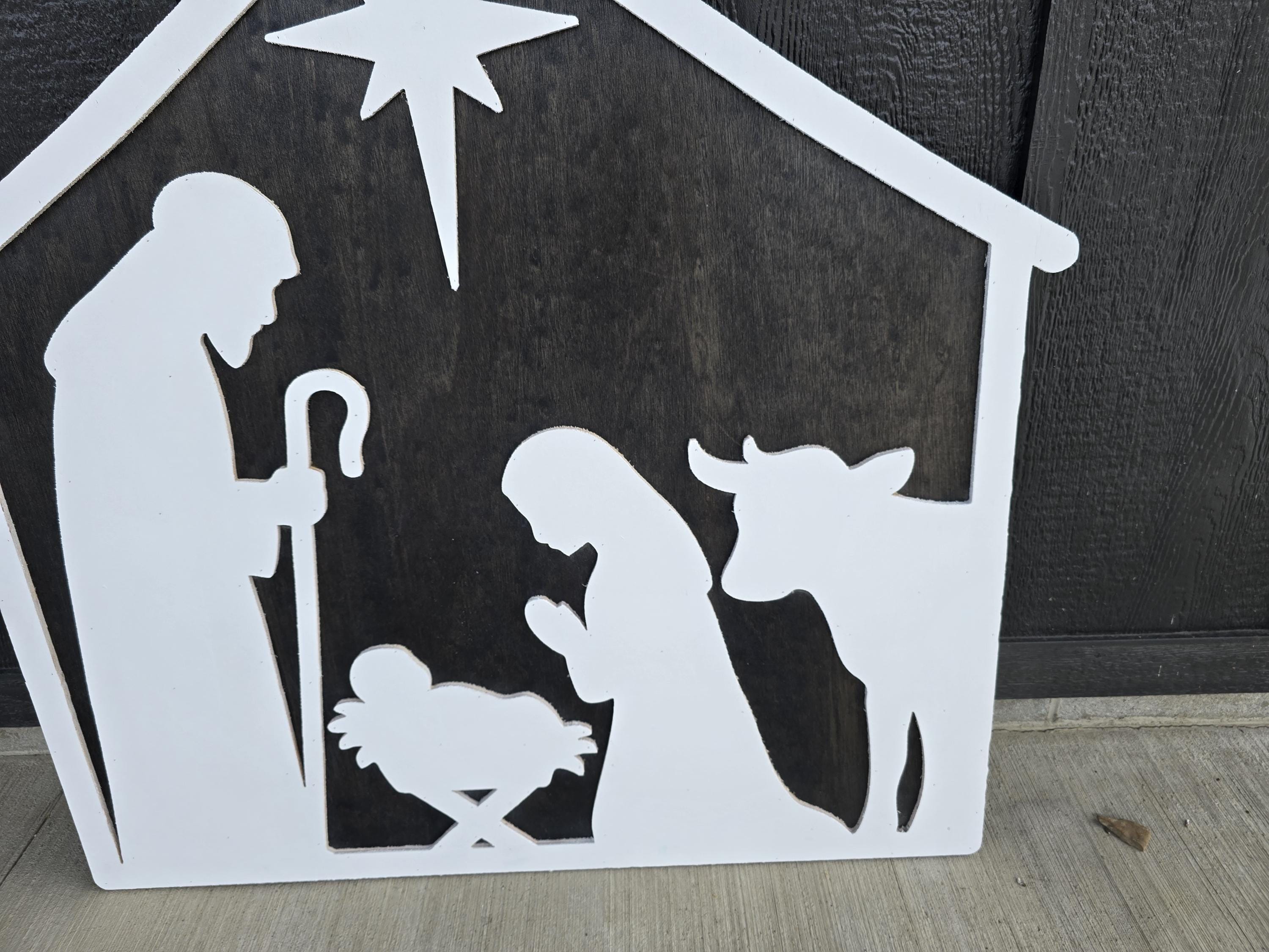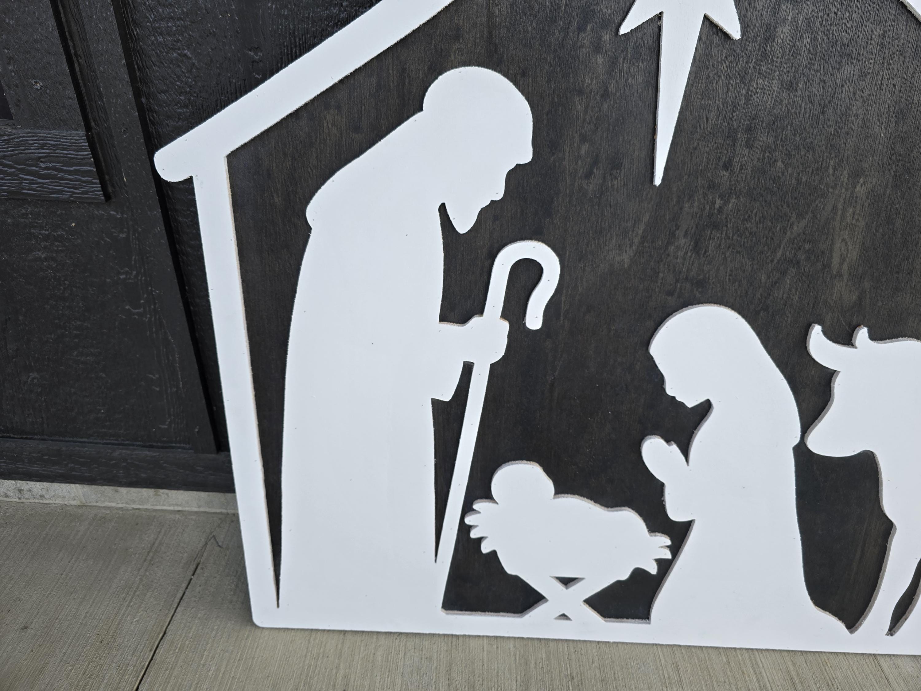 We have created a nativity sign made completely out of wood.