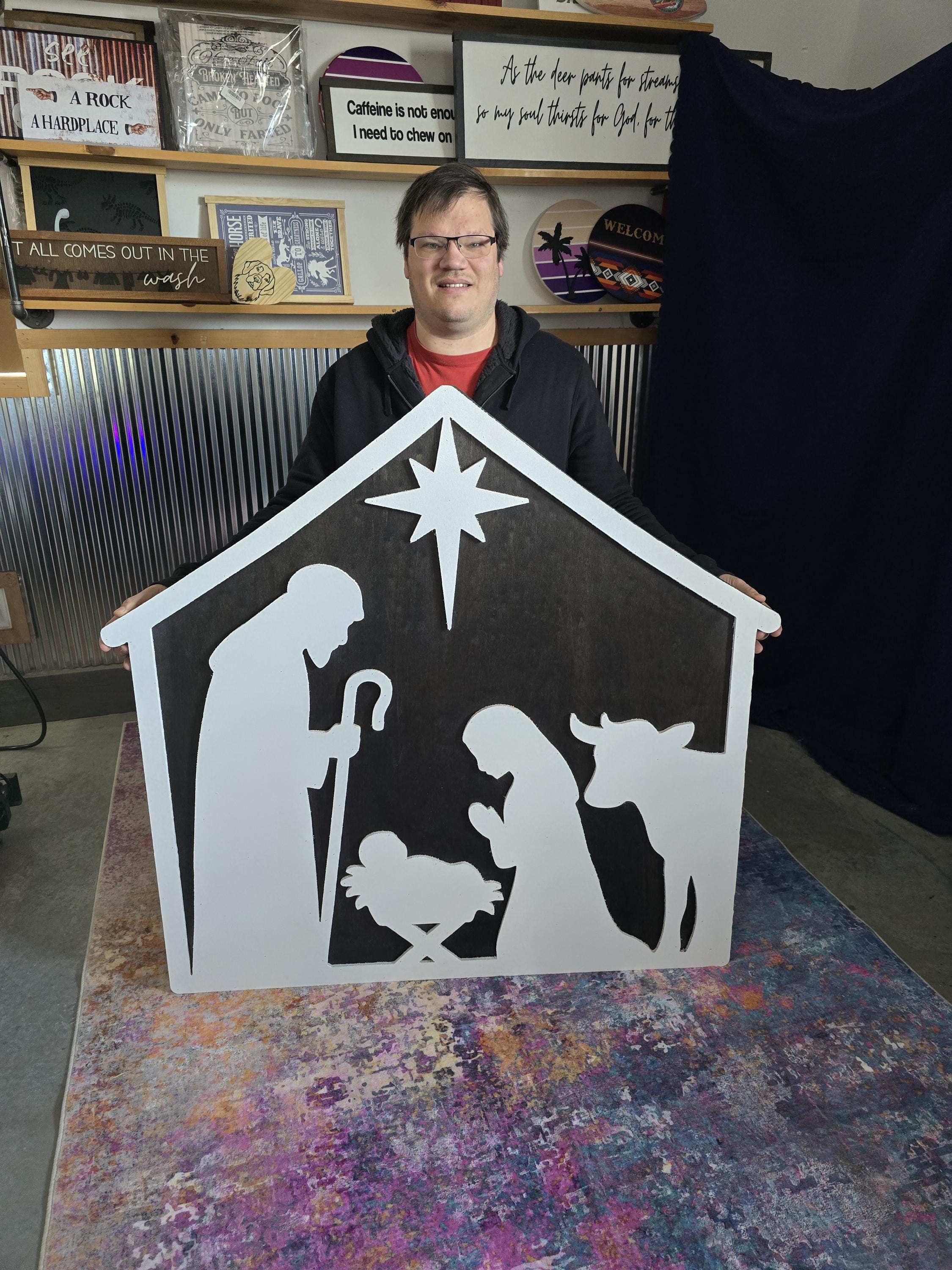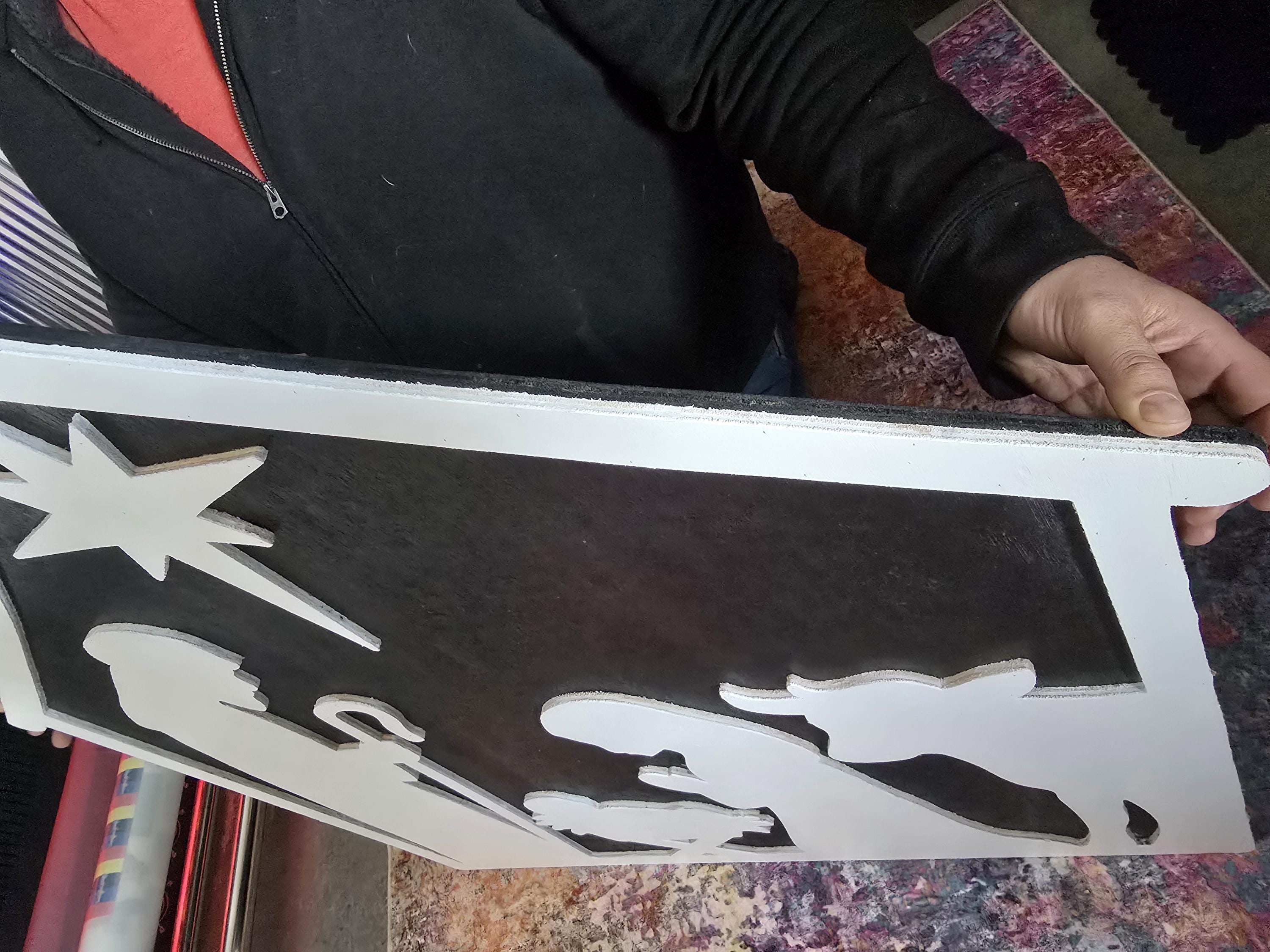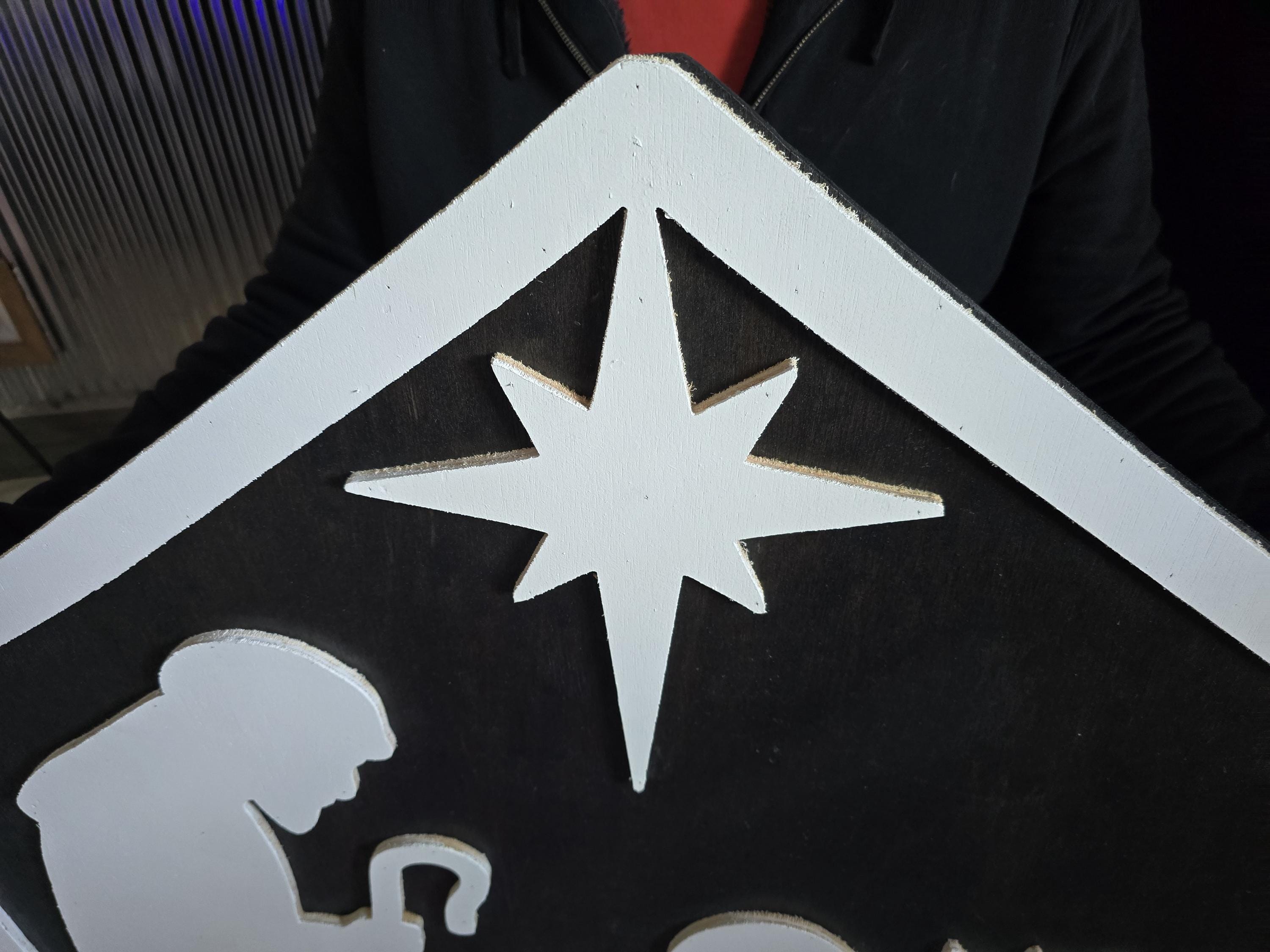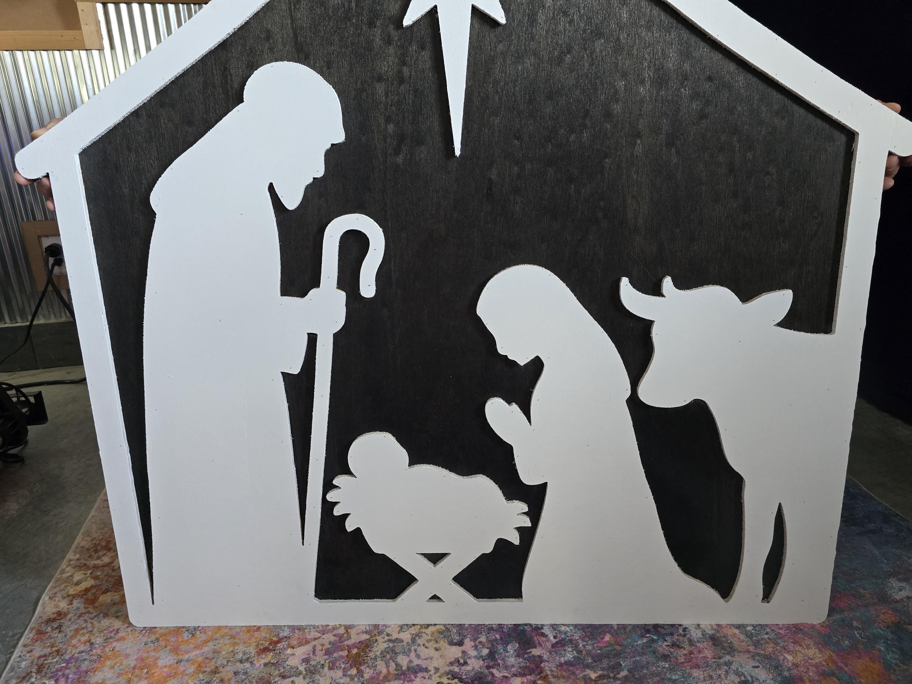 We have created a nativity sign made completely out of wood.