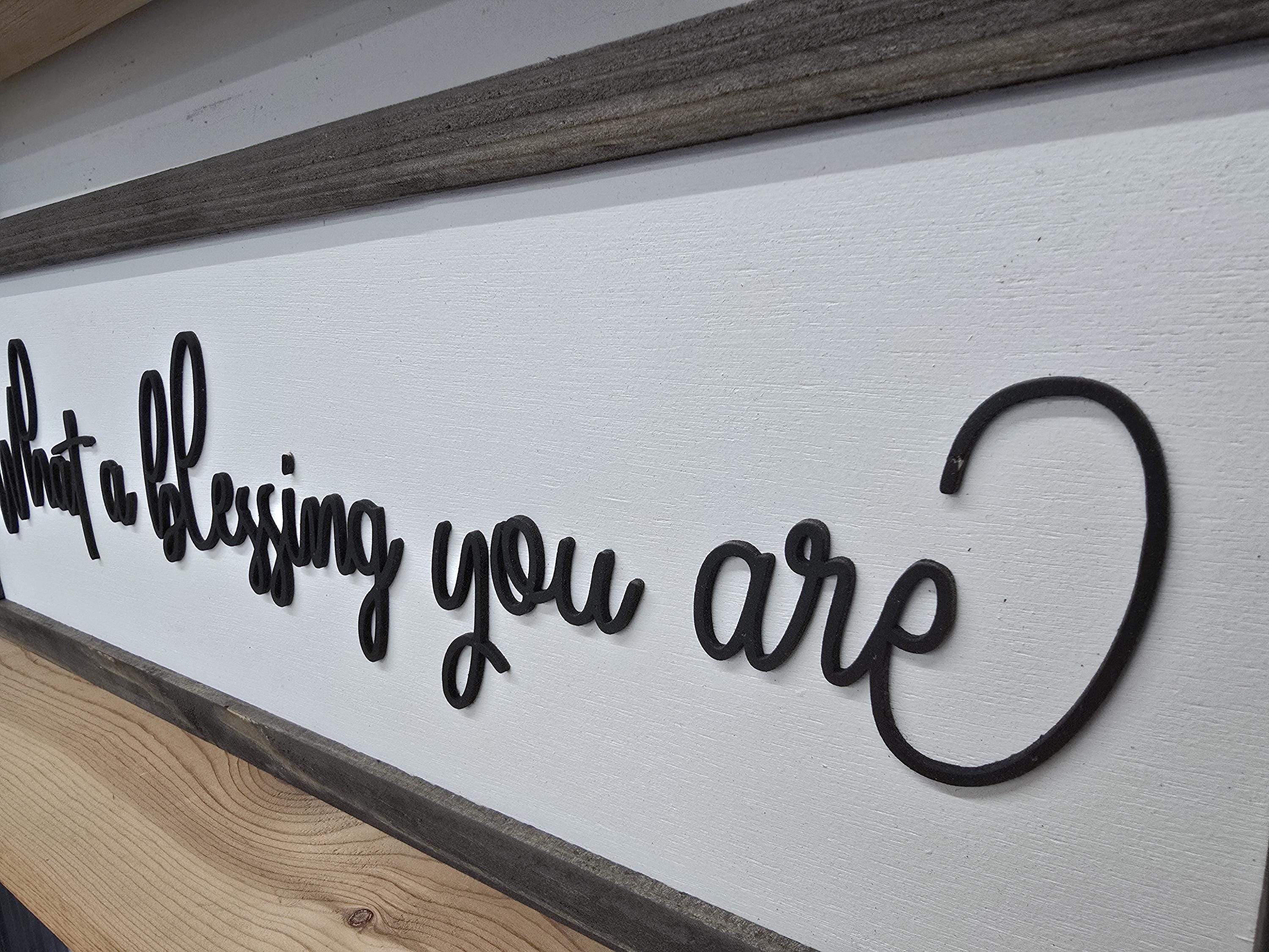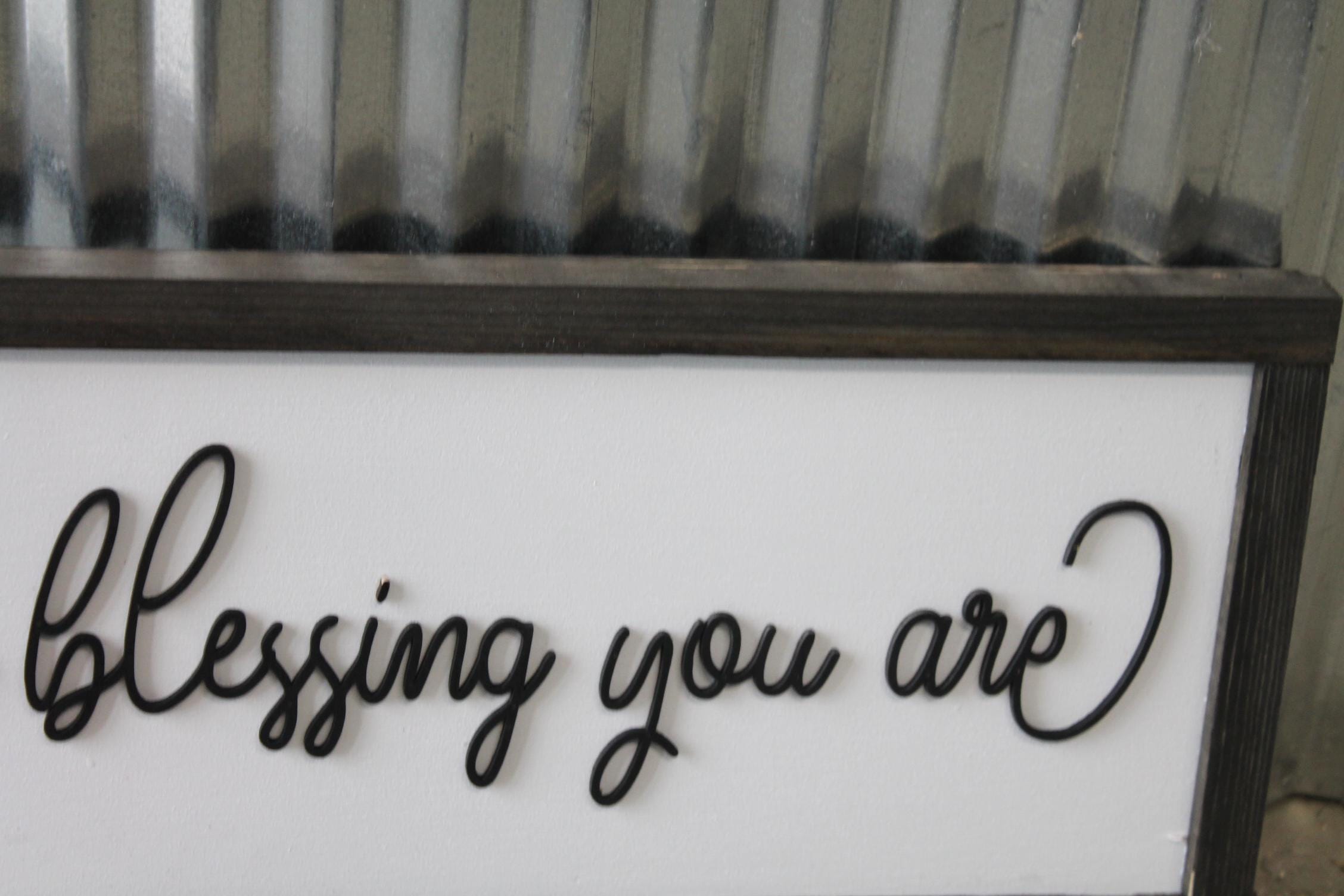 The size is in inches, and it is the overall size of the size, frame included. It is mounted on white painted 3/8 inch plywood with 1/4 inch laser cut plywood letters. Complete with solid wood frame. The frame is stained in an ebony coloring.