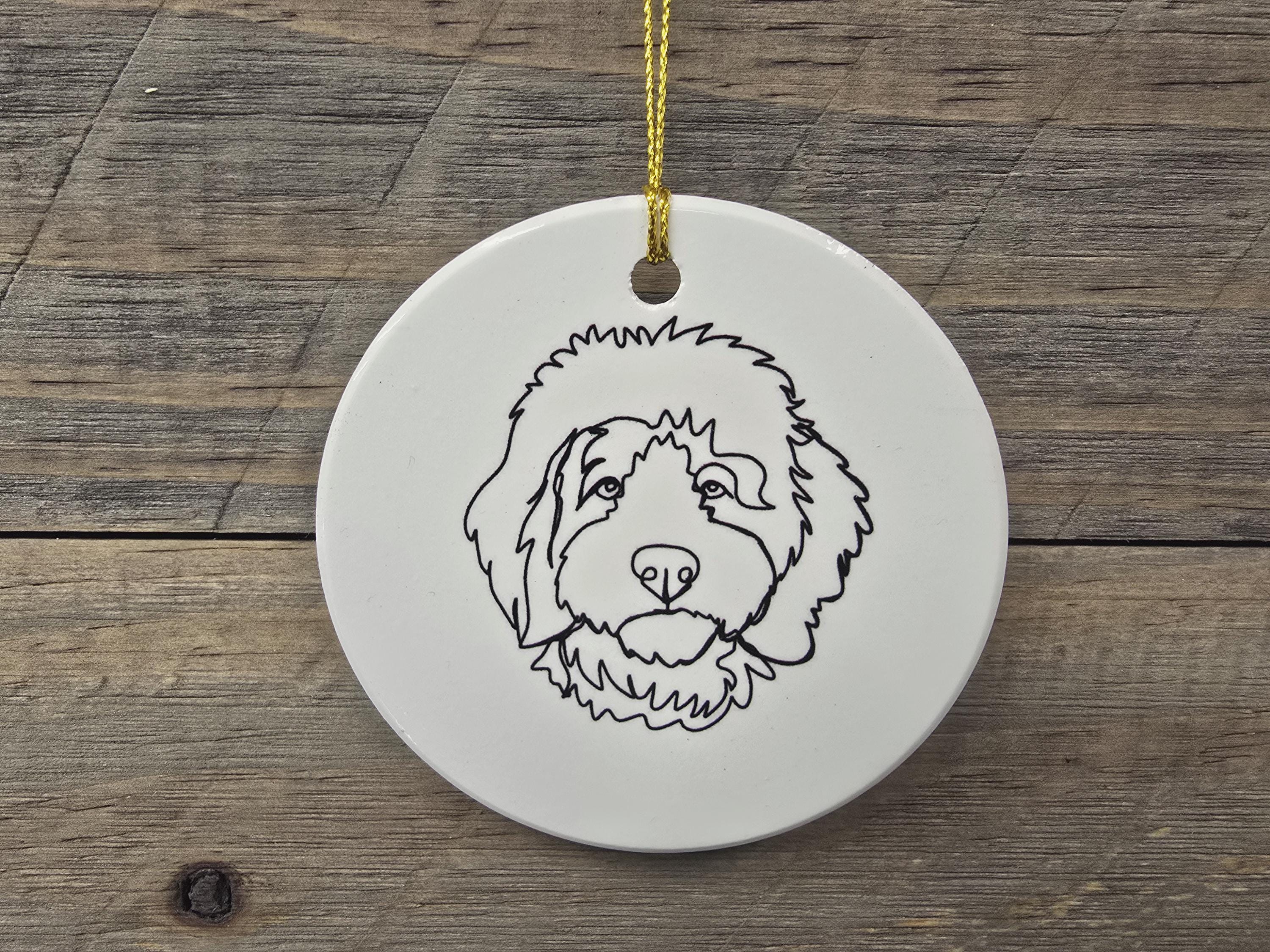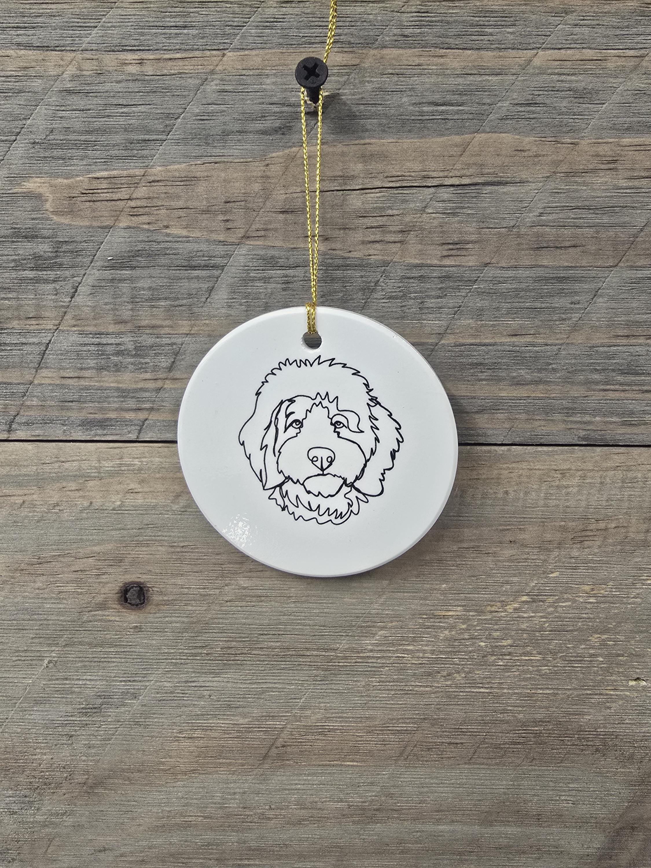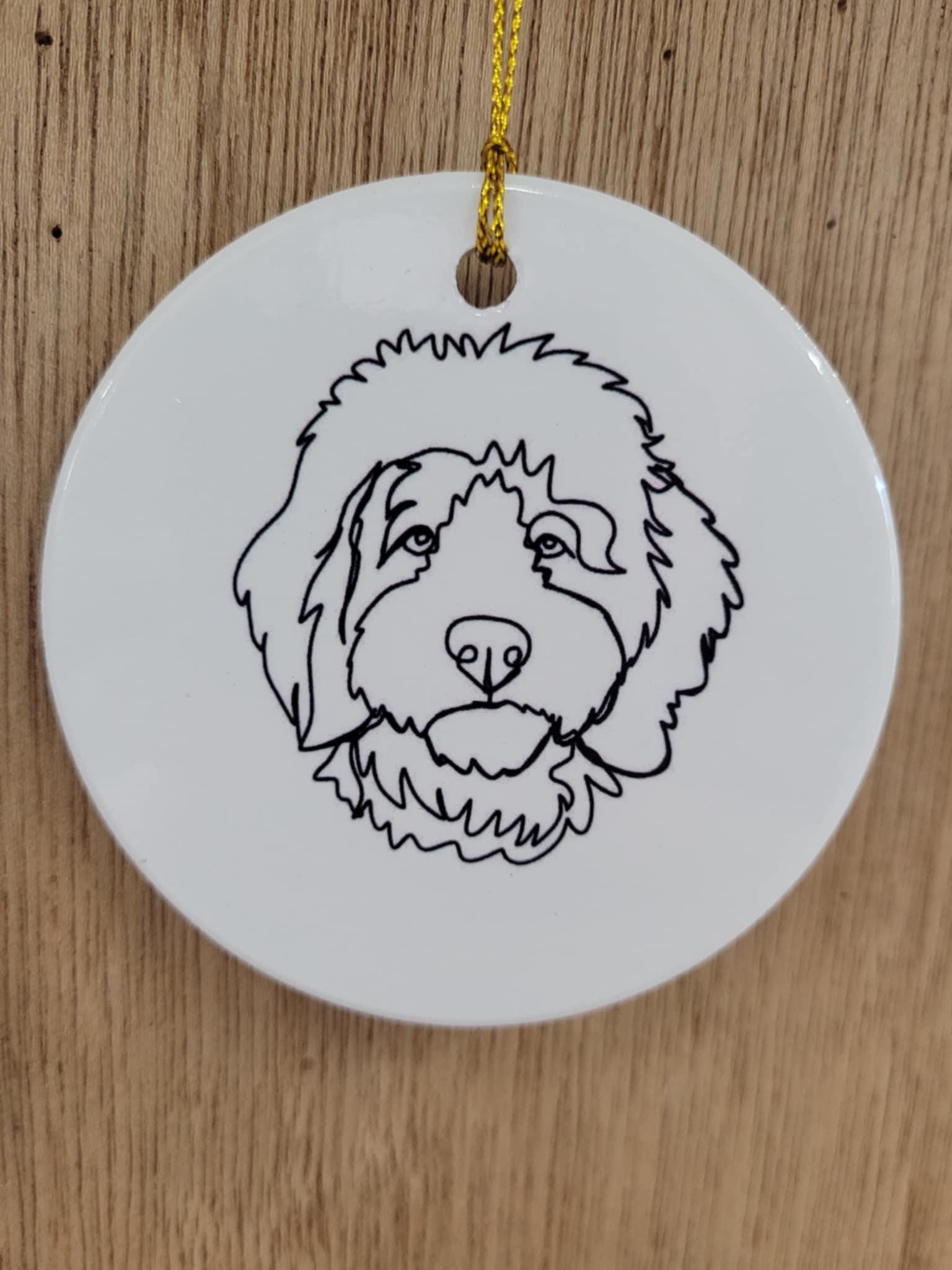 Doddle Poodle Mix Dog Ceramic Ornament Line Drawing Fluffy Christmas Tree Hanging Decorative