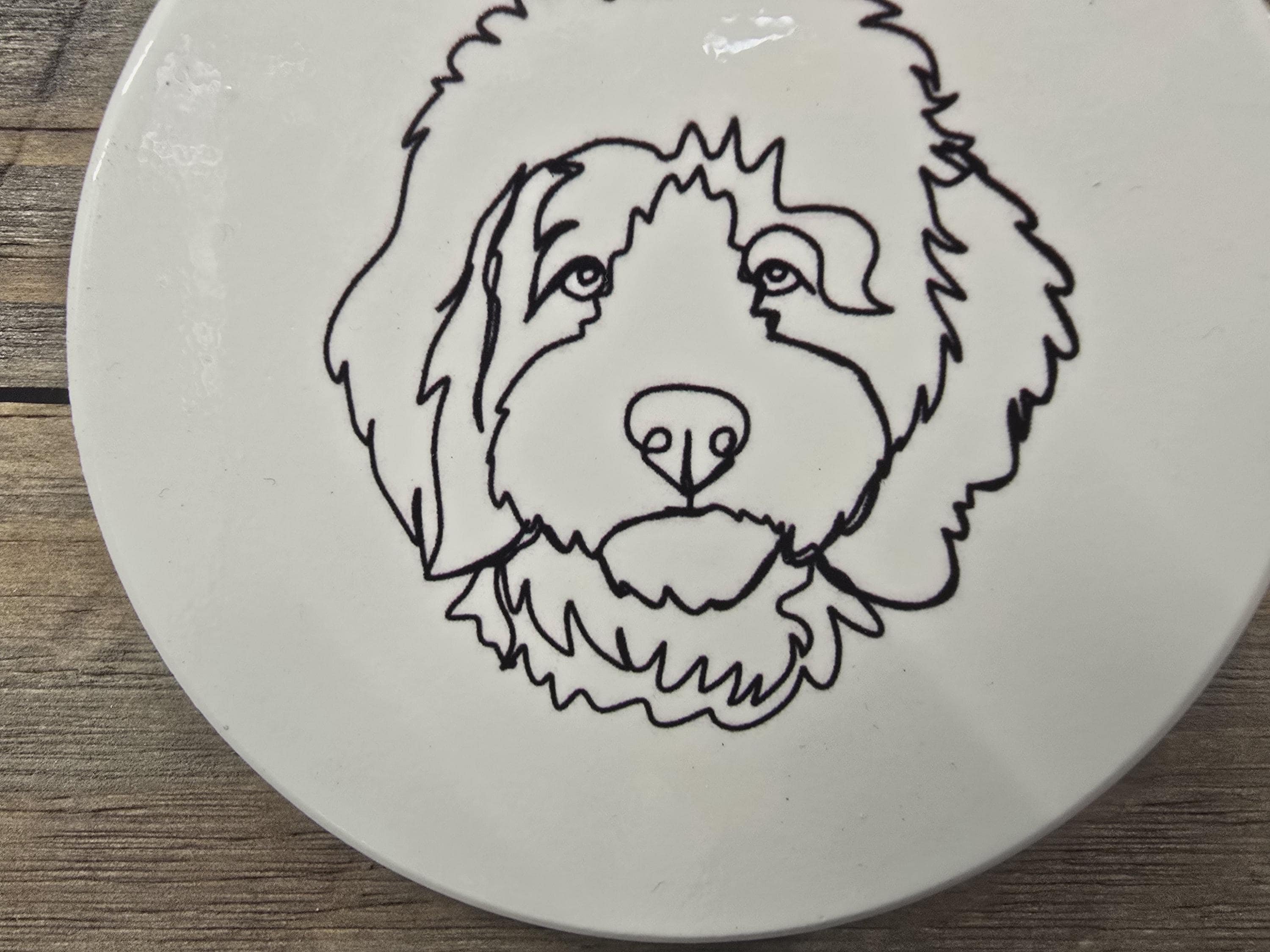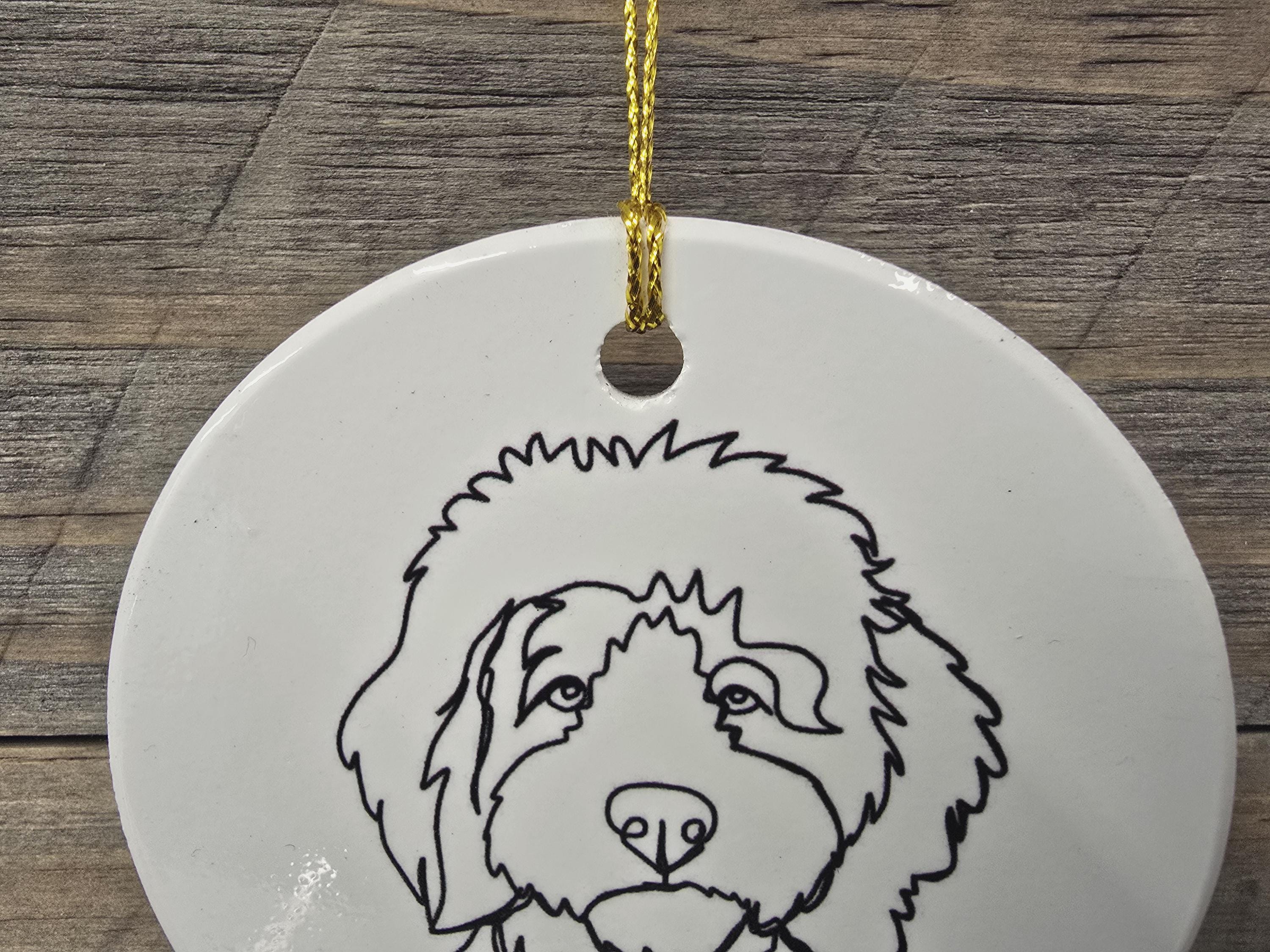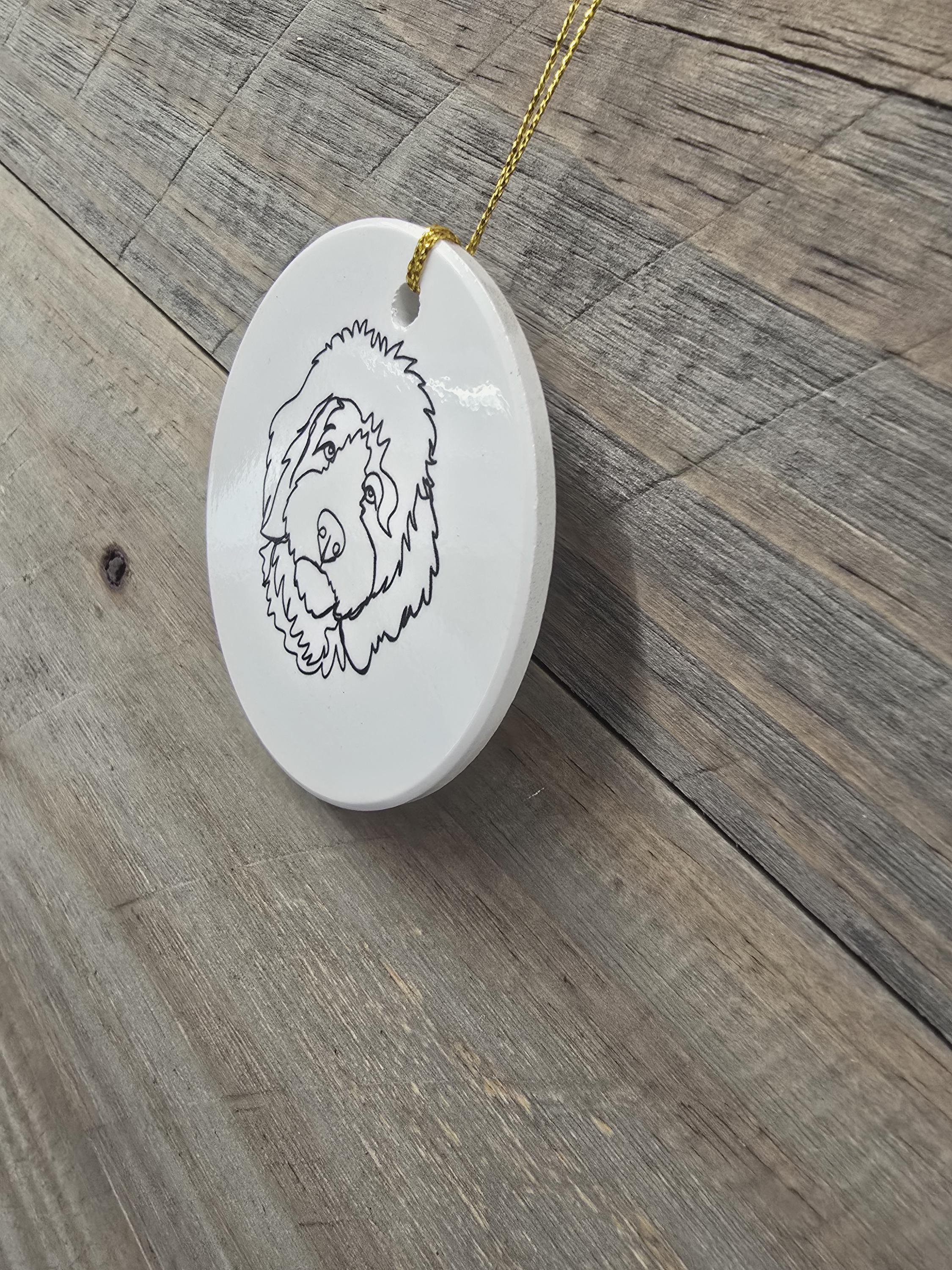 Doddle Poodle Mix Dog Ceramic Ornament Line Drawing Fluffy Christmas Tree Hanging Decorative