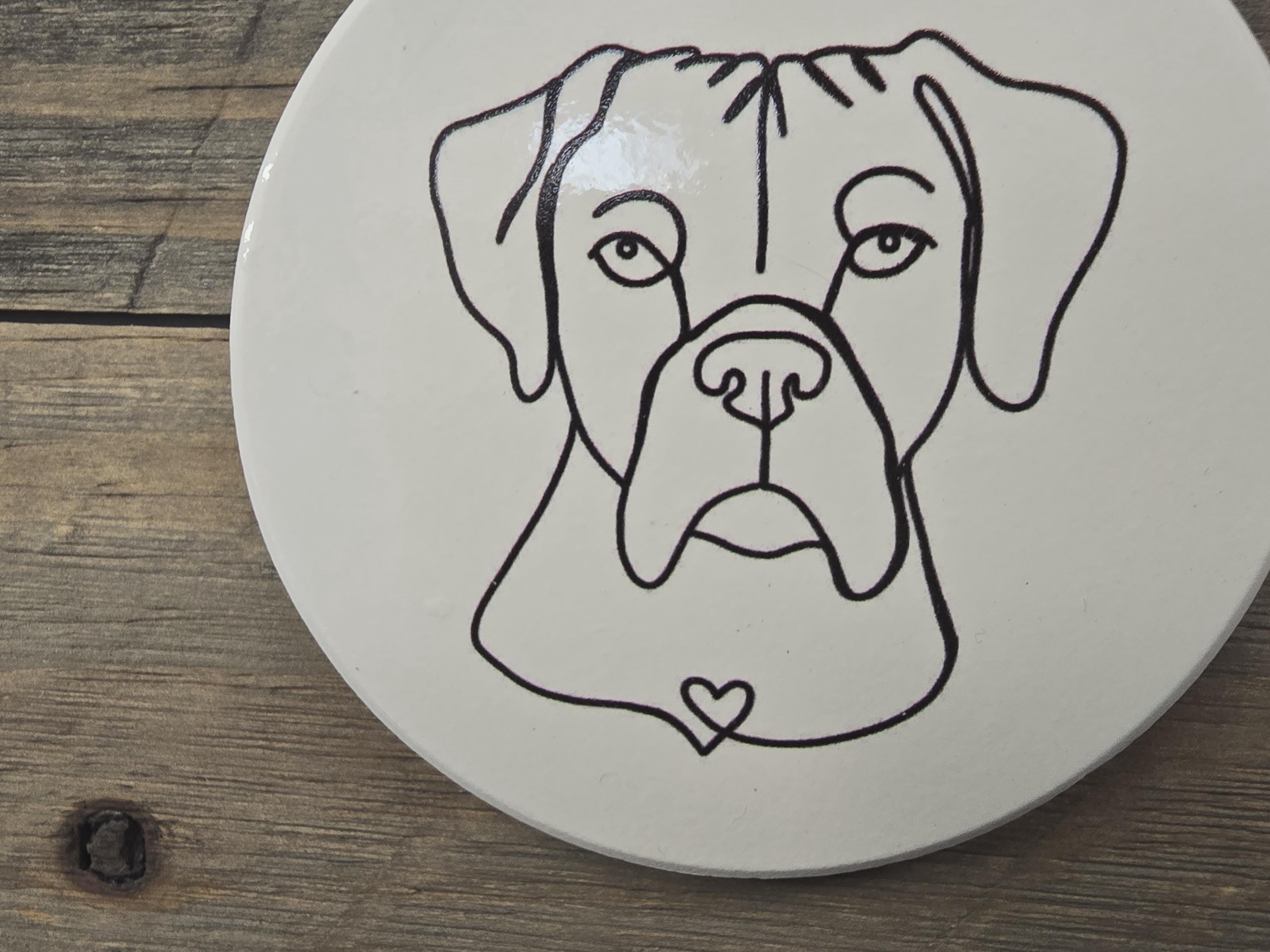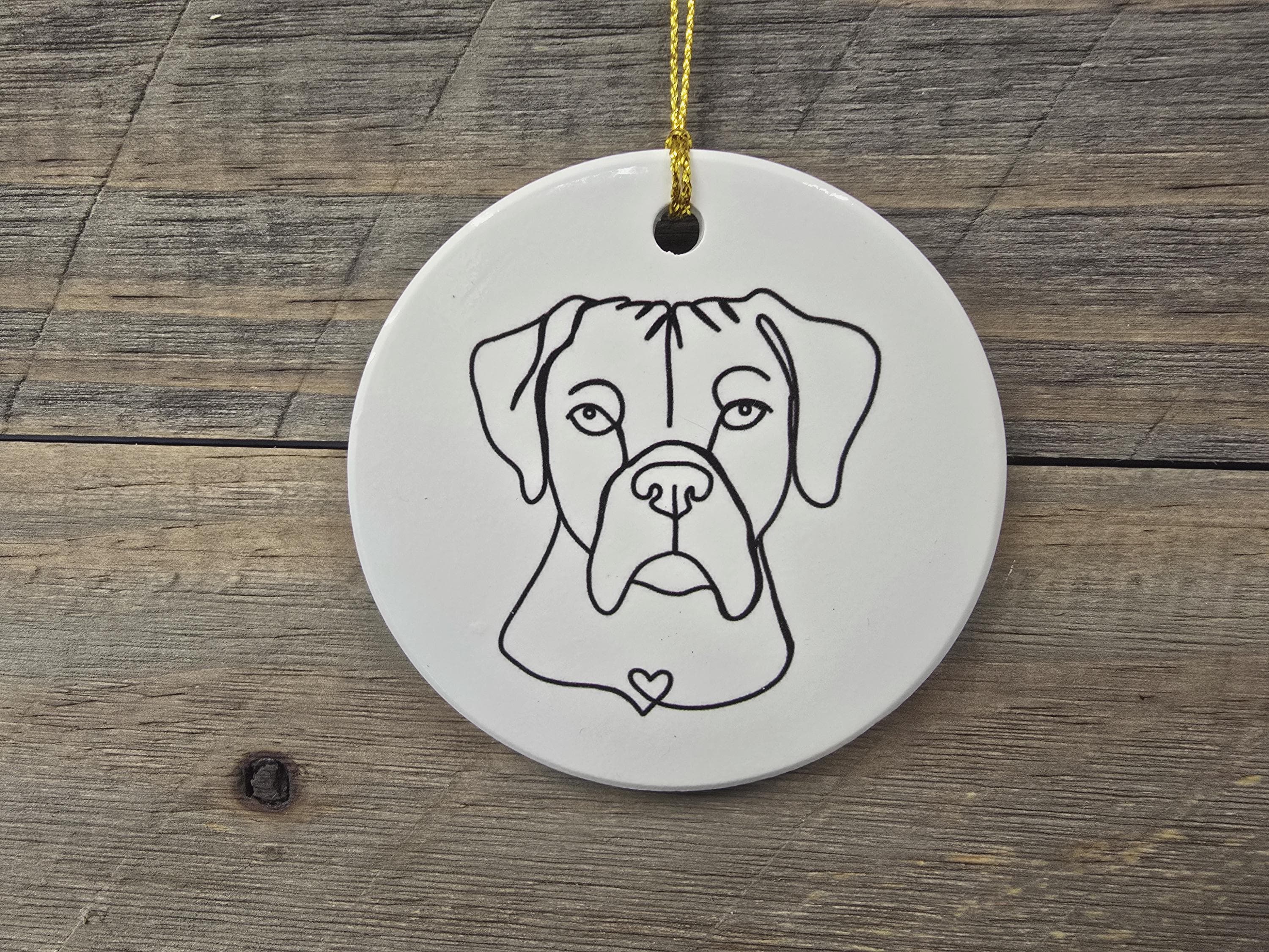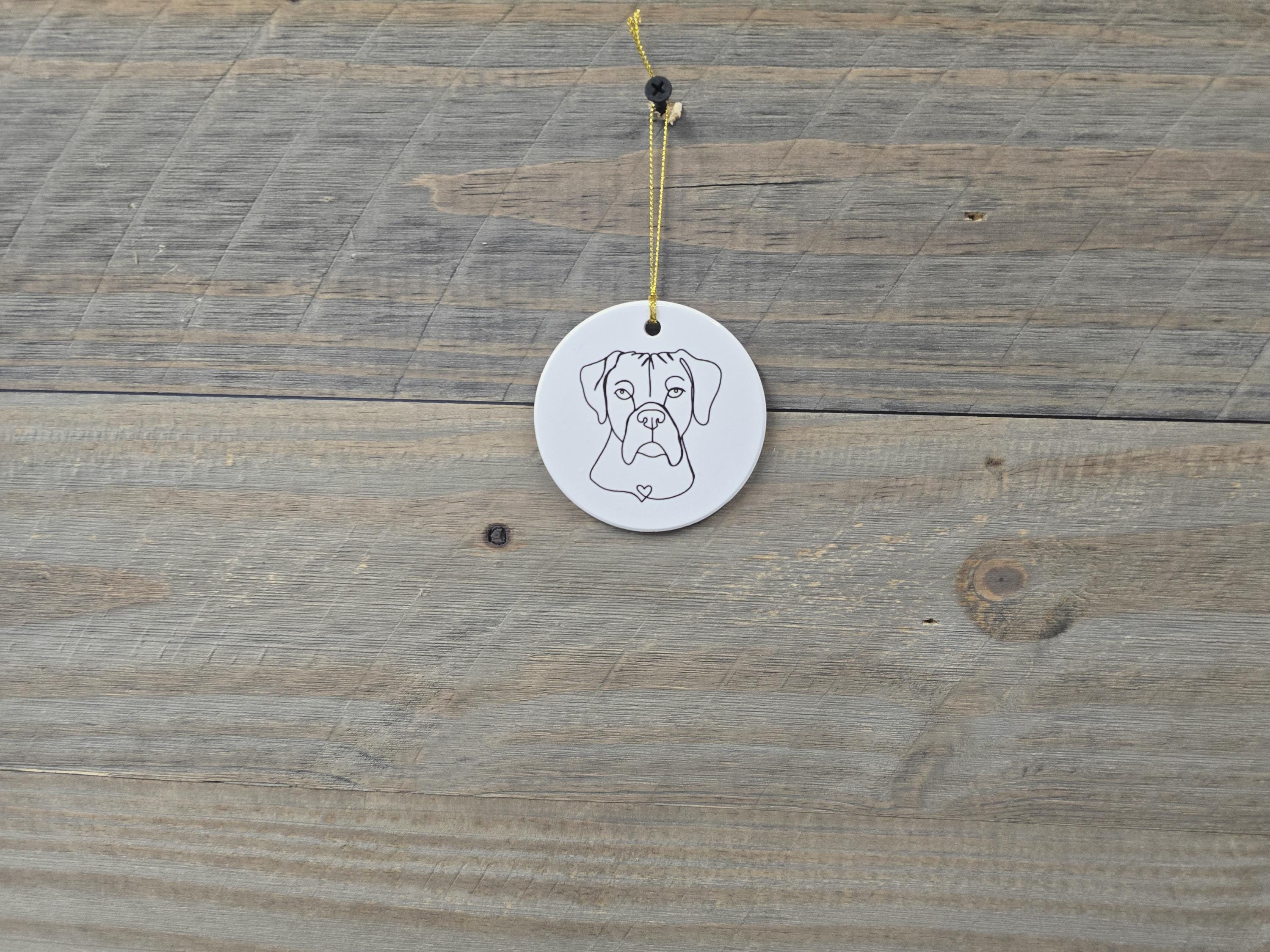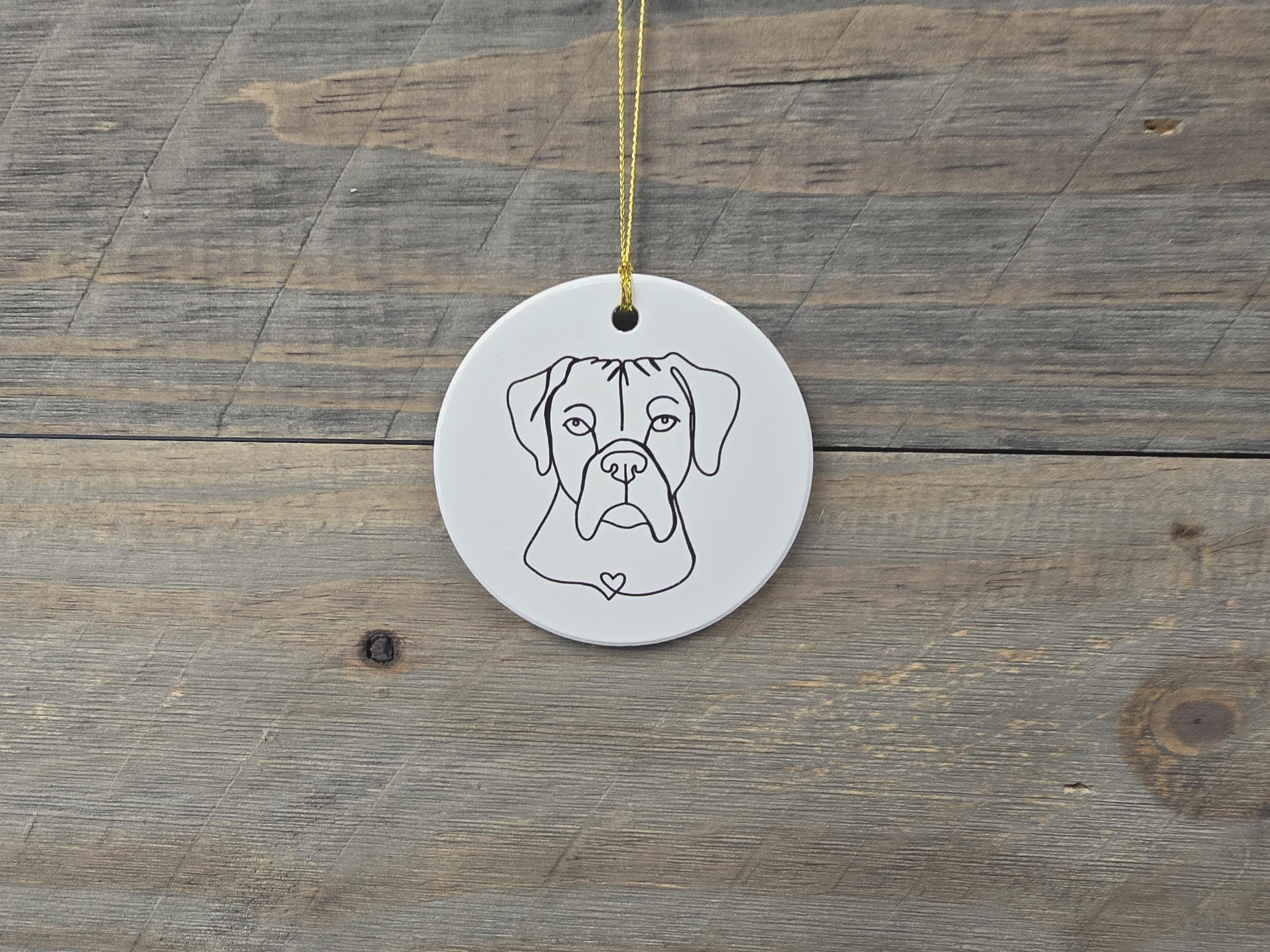 Boxer Heart Giftable American Bulldog Dog Ceramic Ornament Line Drawing Christmas Tree Hanging Decorative