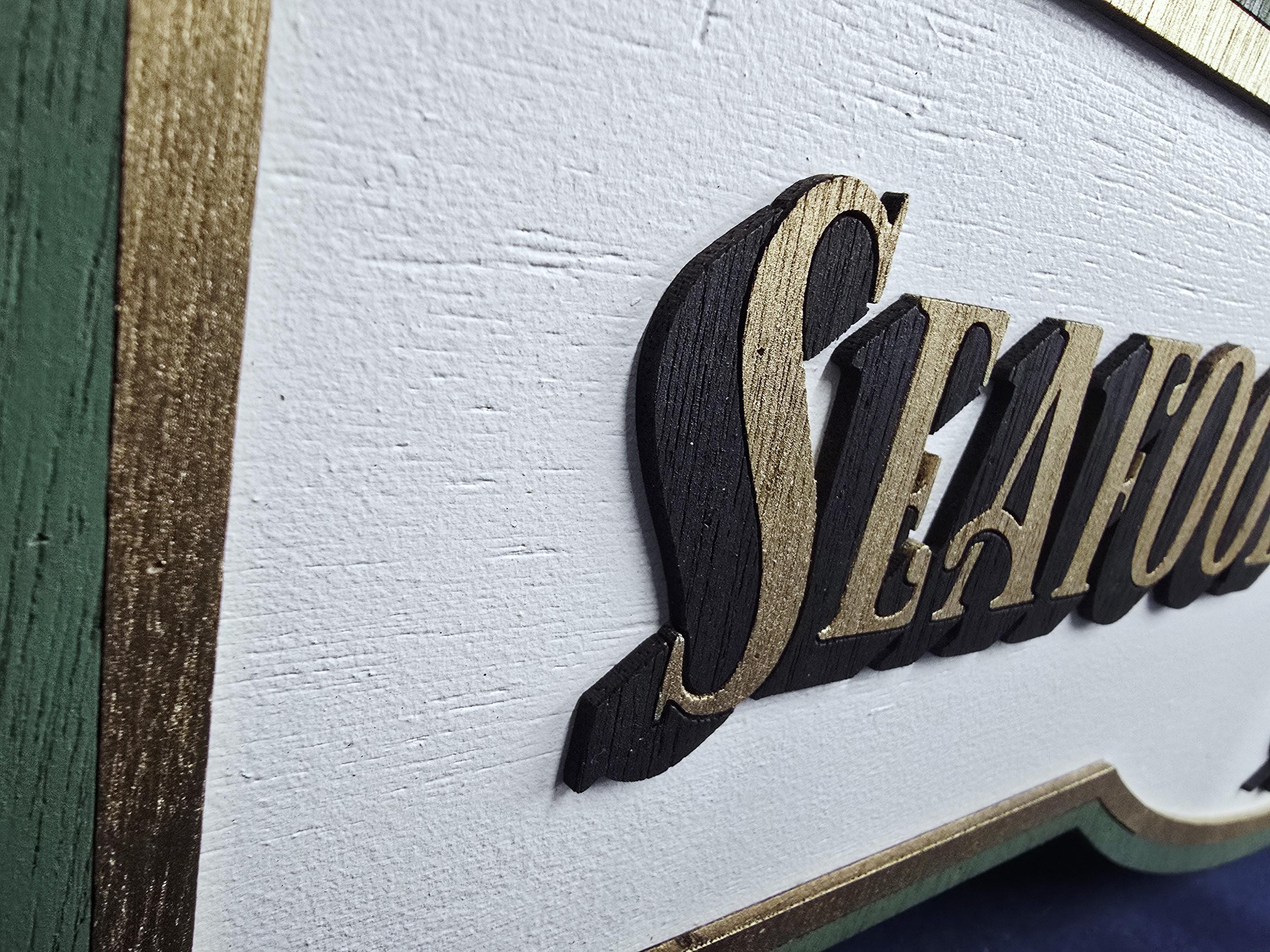 Bring coastal charm to any space with this personalized seafood market sign, inspired by classic fish‑market storefronts. Perfect for beach houses, kitchens, seafood restaurants, man caves, or anyone who loves nautical décor.