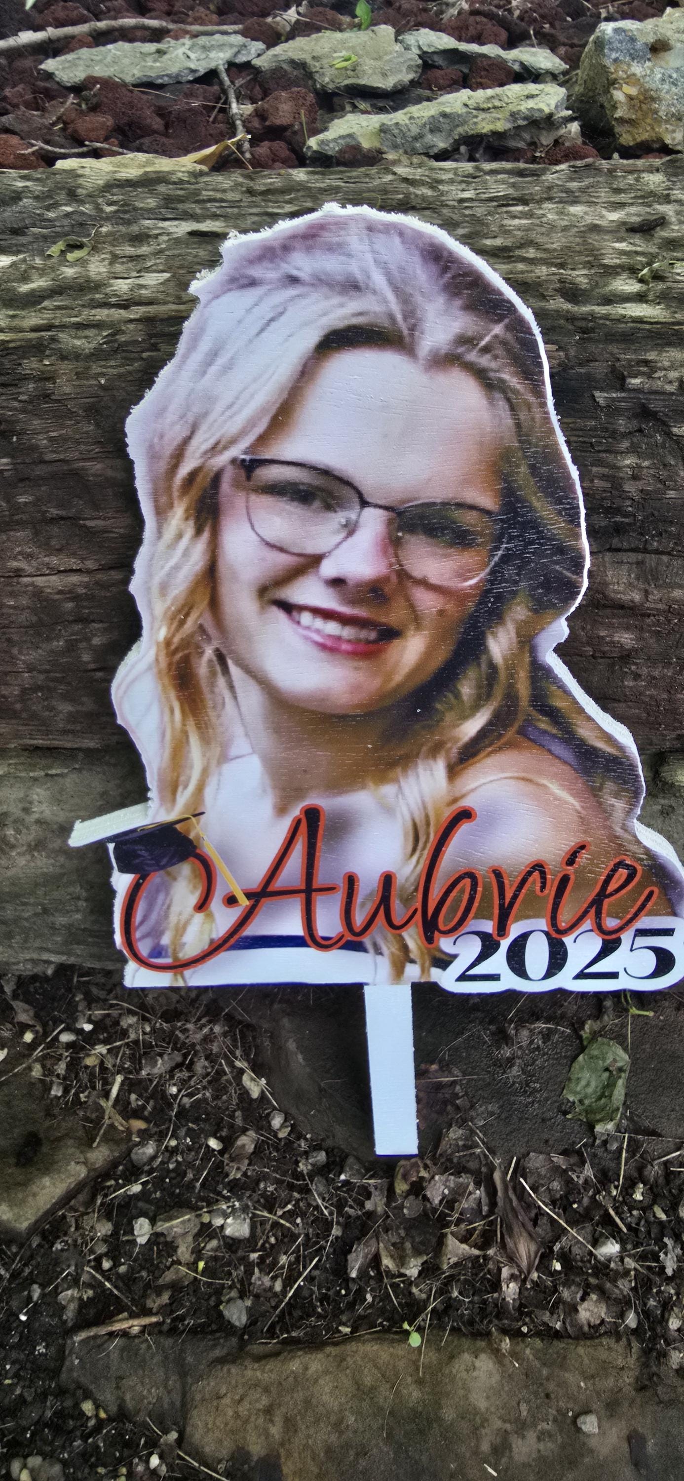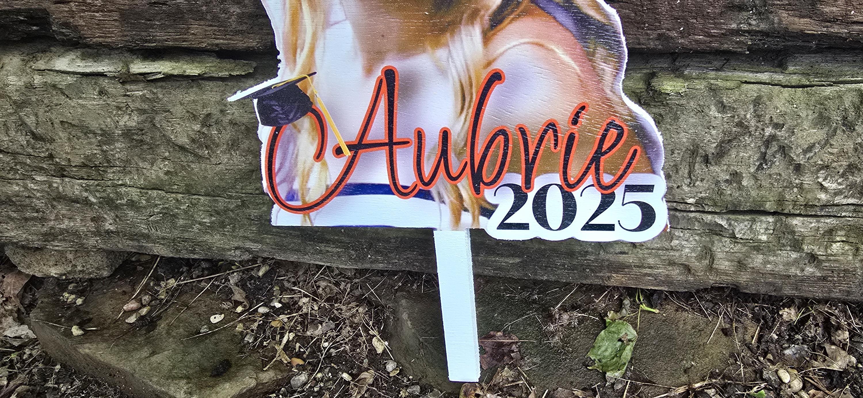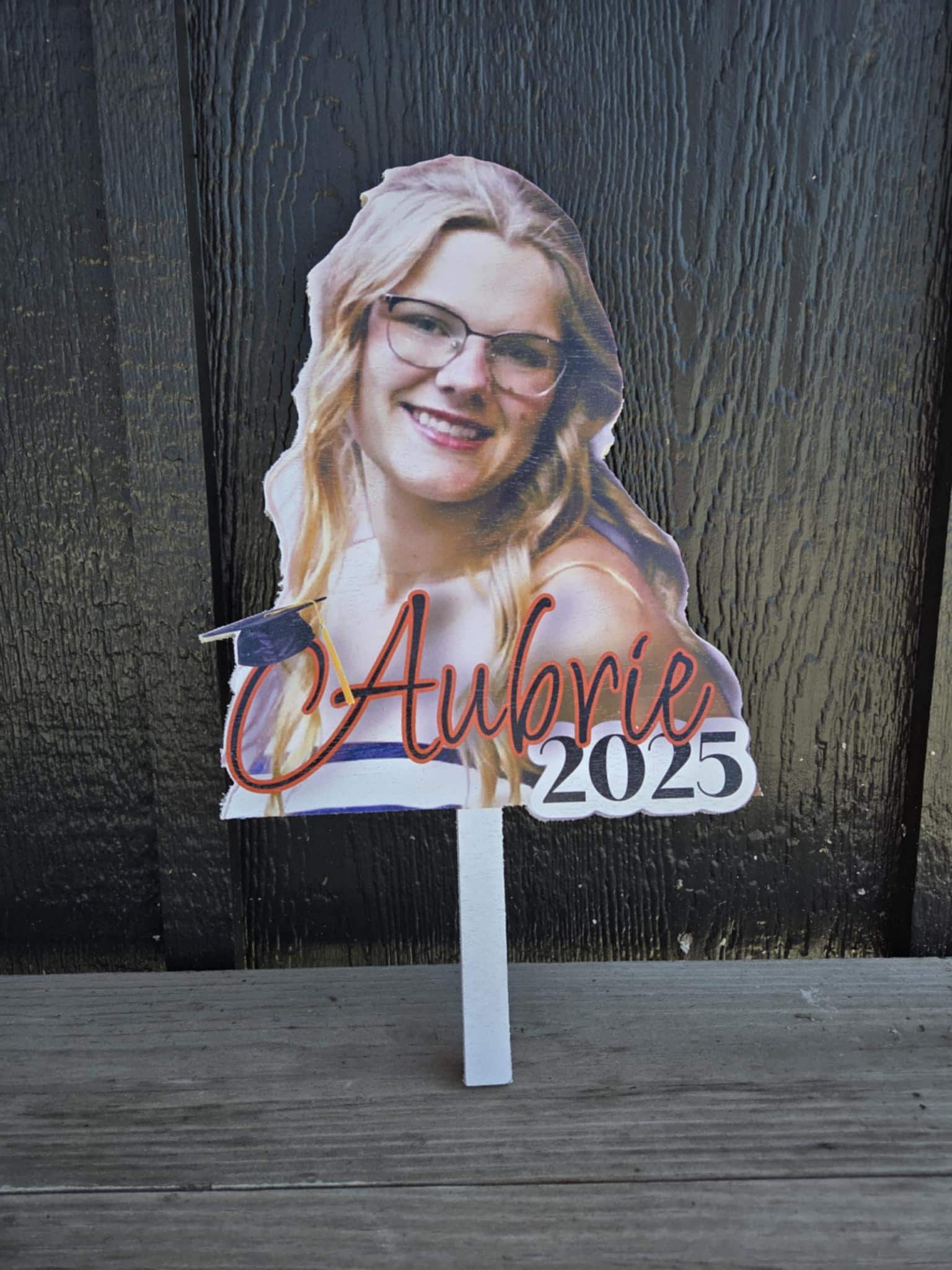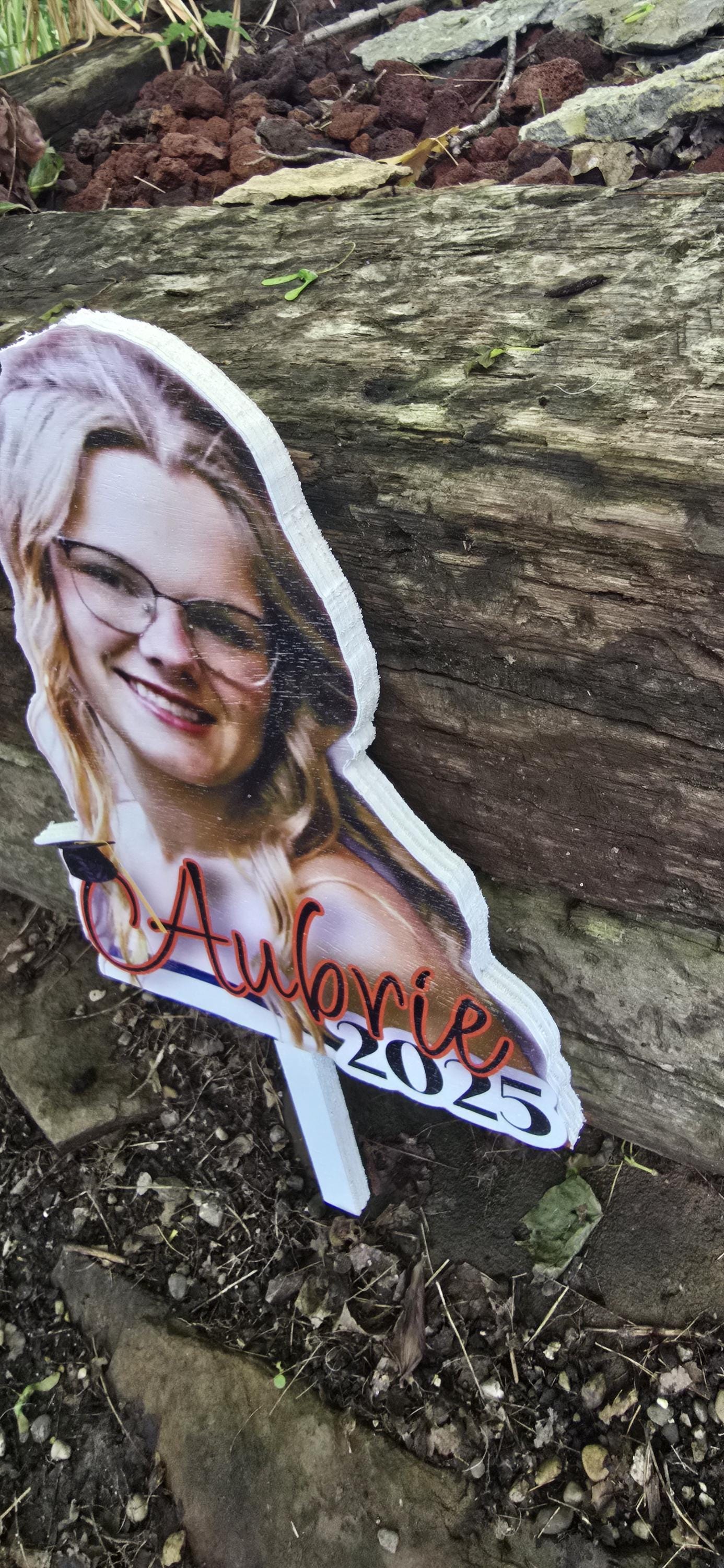 Celebrate your graduate with a custom wood‑printed photo cutout sign that’s full of personality and perfect for display. Each sign is crafted from durable wood and printed with a high‑quality image, shaped around the subject for a bold, modern look. The name and graduation year are added in vibrant lettering, creating a standout keepsake they’ll treasure long after the tassel turns.