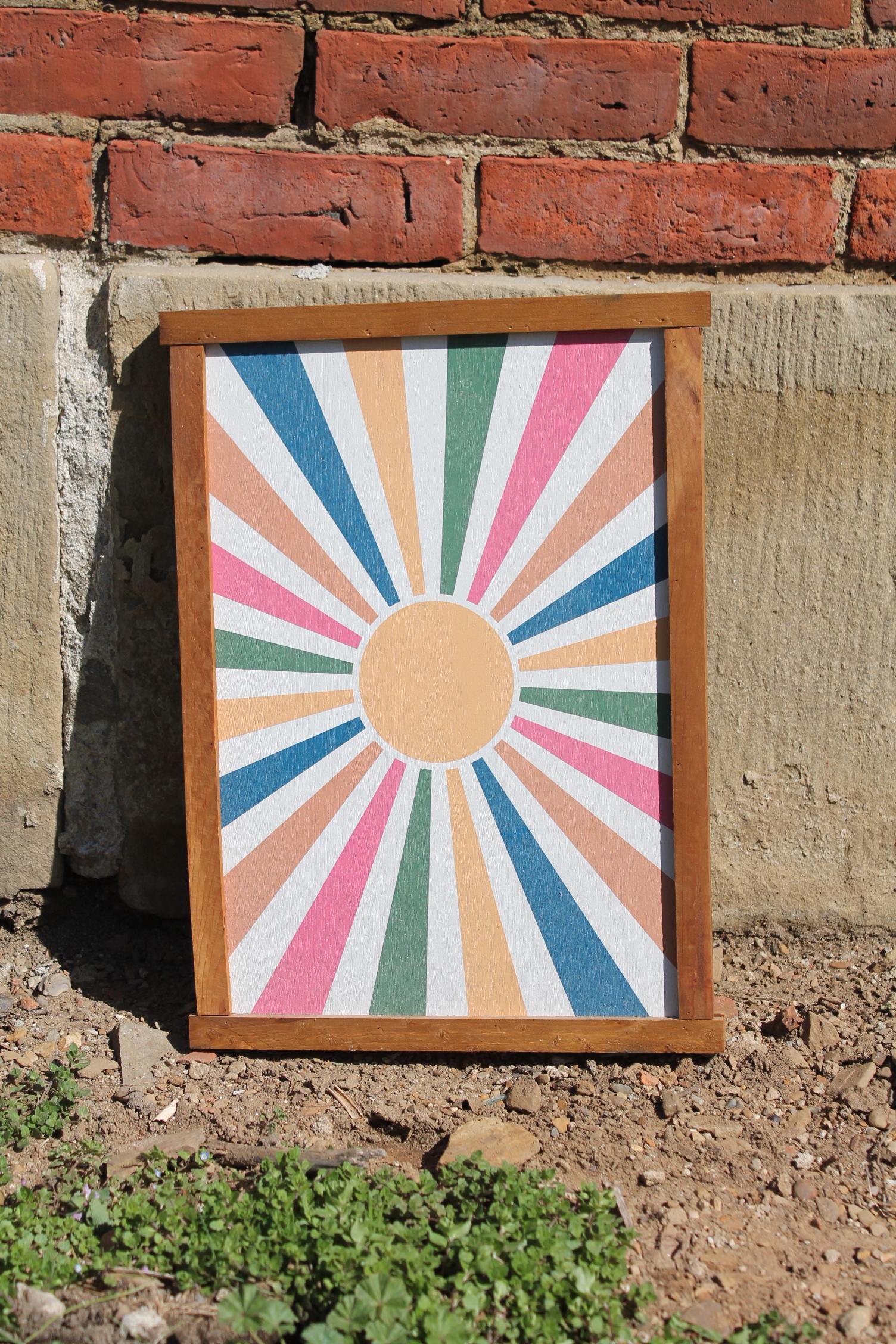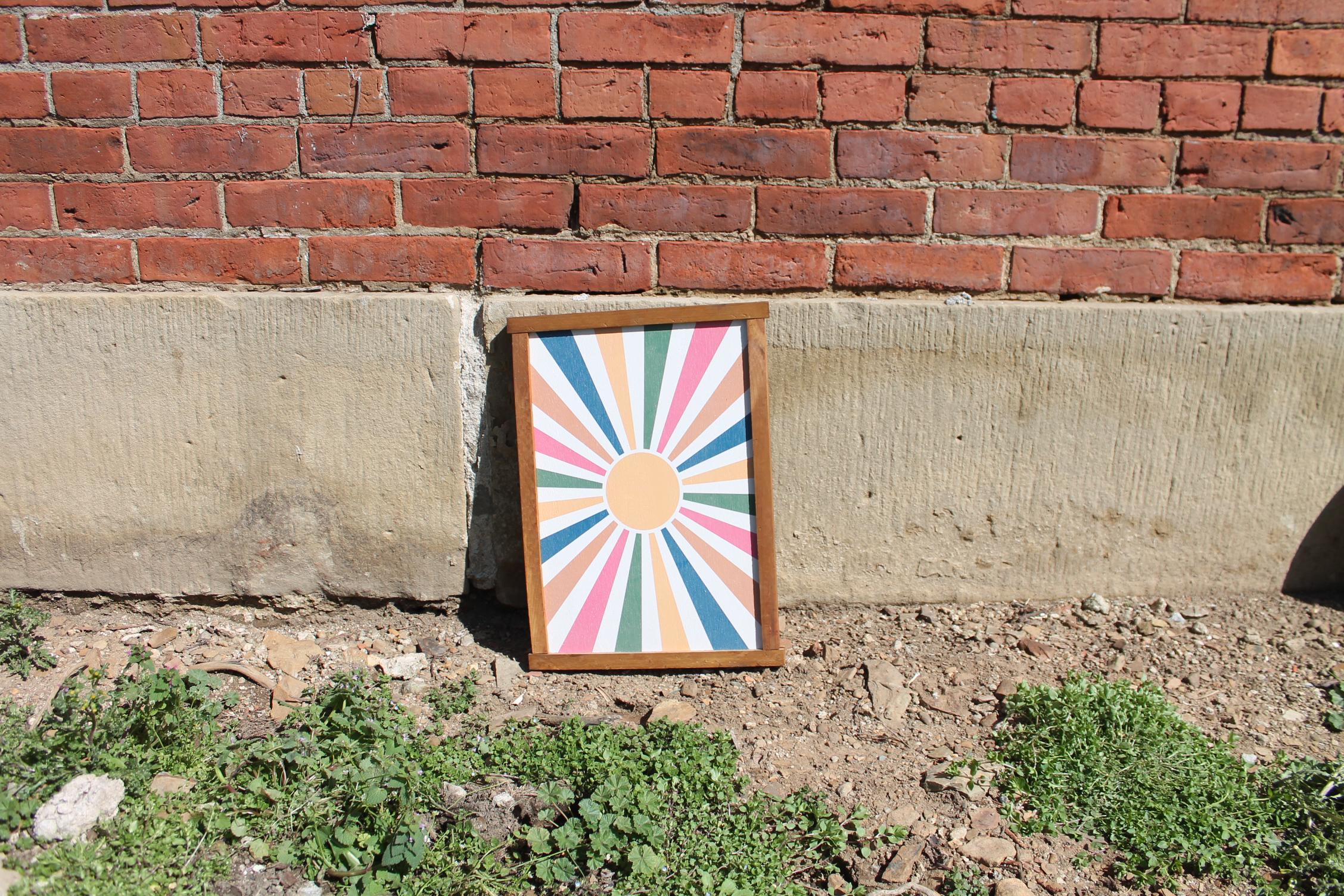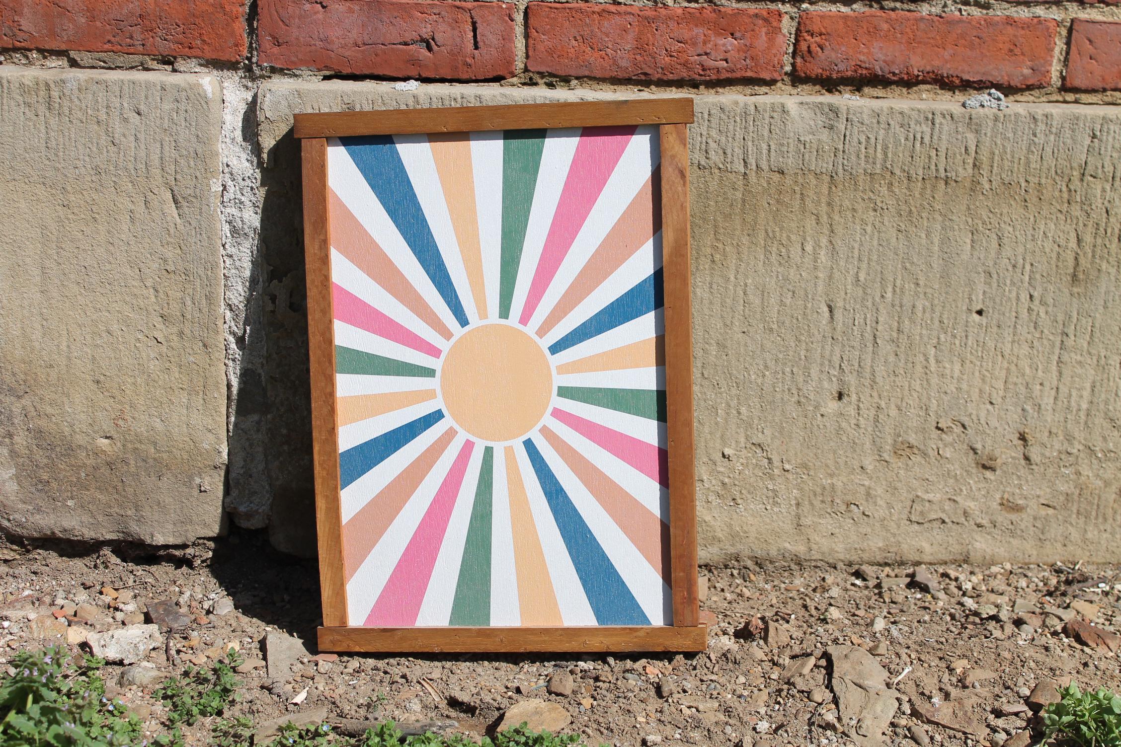 Colorful Sunburst Wall Art • Modern Boho Framed Print • Retro Geometric Decor • Vibrant Sun Ray Artwork for Living Room or Entryway