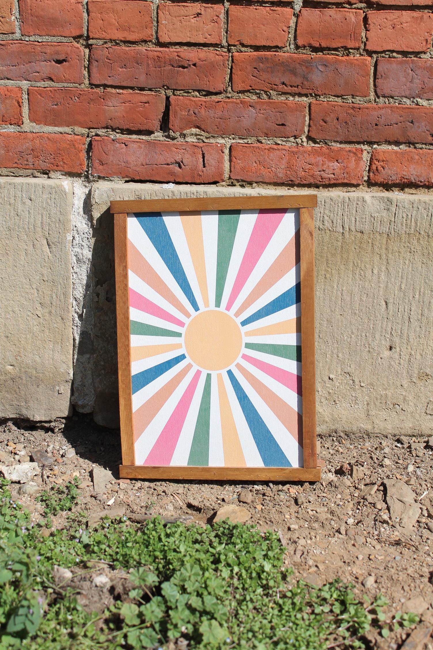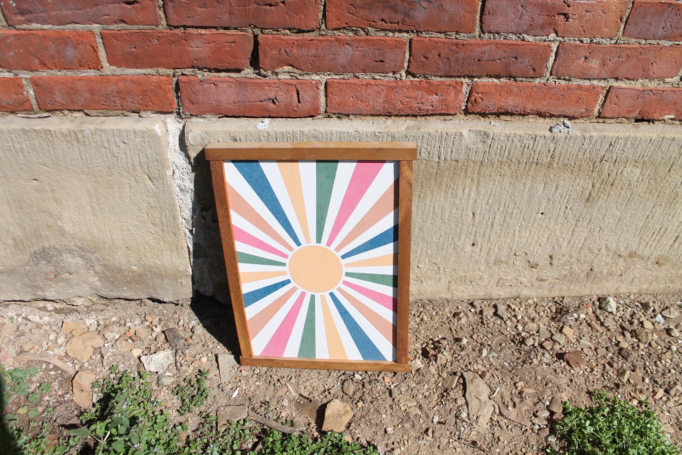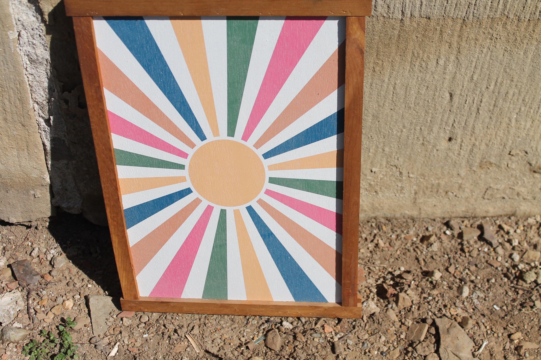 Colorful Sunburst Wall Art • Modern Boho Framed Print • Retro Geometric Decor • Vibrant Sun Ray Artwork for Living Room or Entryway