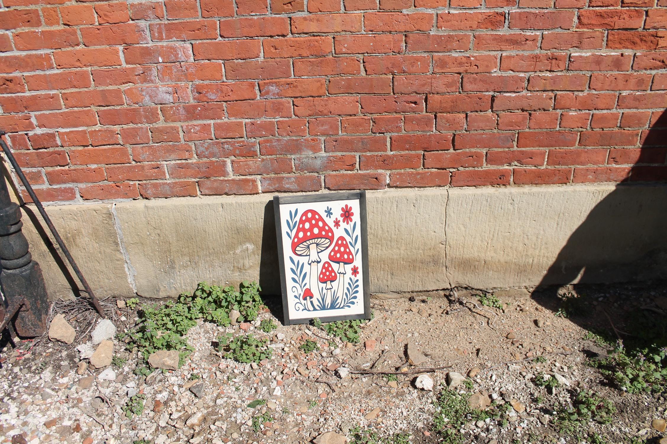 The graphic has been printed onto the wooden backer and is framed made of wood. Please see the photos.