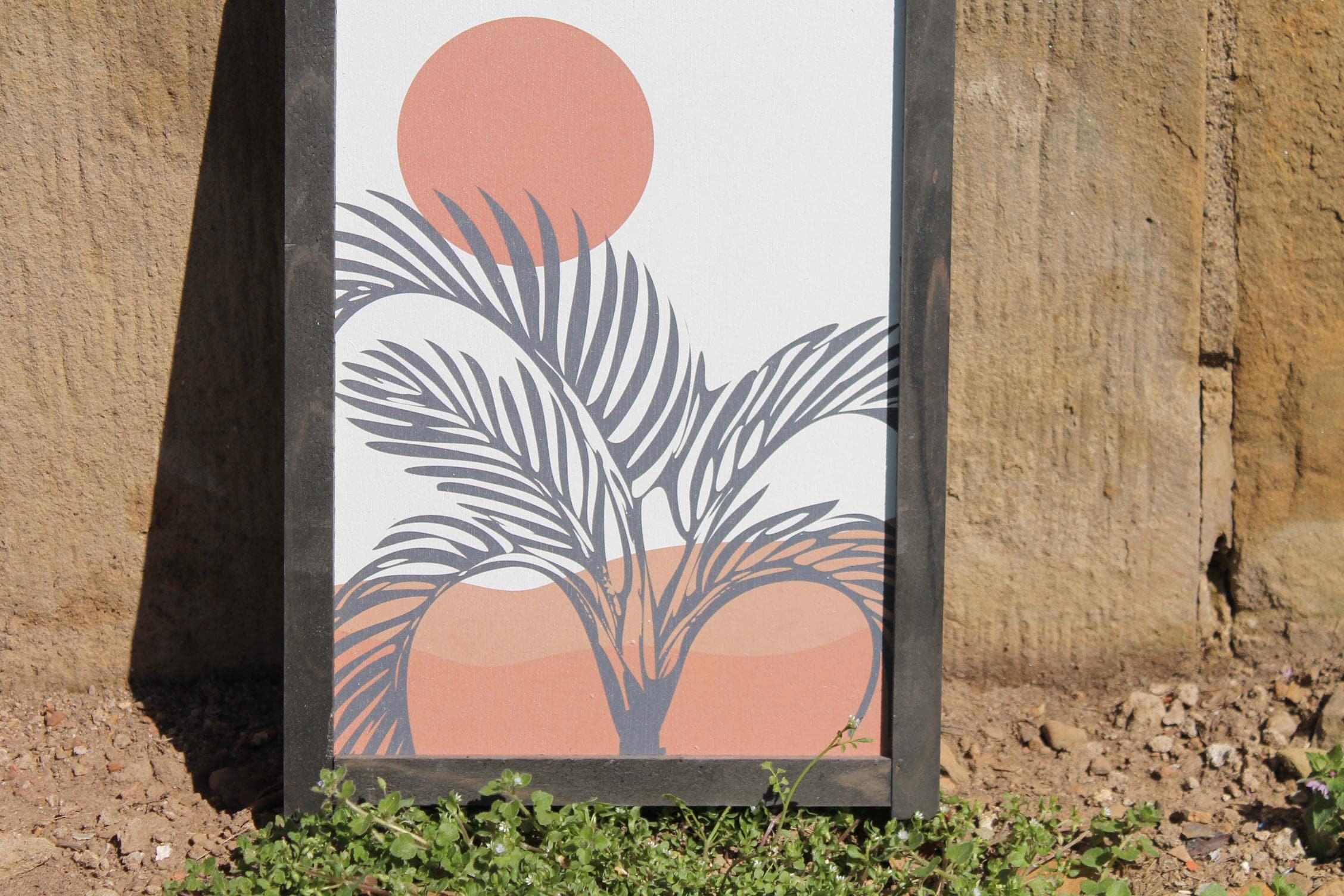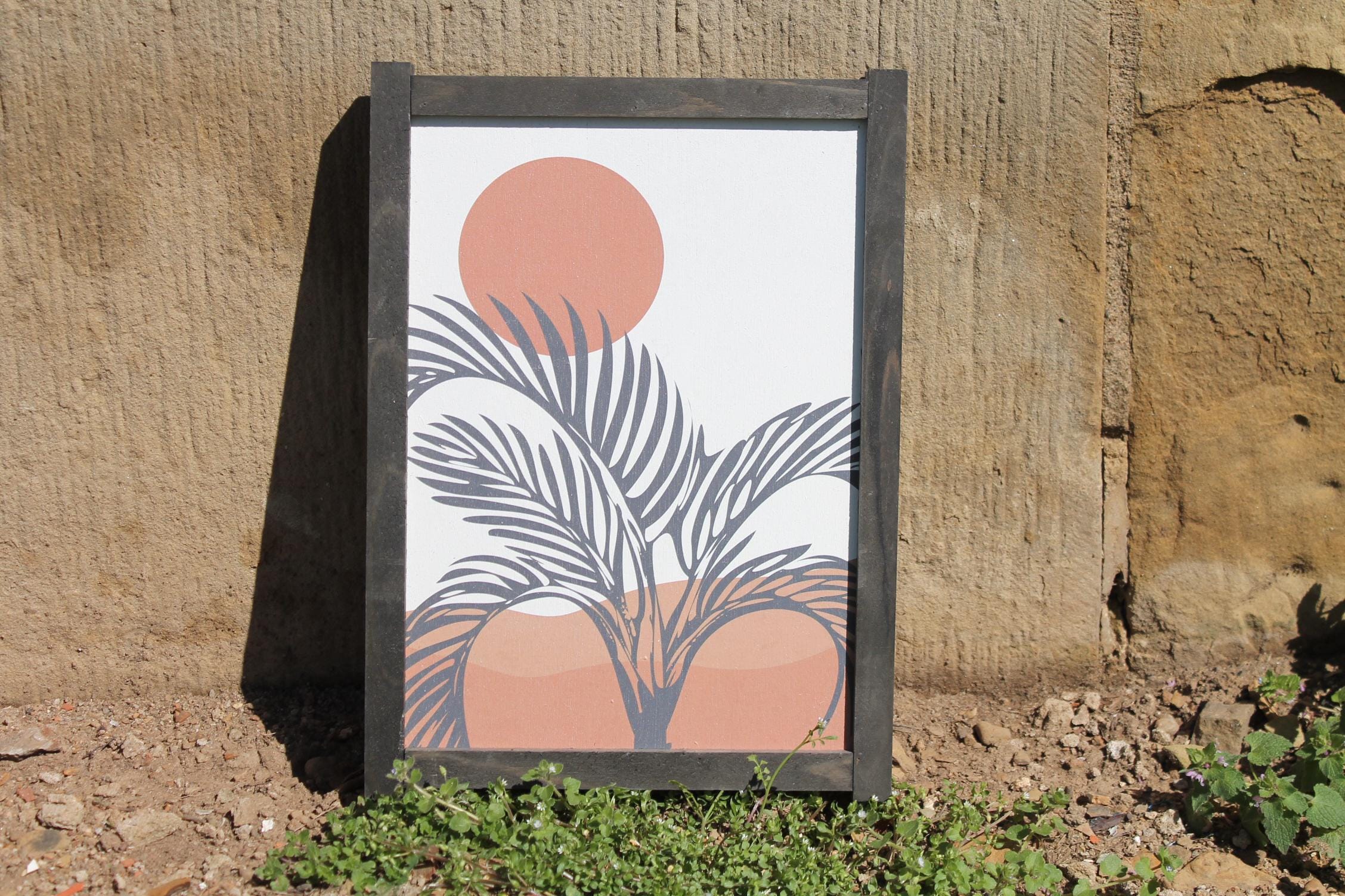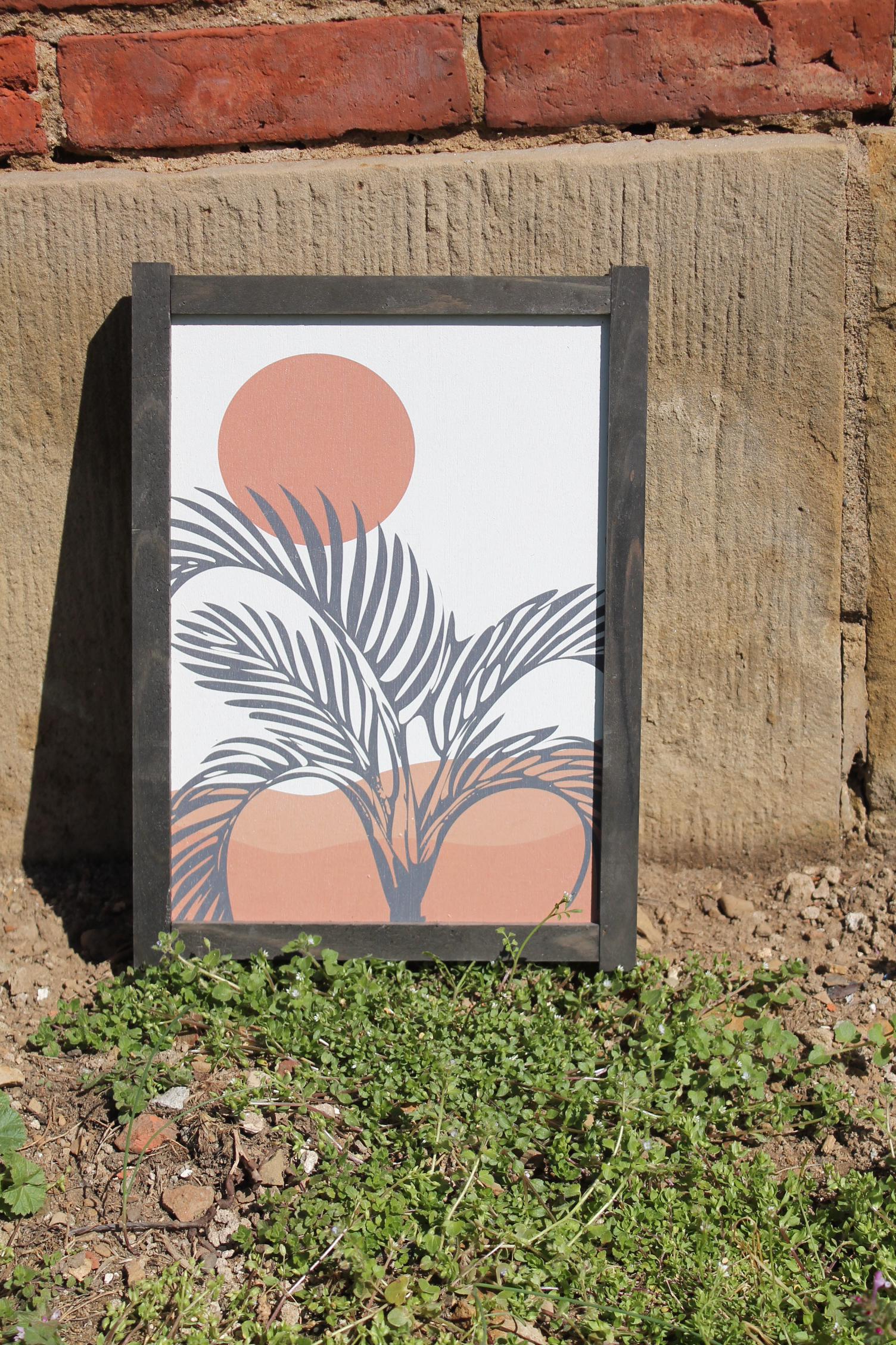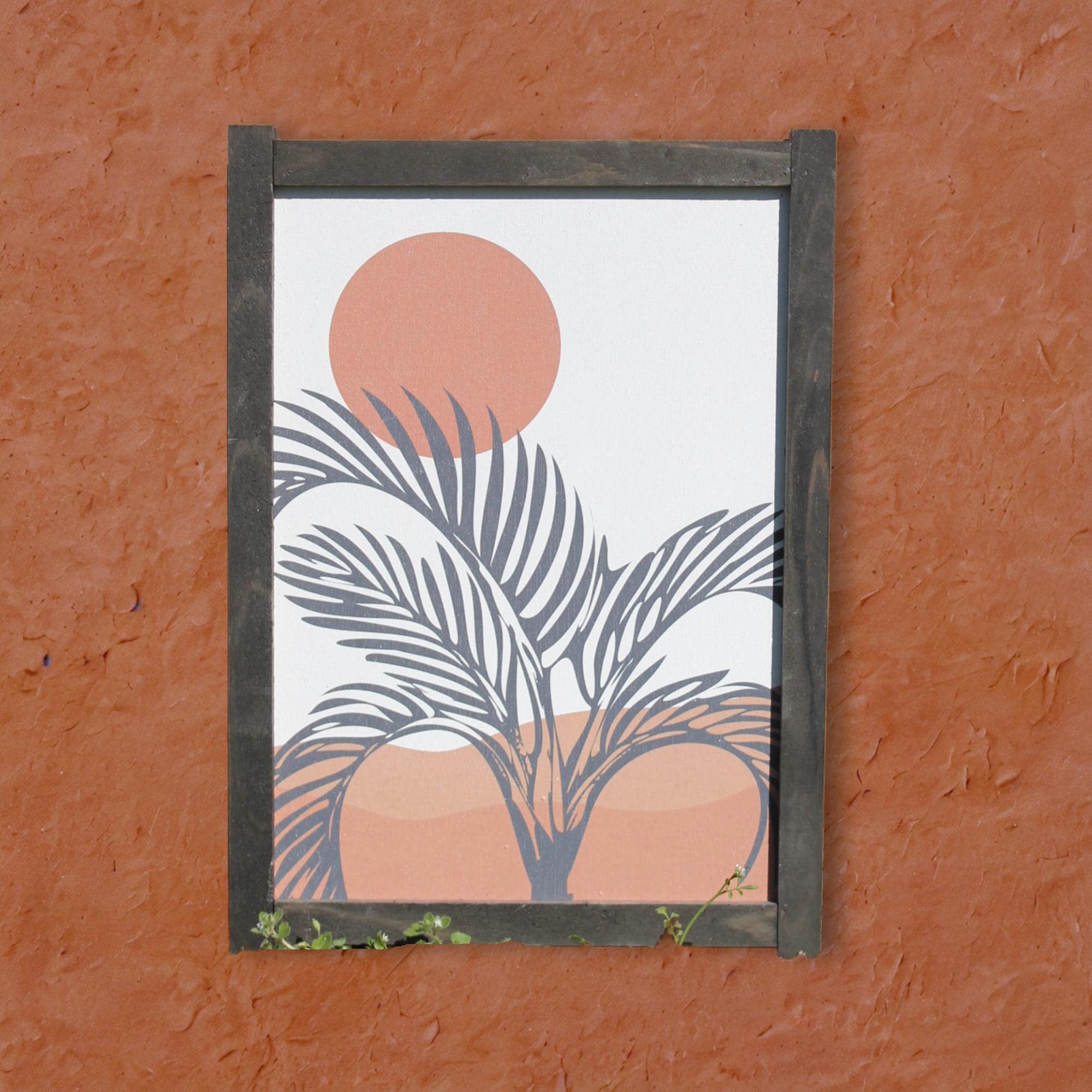 Minimalist Palm Leaf Wall Art – Modern Sun & Desert Shapes Print – Boho Tropical Decor for Living Room, Bedroom, or Warm Earthy Spaces
