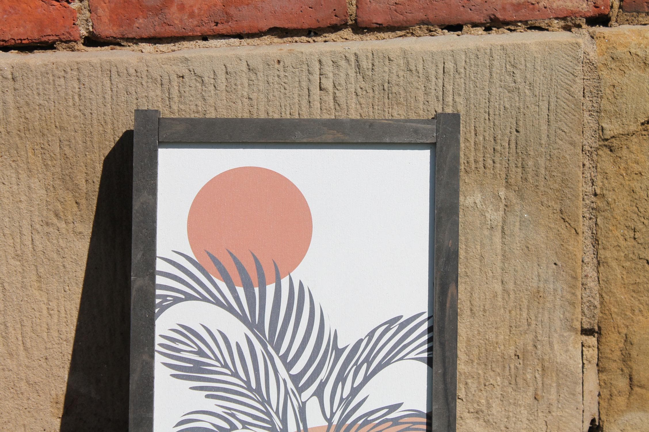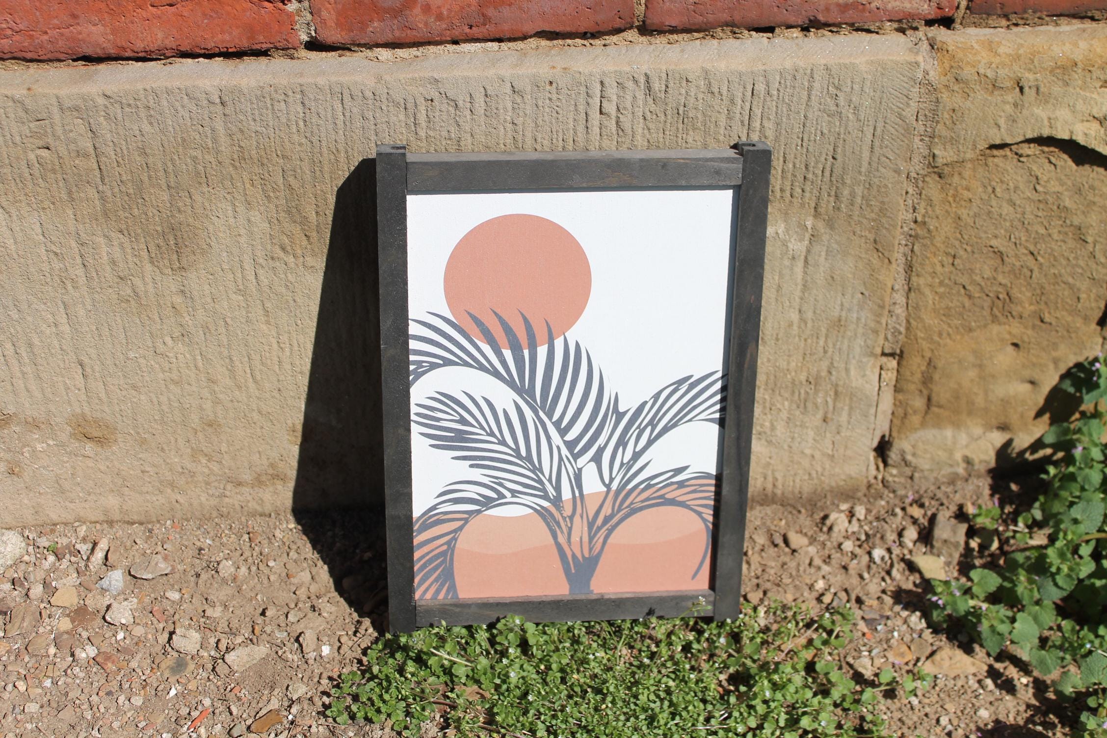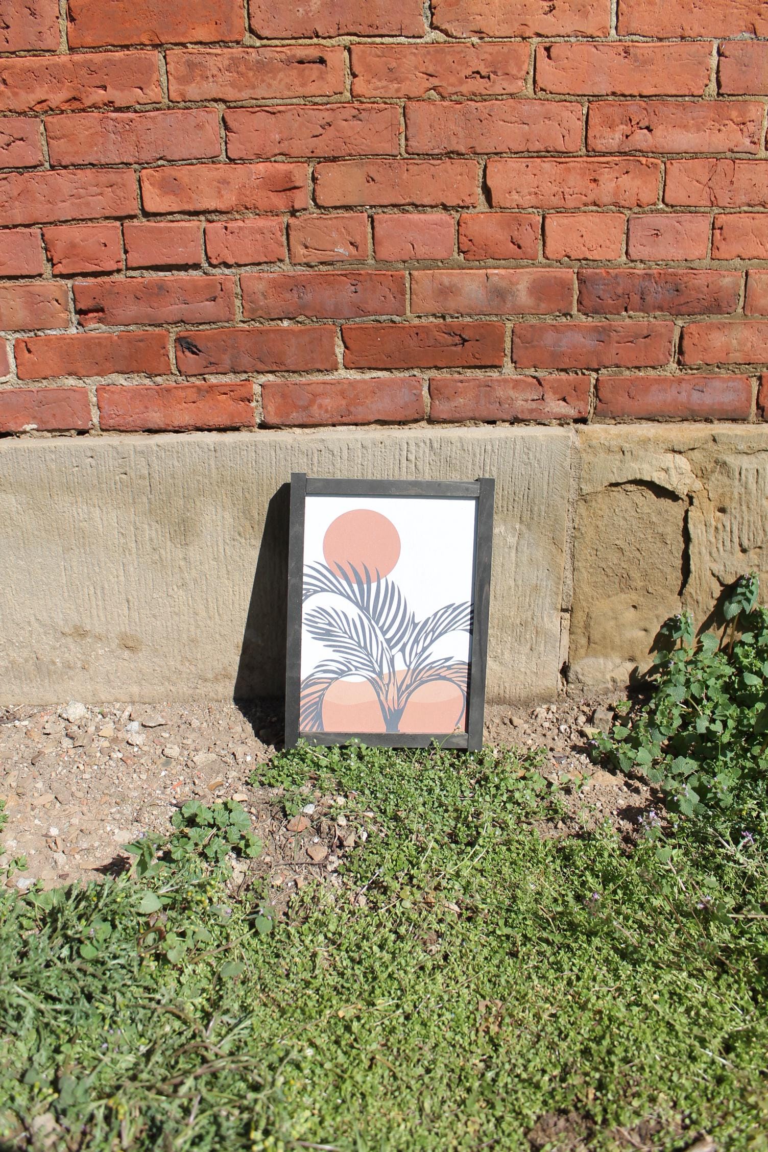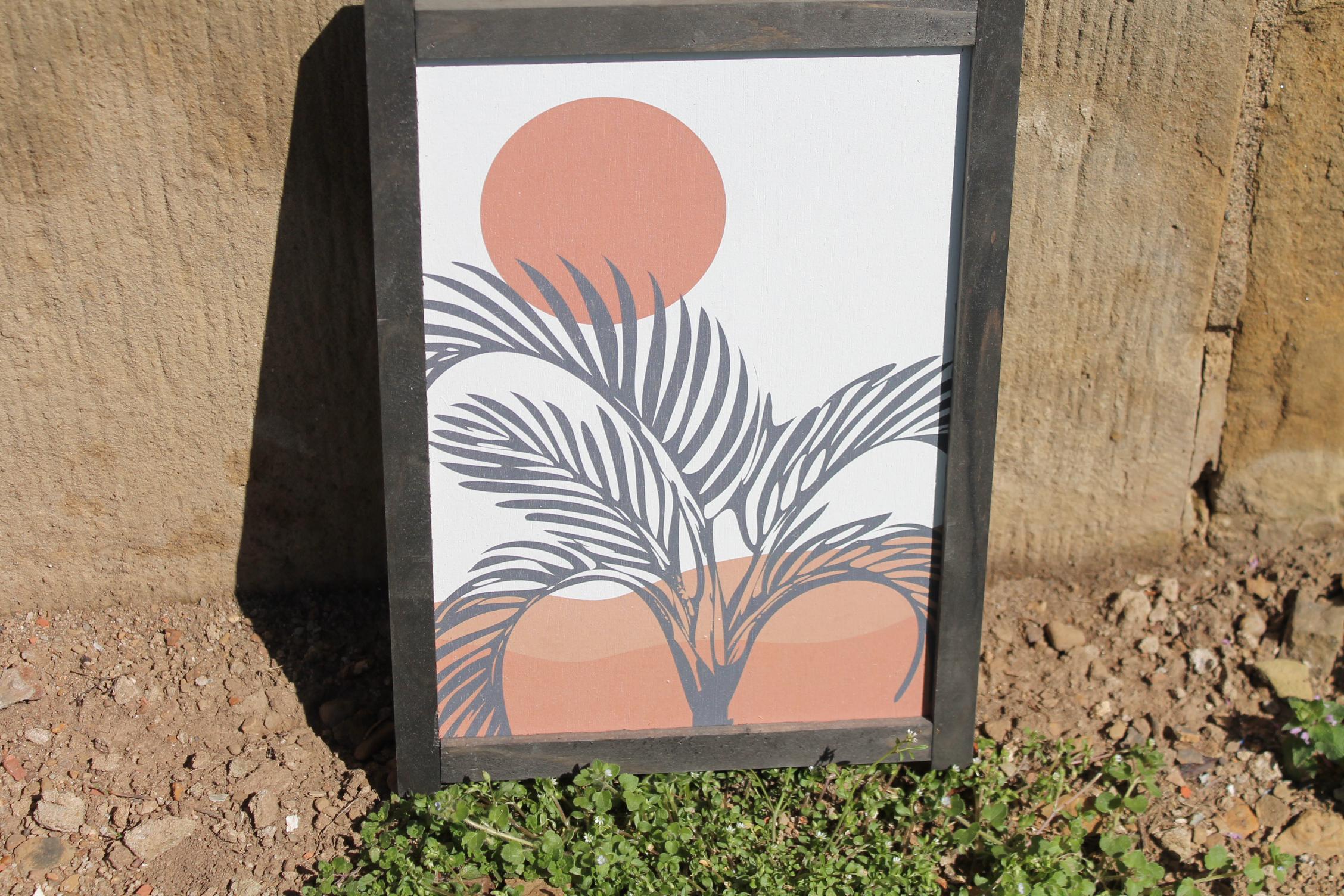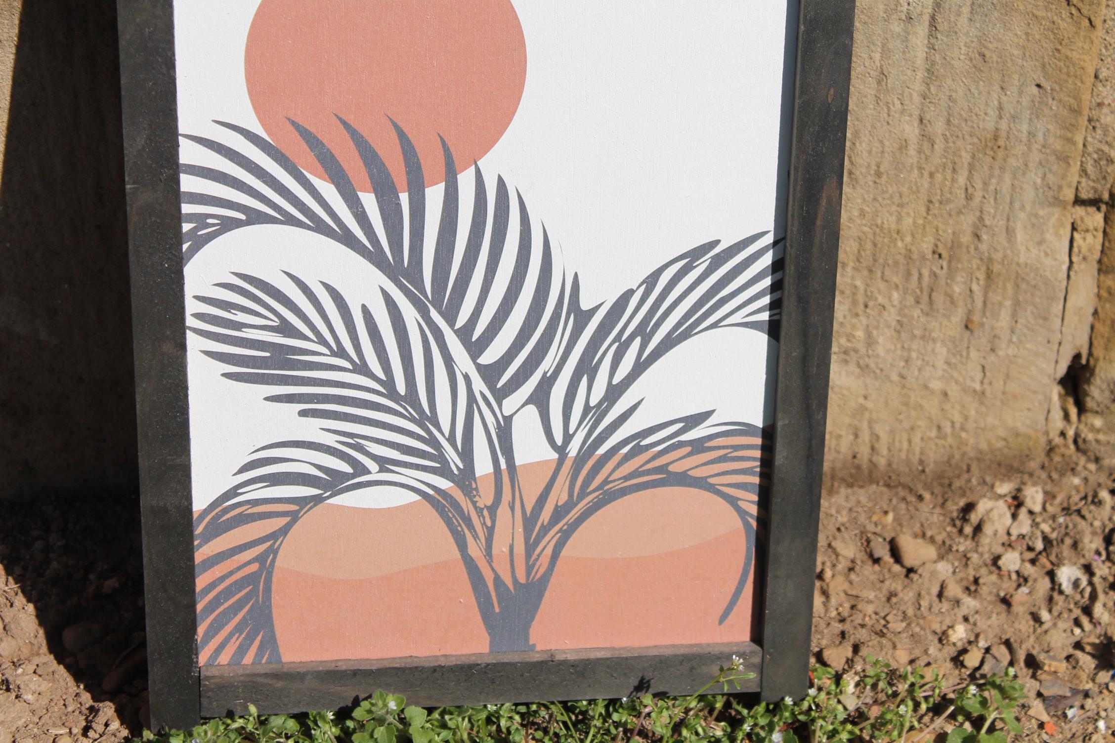 Minimalist Palm Leaf Wall Art – Modern Sun & Desert Shapes Print – Boho Tropical Decor for Living Room, Bedroom, or Warm Earthy Spaces