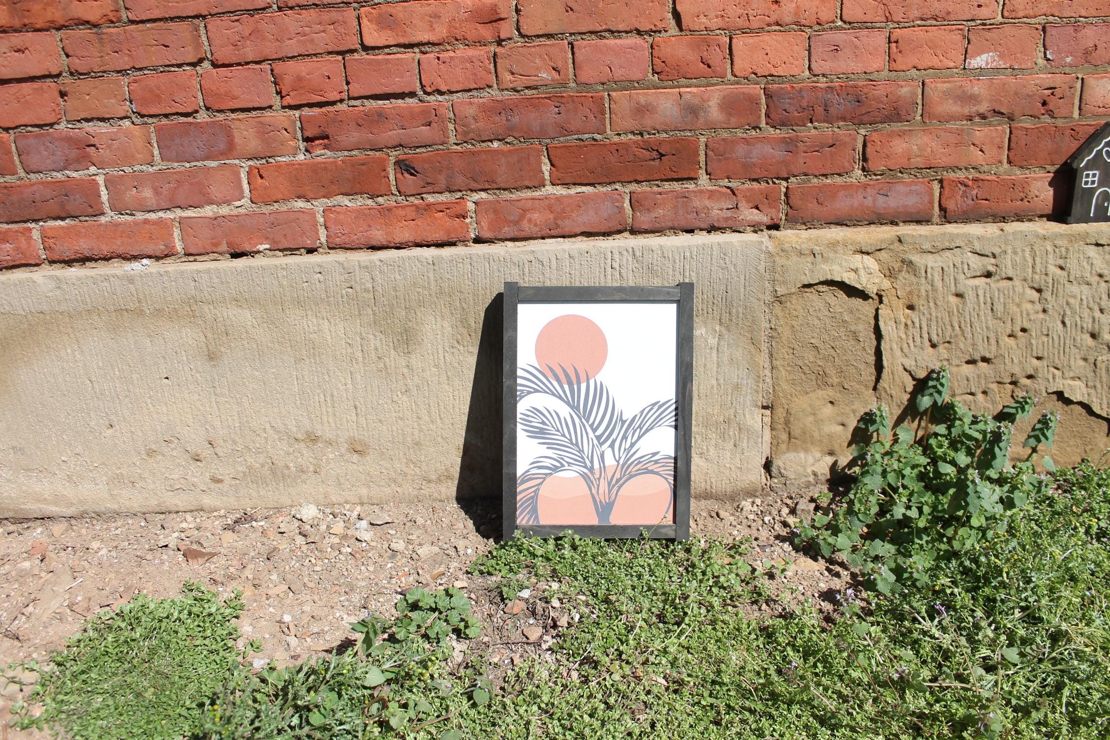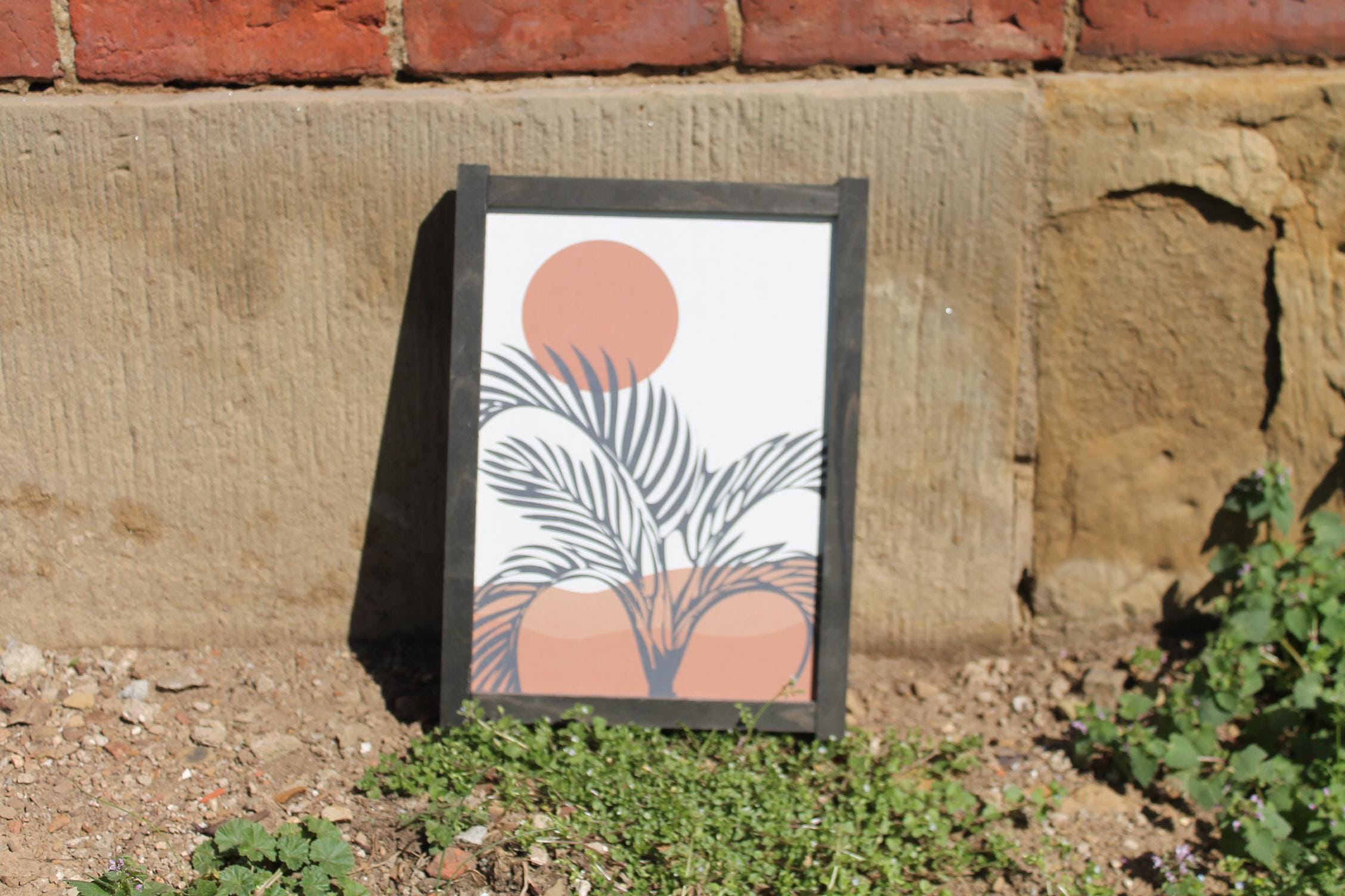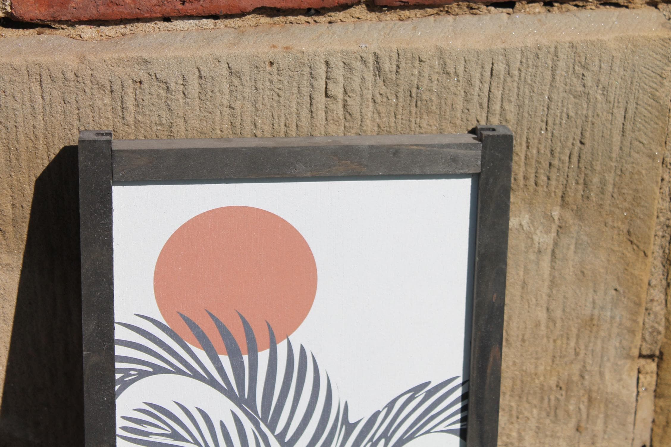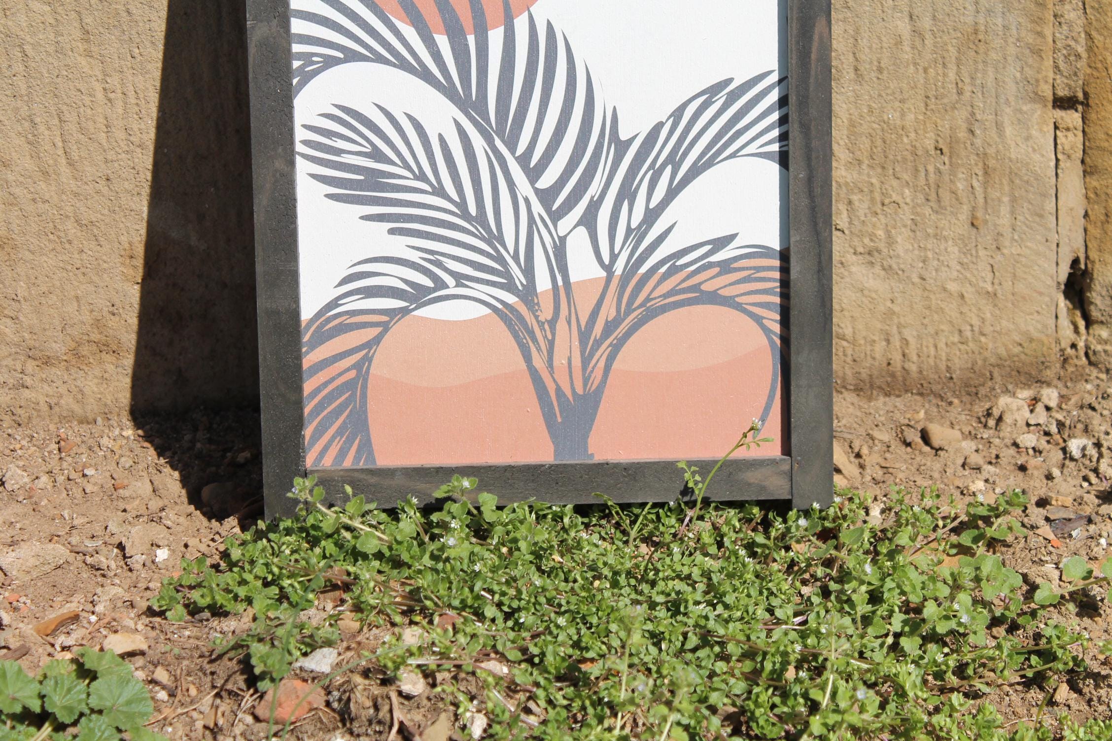 Minimalist Palm Leaf Wall Art – Modern Sun & Desert Shapes Print – Boho Tropical Decor for Living Room, Bedroom, or Warm Earthy Spaces