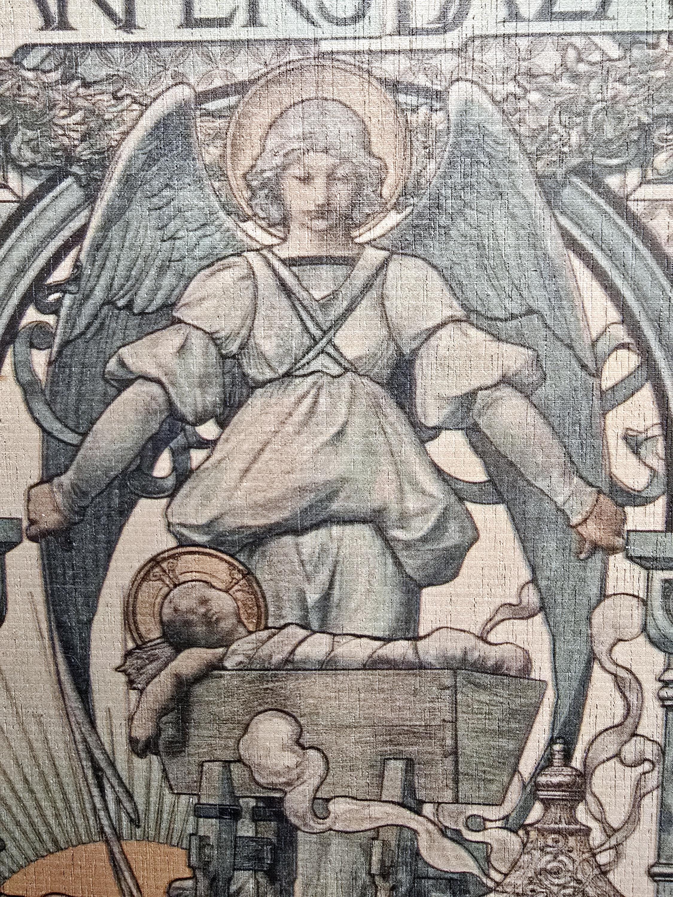 The graphic has been printed onto the wooden backer.