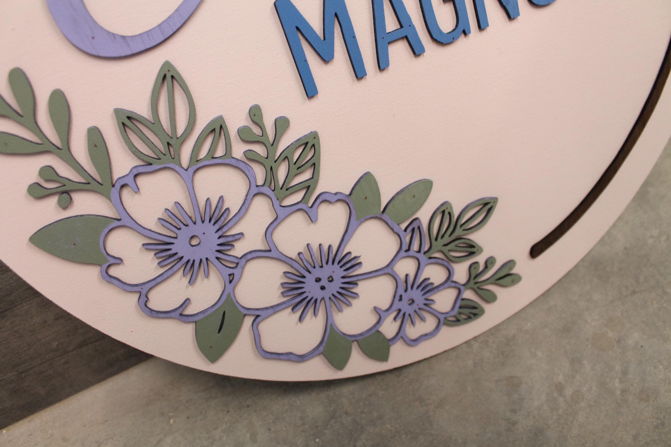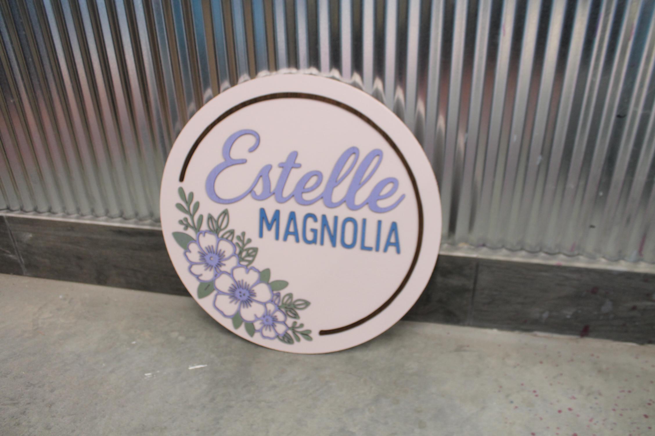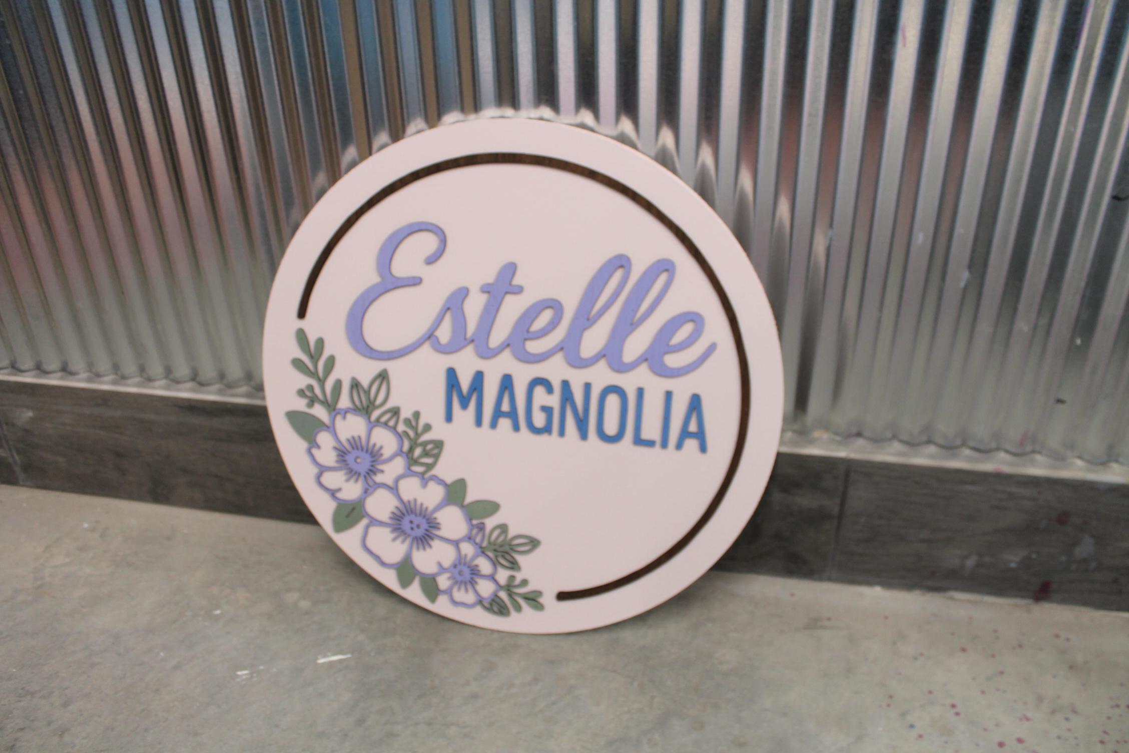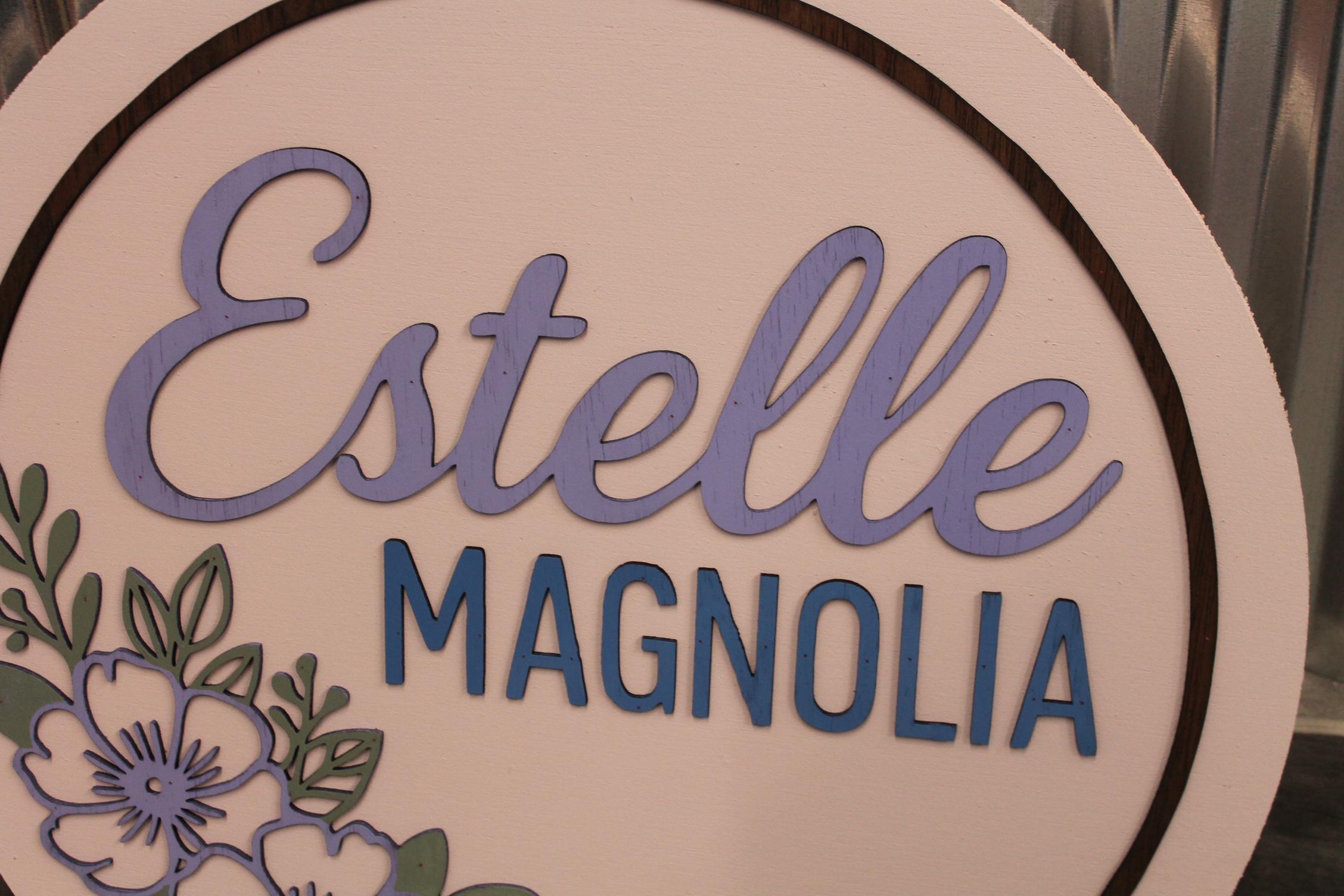 Custom Floral Name Sign • 3D Layered Nursery Wall Decor • Personalized Baby Name Round • Girl’s Room Wooden Sign • Pastel Flower Wall Art