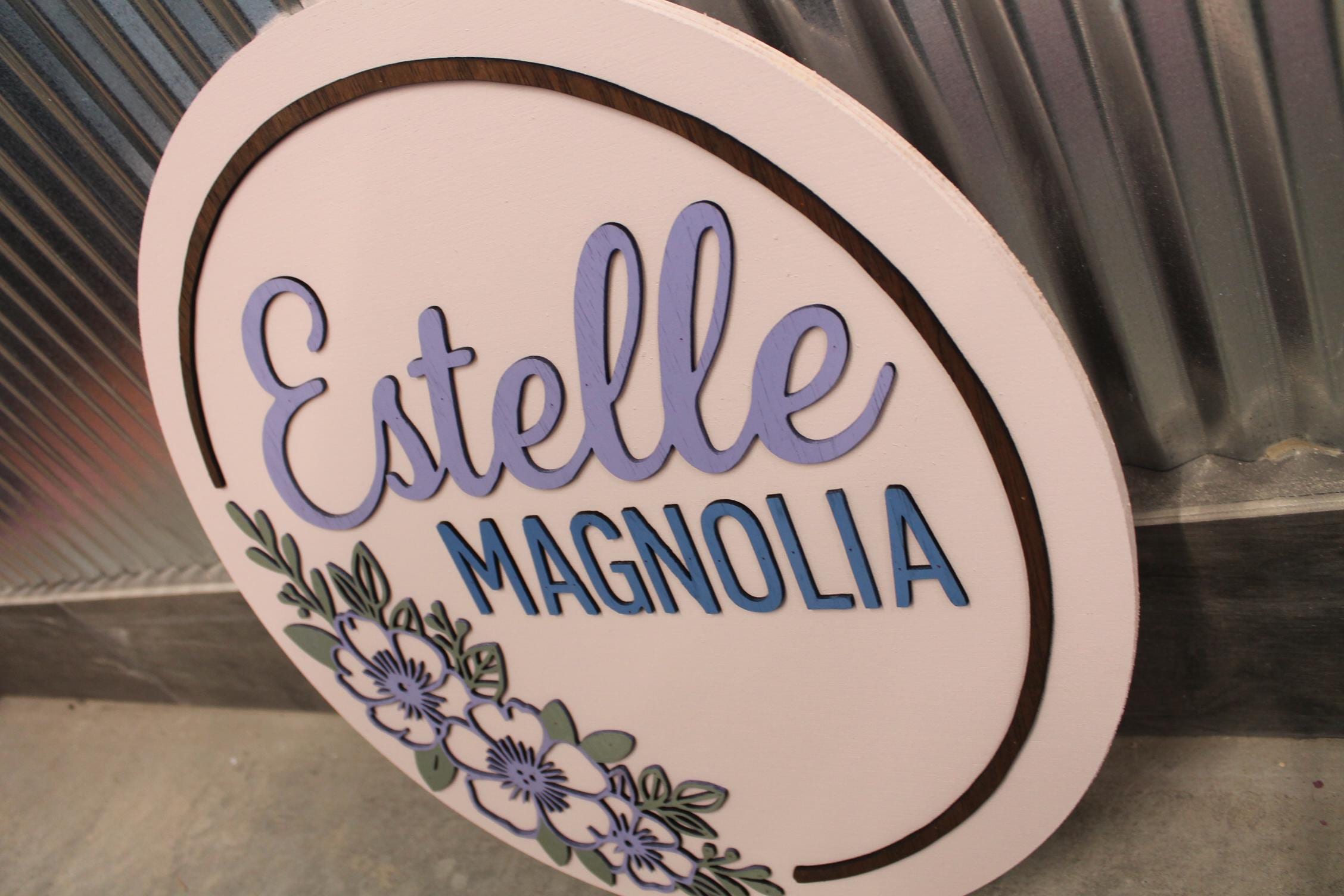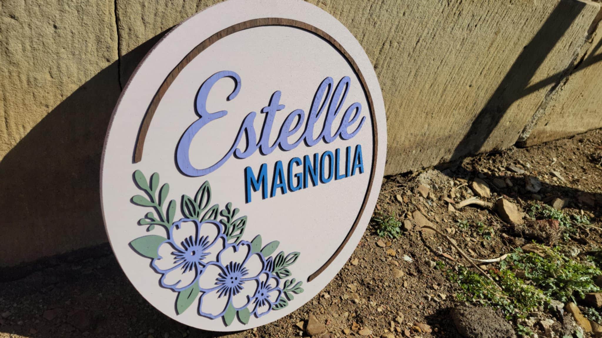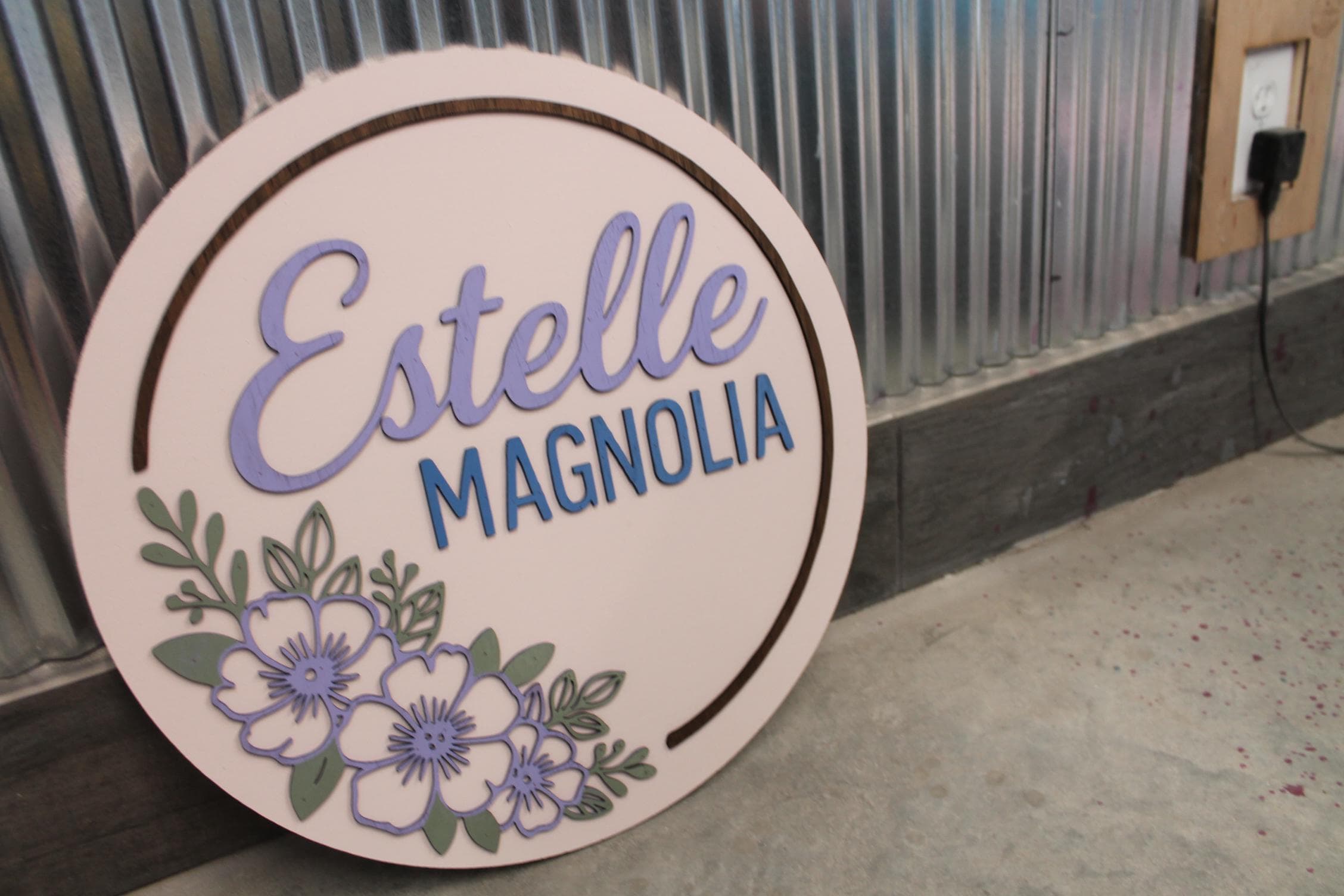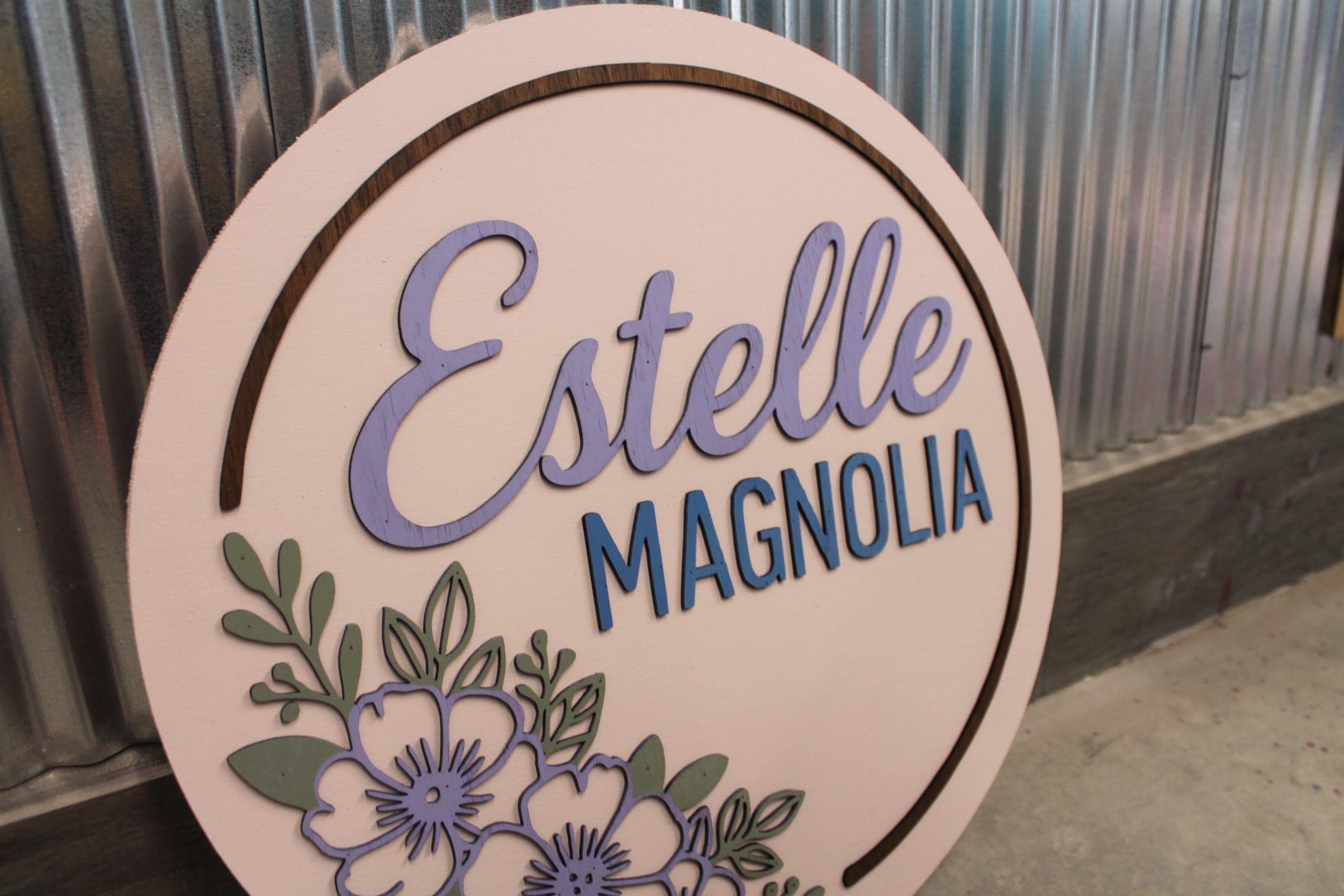 Custom Floral Name Sign • 3D Layered Nursery Wall Decor • Personalized Baby Name Round • Girl’s Room Wooden Sign • Pastel Flower Wall Art