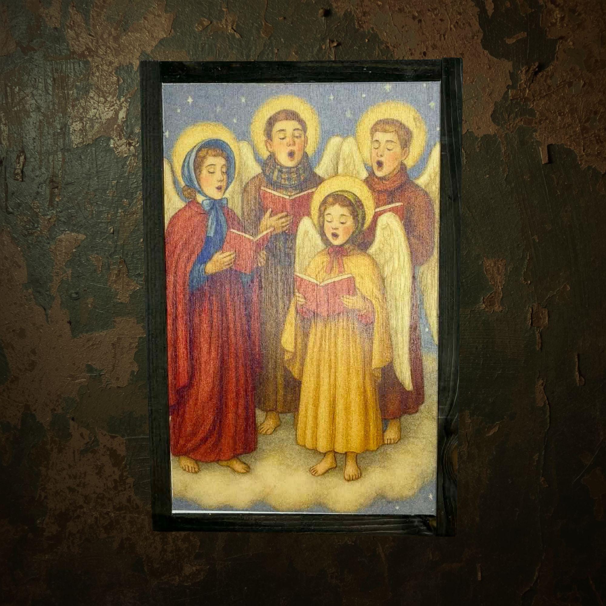 Angel Choir Wall Art – Heavenly Singing Scene with Halos and Clouds – Classic Spiritual Decor for Home, Nursery, or Holiday Display
