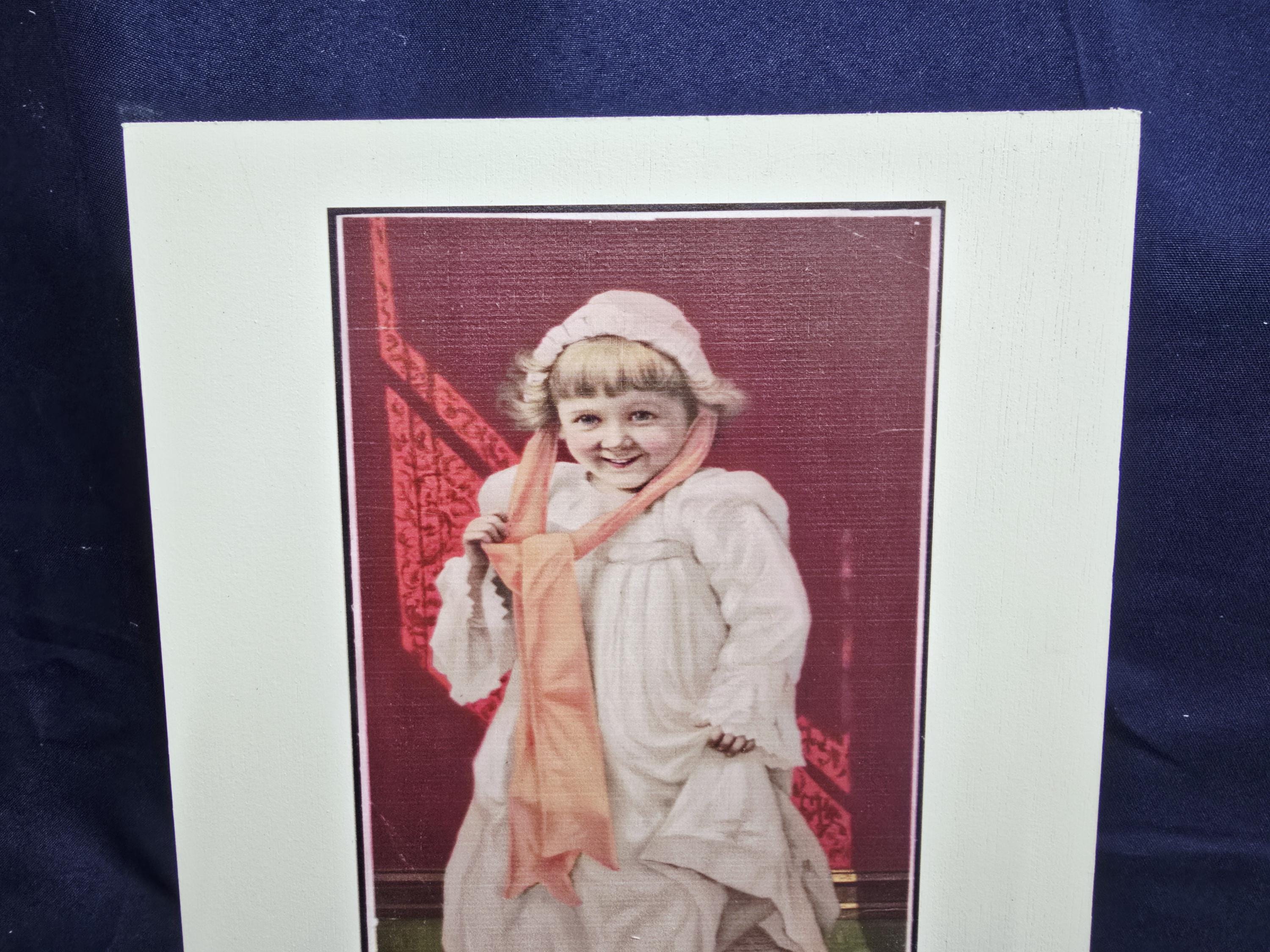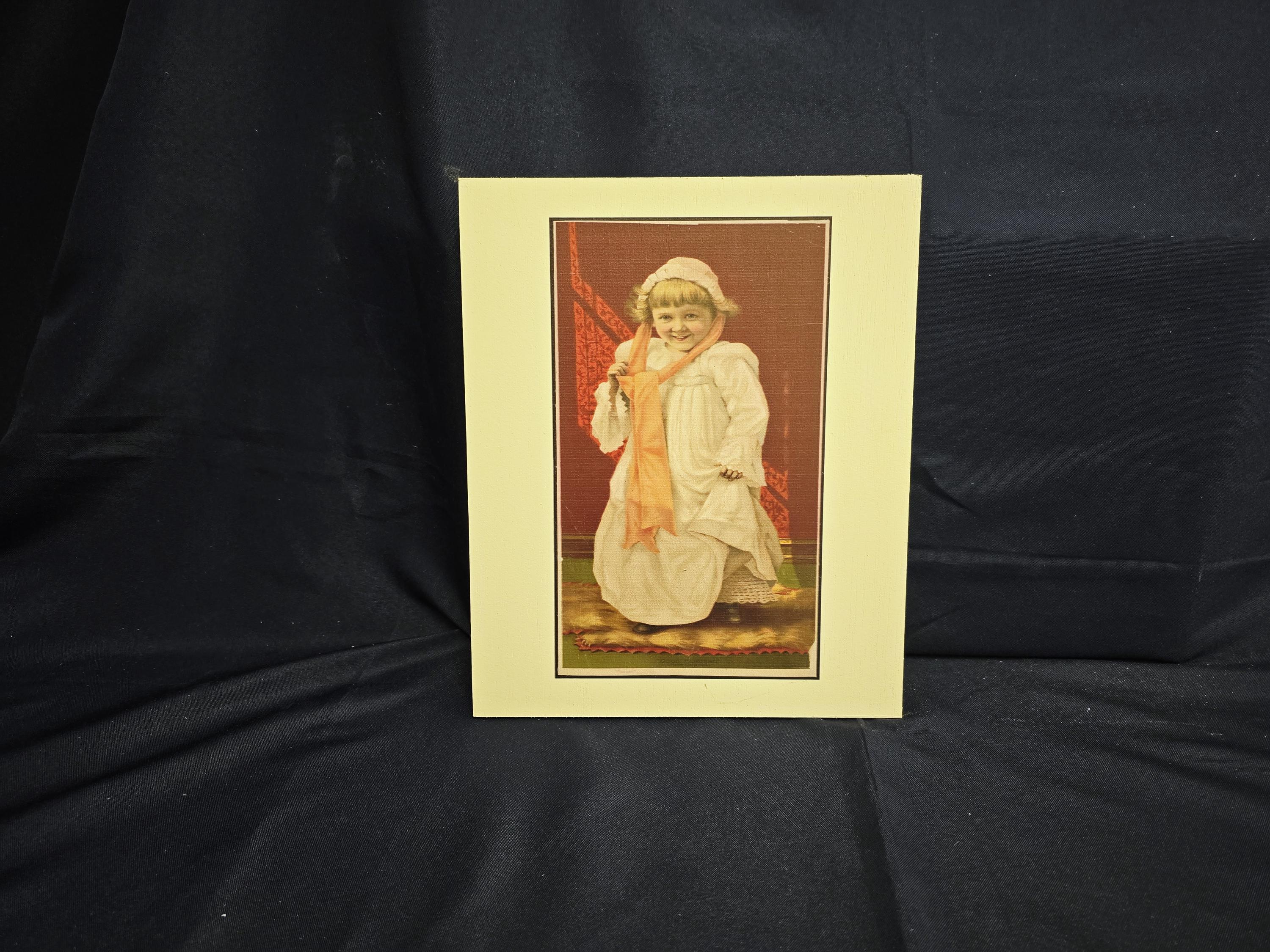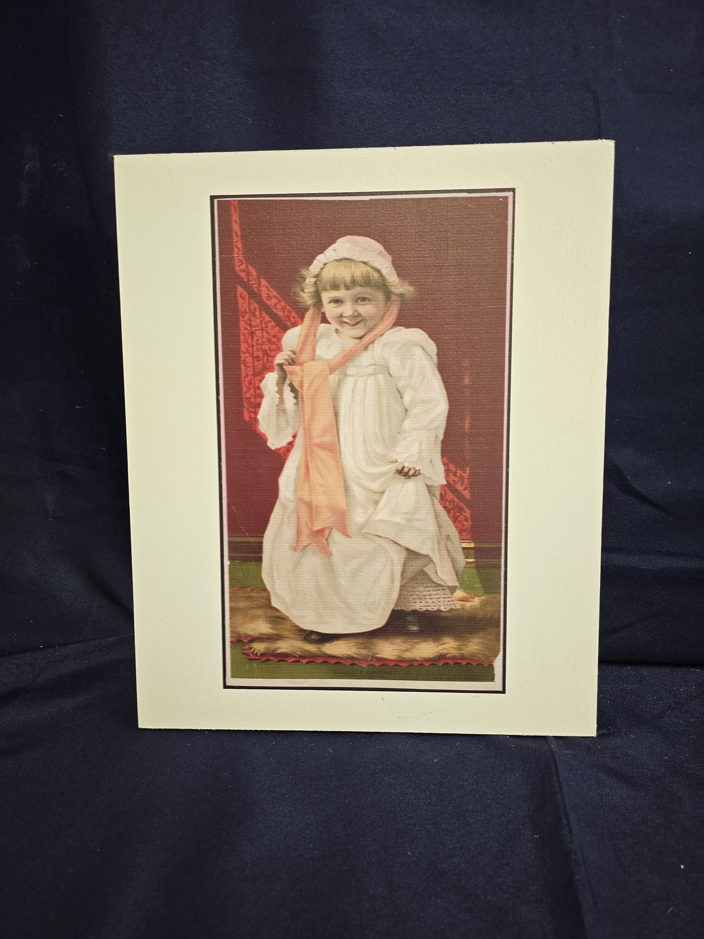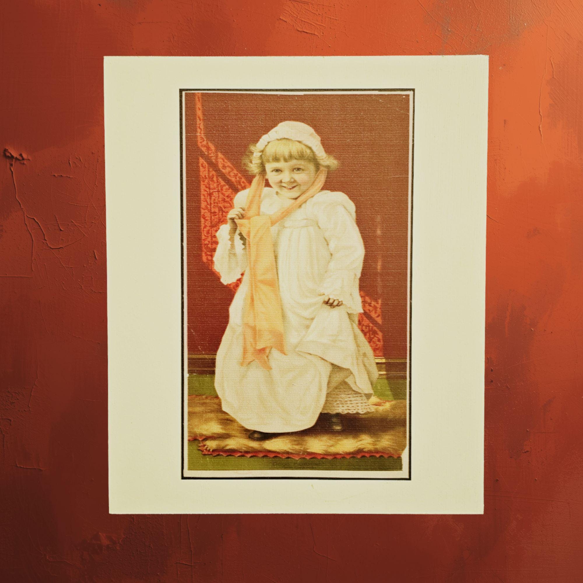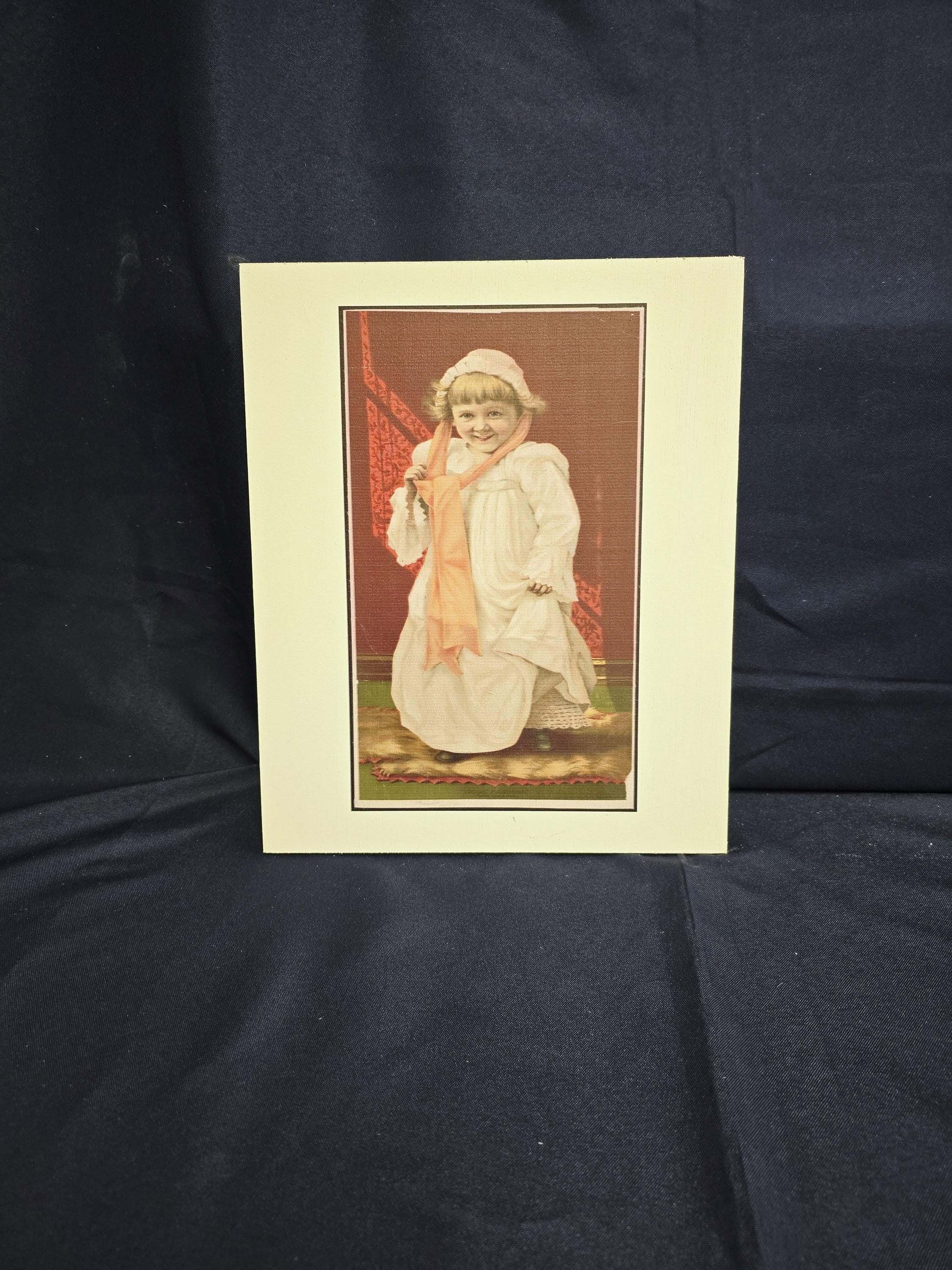 Vintage Child Portrait Art Print – Old‑Fashioned Nightgown & Scarf Illustration with Warm Tones – Classic Nostalgic Wall Decor for Home