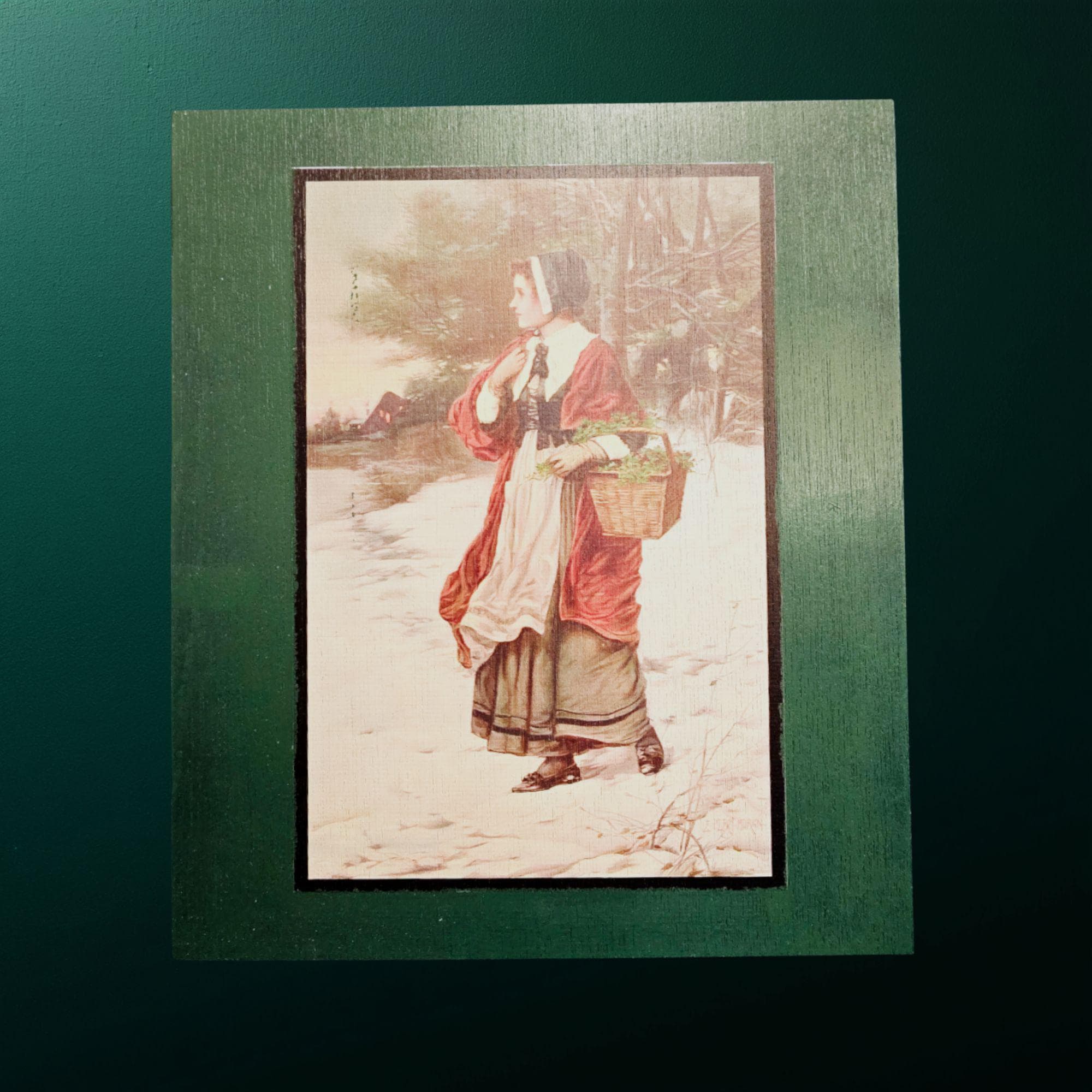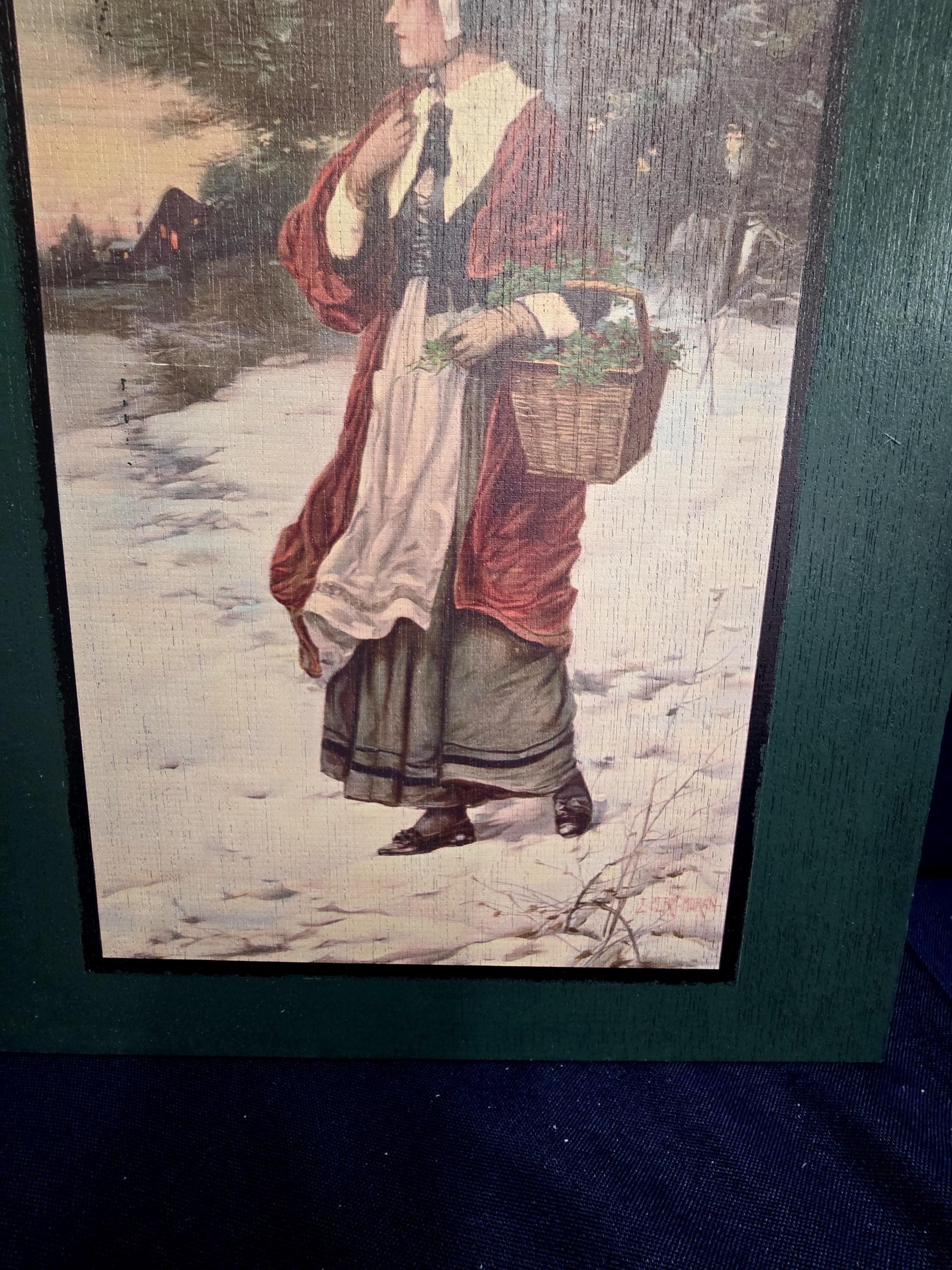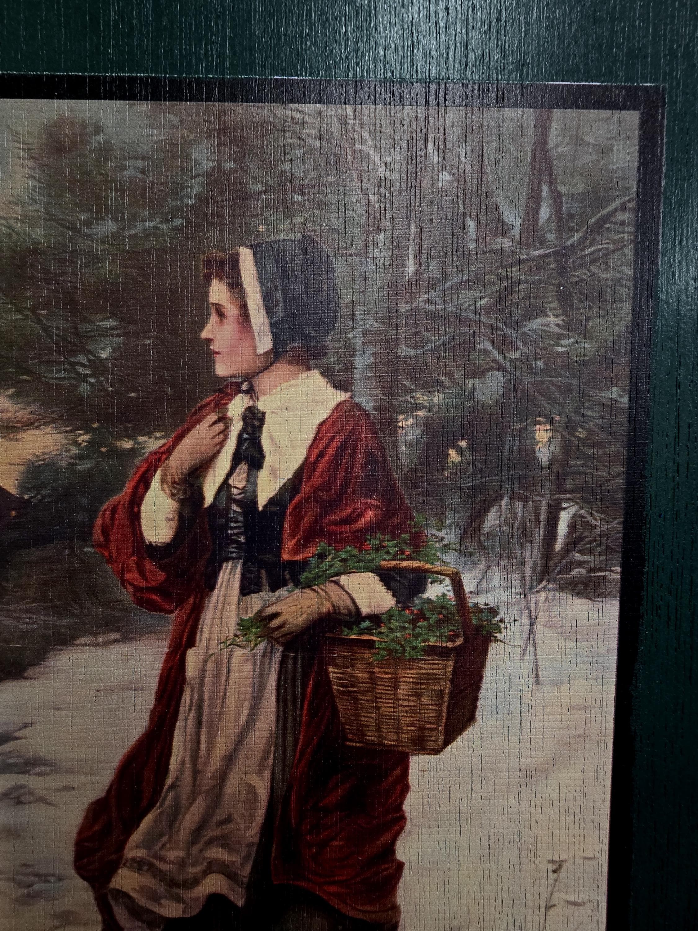 Vintage Winter Gathering Art Print – Classic Cloaked Figure in Snowy Countryside – Rustic Holiday Wall Decor for Home or Seasonal Display