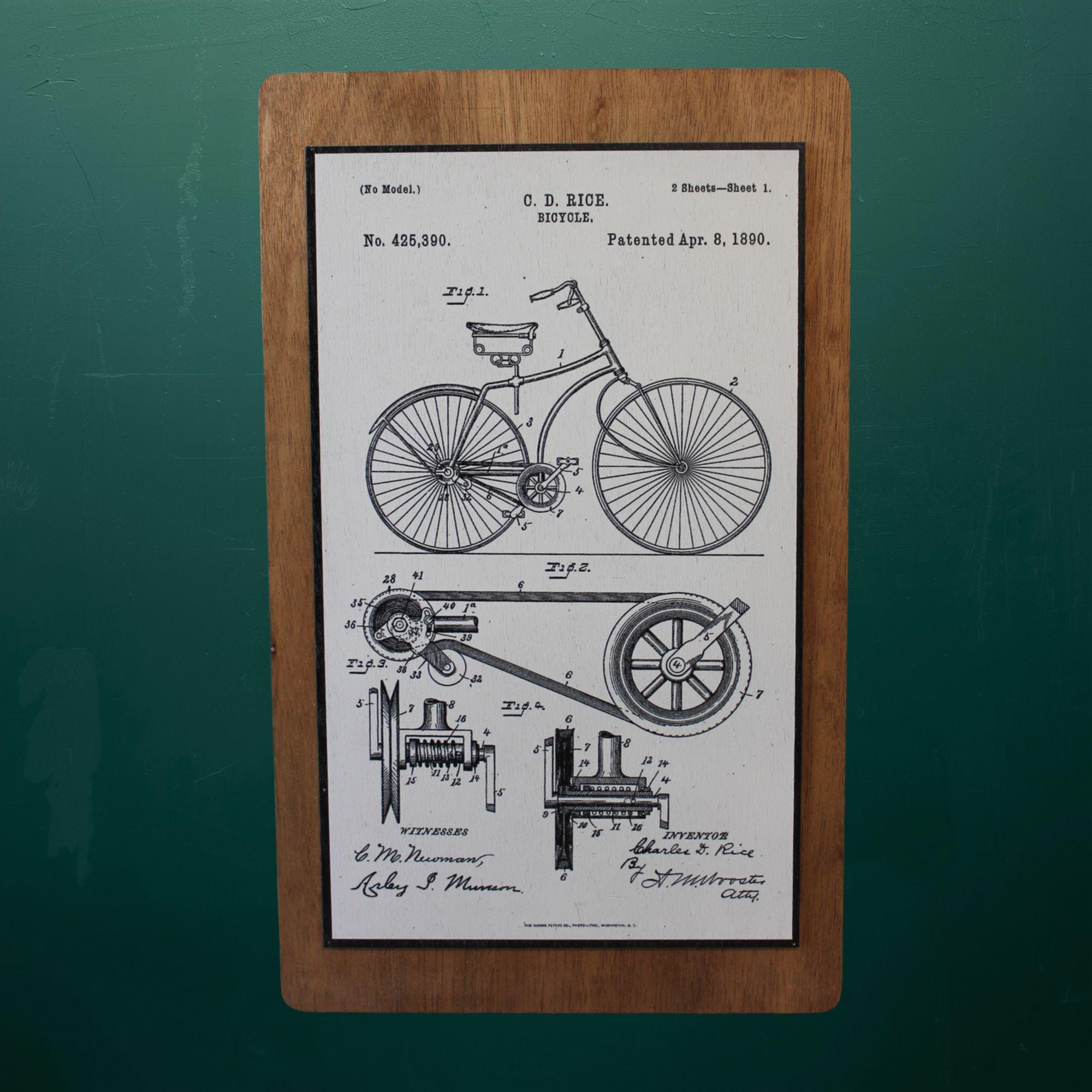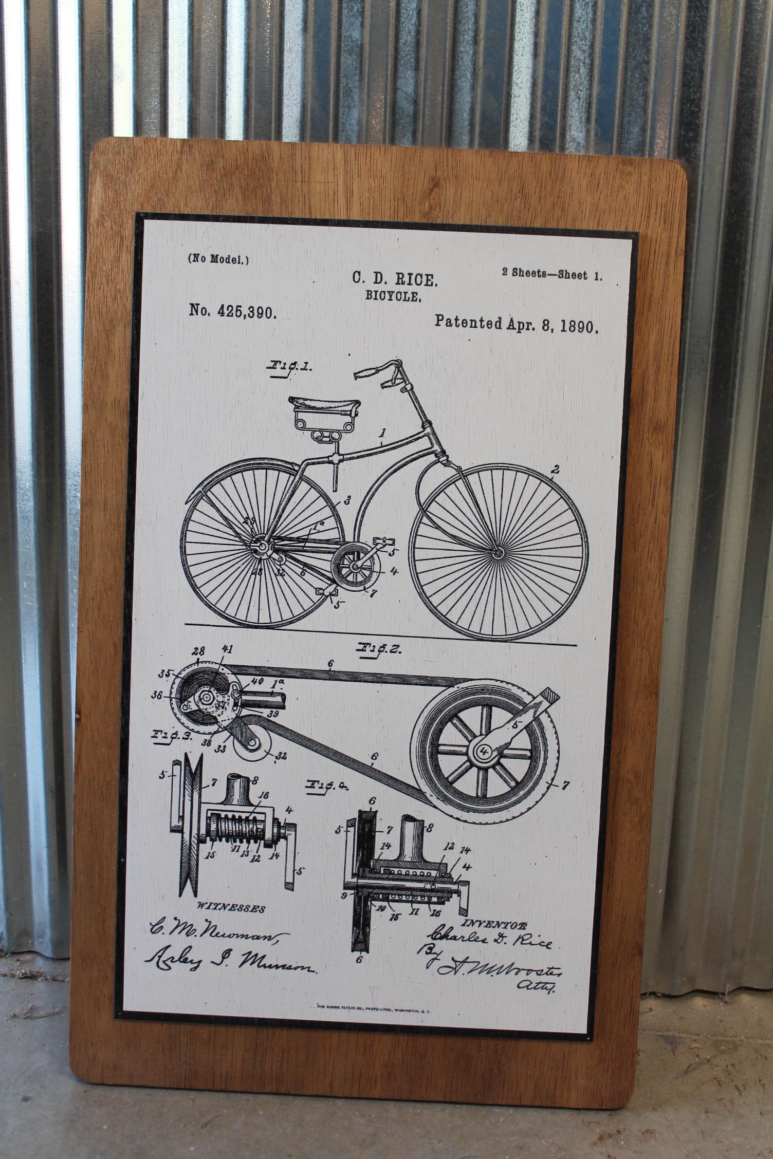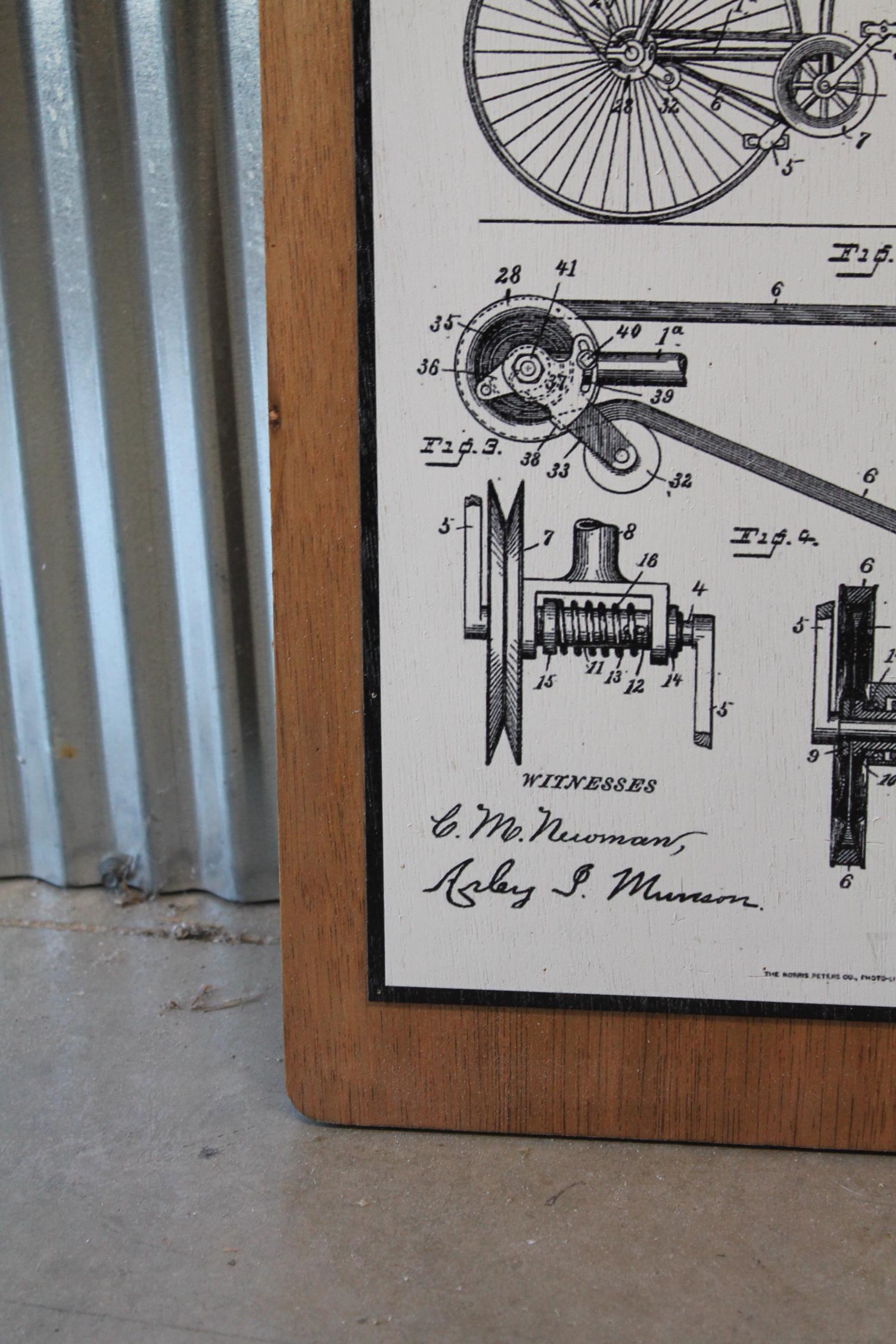 Vintage Bicycle Patent Art Print – 1890 Mechanical Diagram Illustration with Detailed Engineering Lines – Classic Industrial Wall Decor