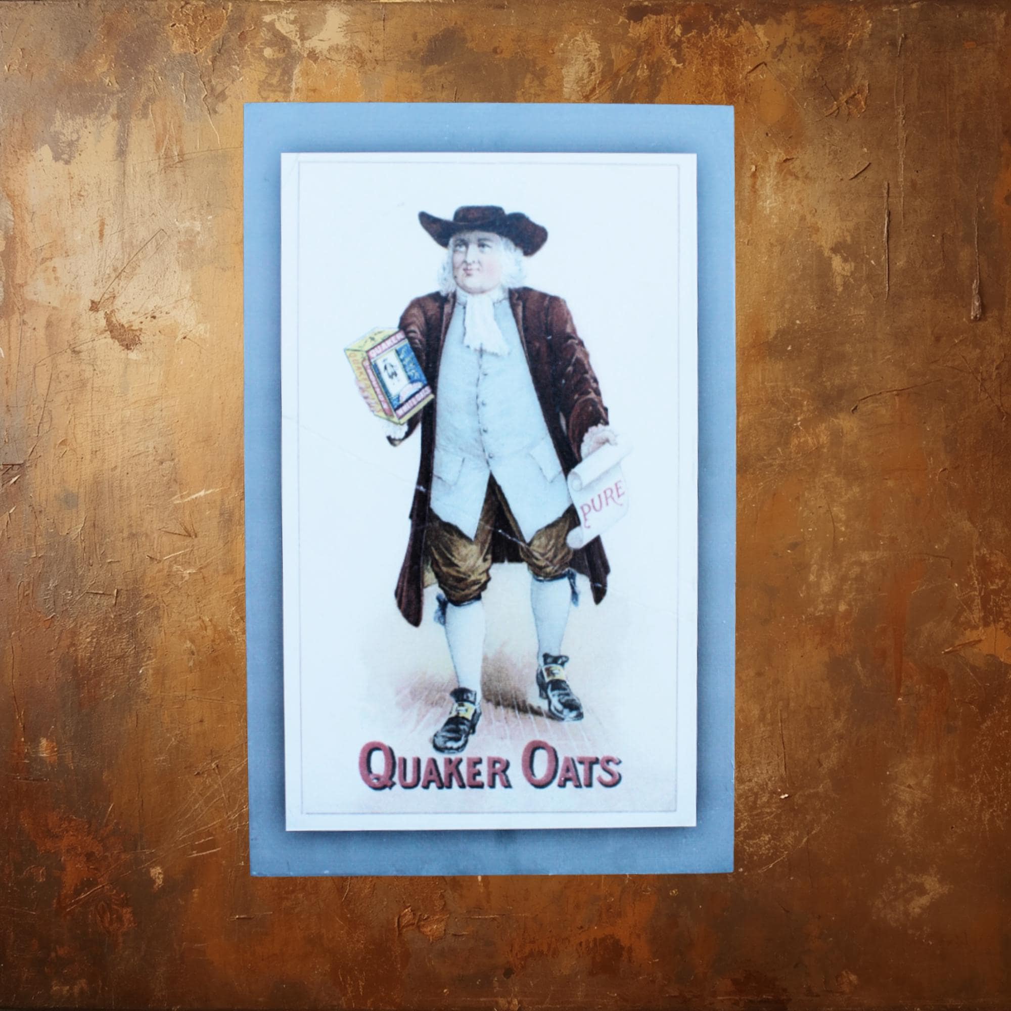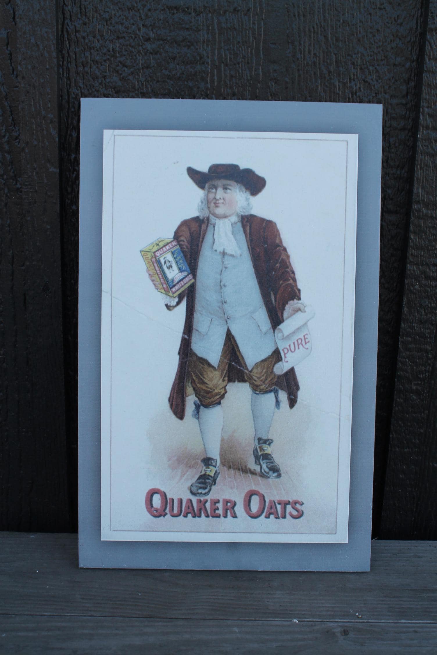 Vintage Quaker Oats Advertisement Art Print – Classic Quaker Figure Illustration in Antique Style for Retro Kitchen or Pantry Wall Decor