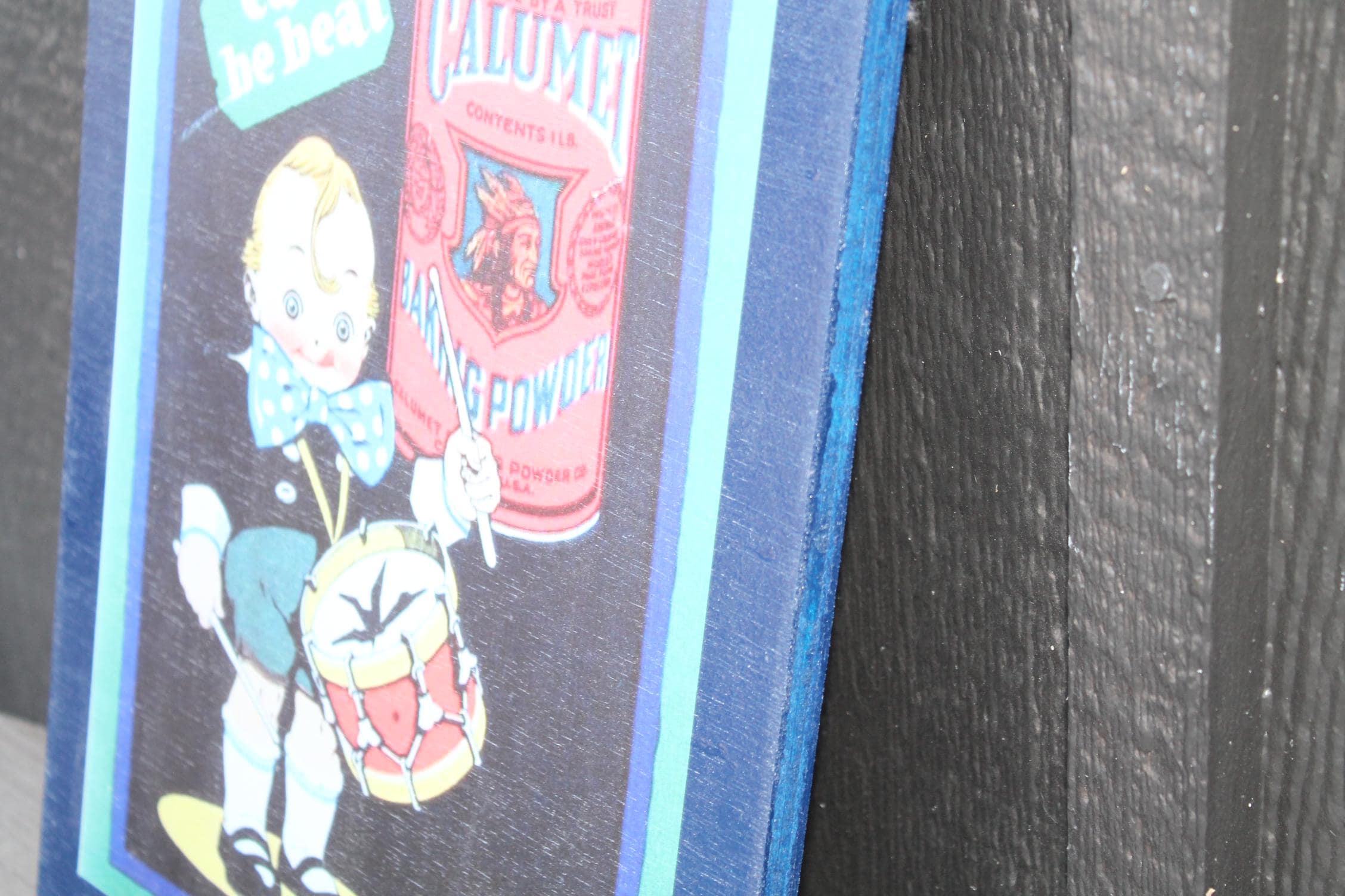 Vintage Calumet Baking Powder Advertisement Art Print – Classic Child Drummer Illustration in Retro Antique Style for Kitchen Wall Decor
