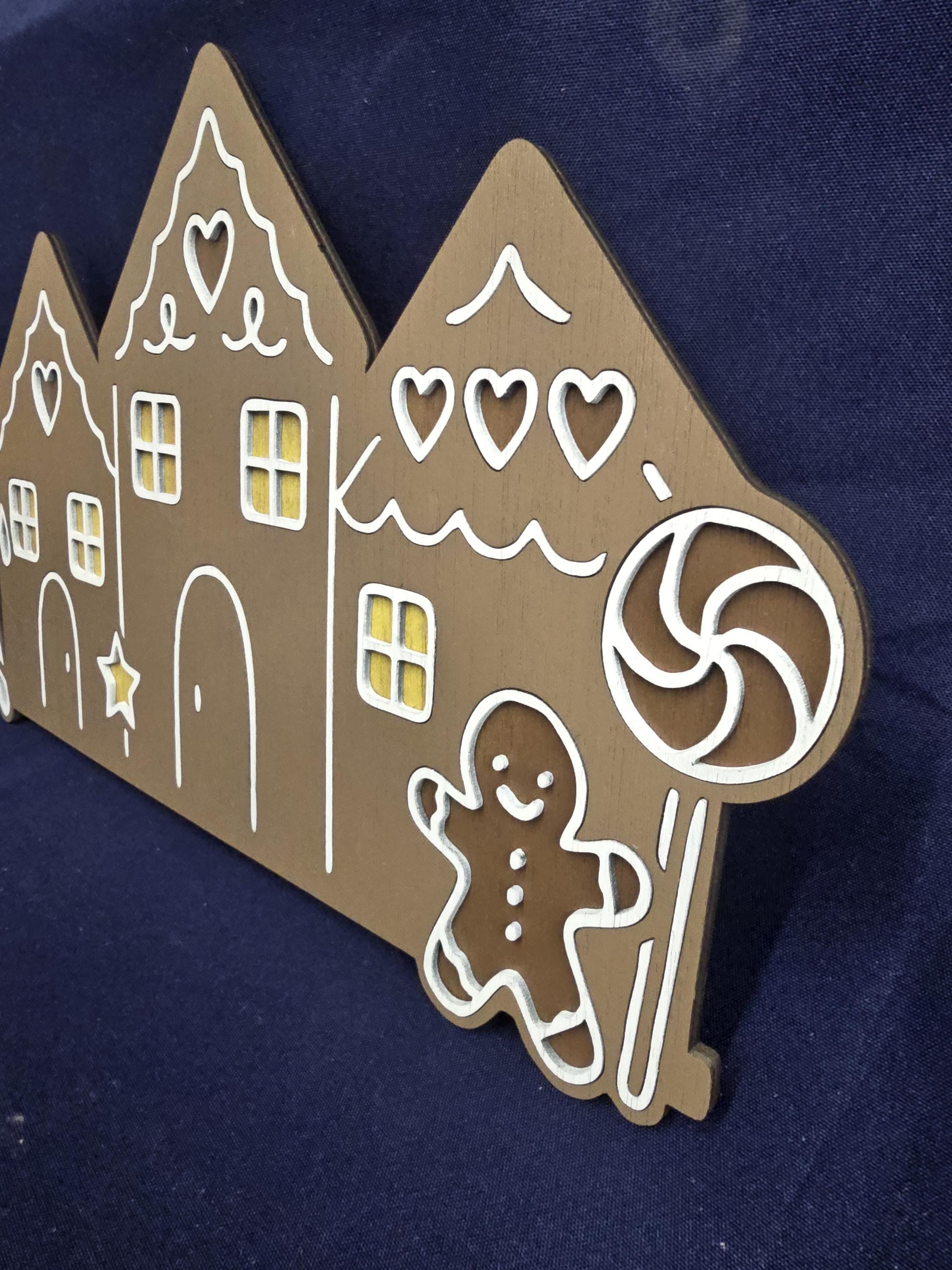 3D Gingerbread House Sign • Raised Christmas Village Decor • Whimsical Holiday Wood Sign • Cute Gingerbread Wall Art