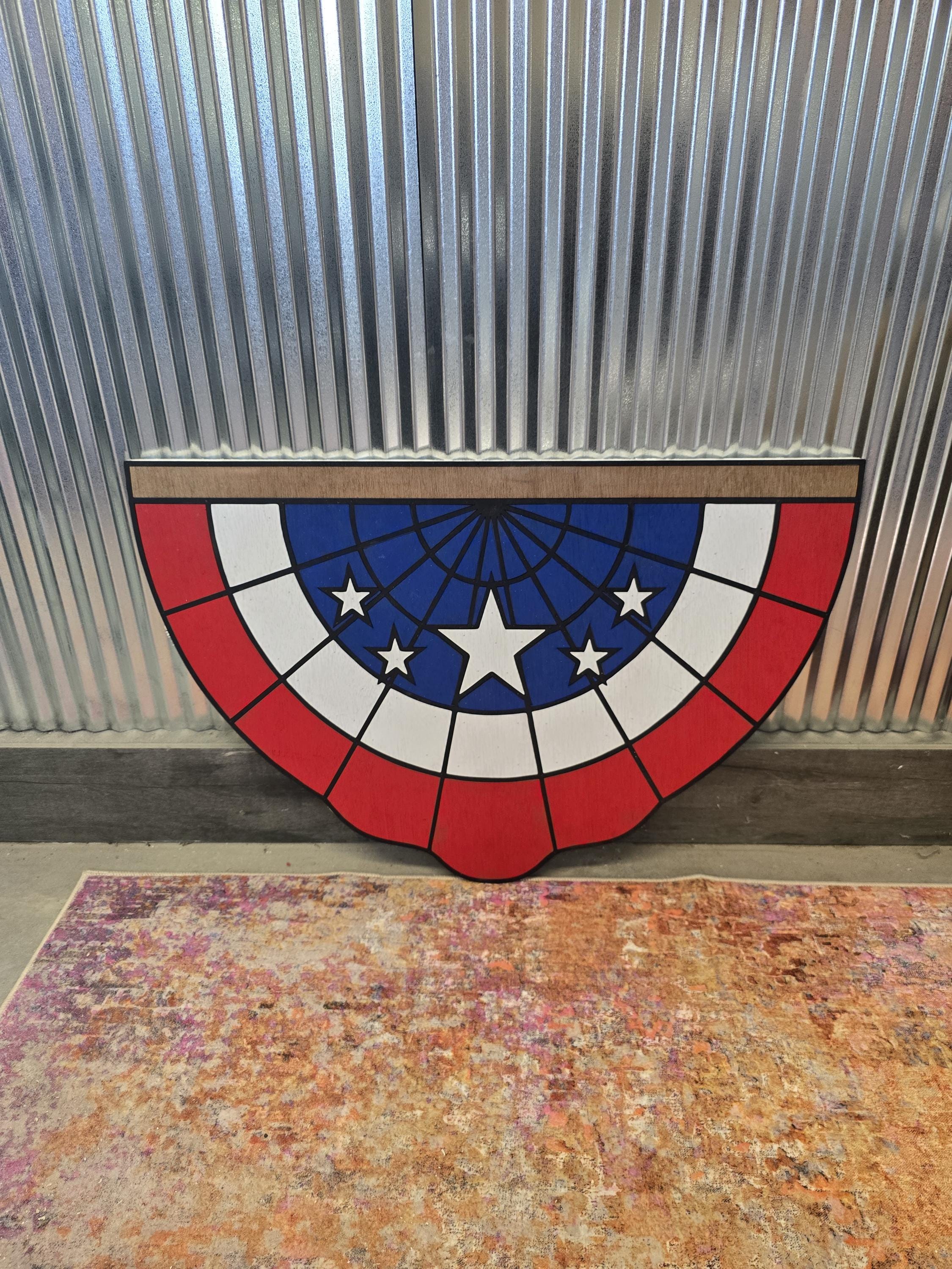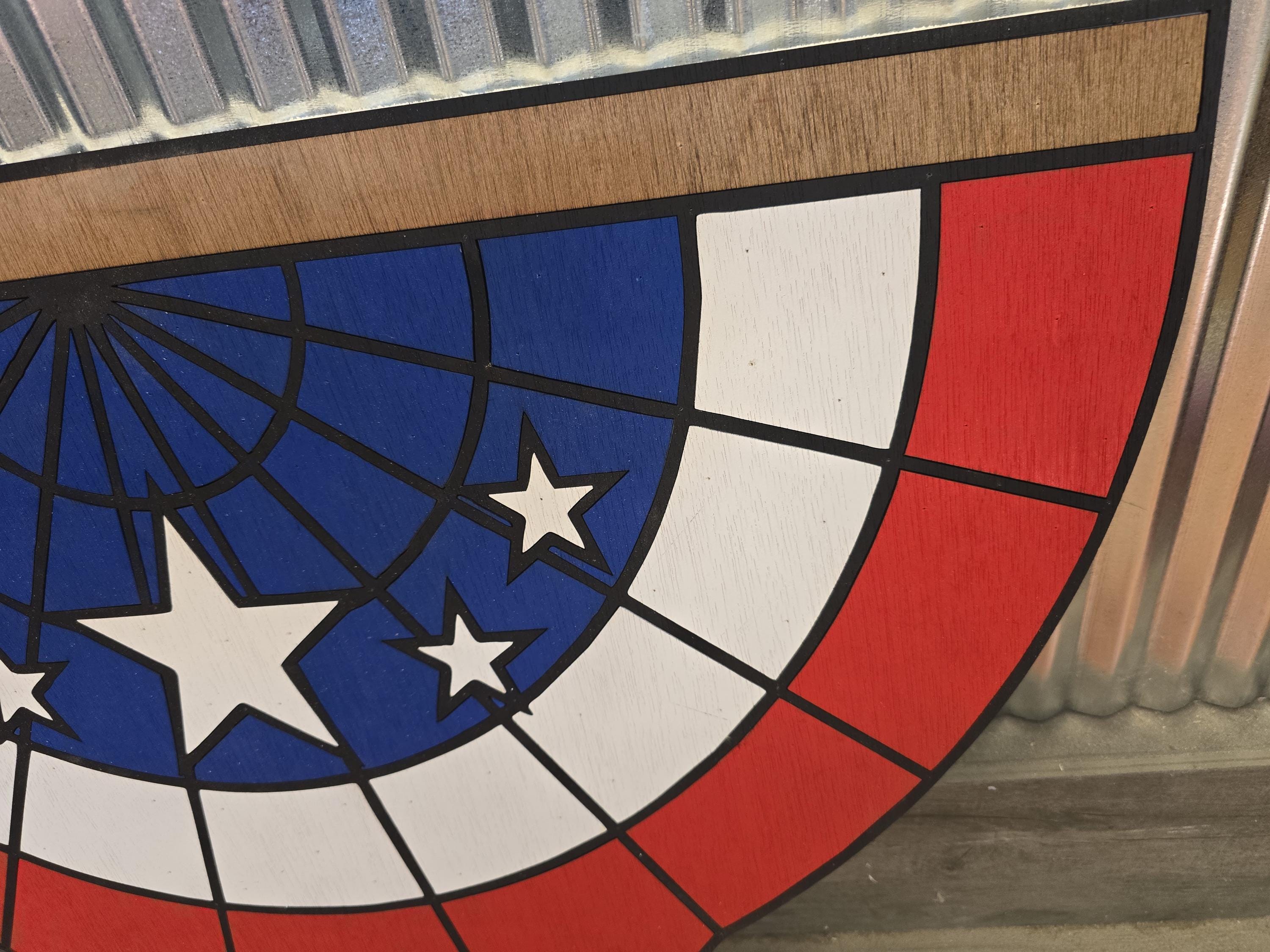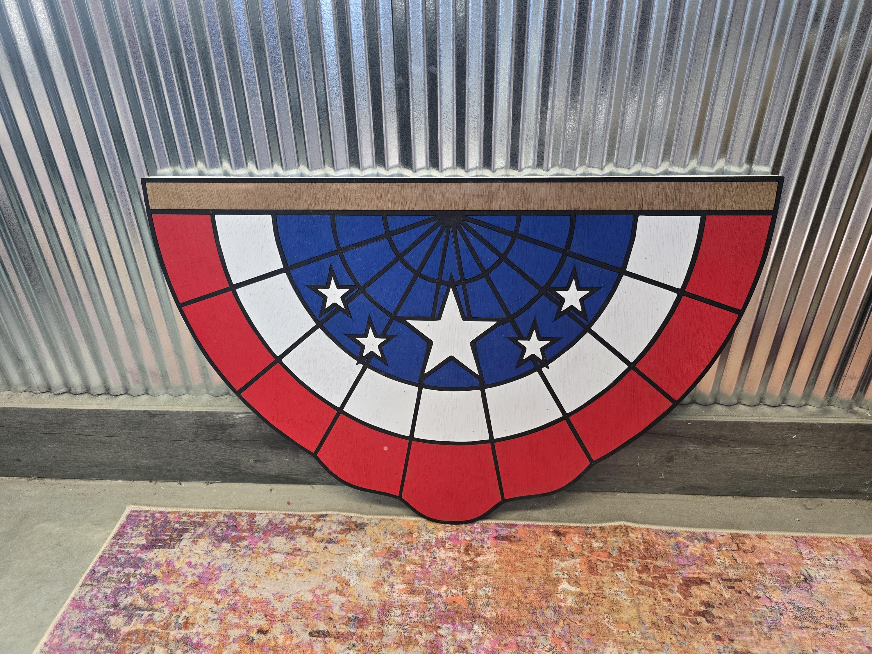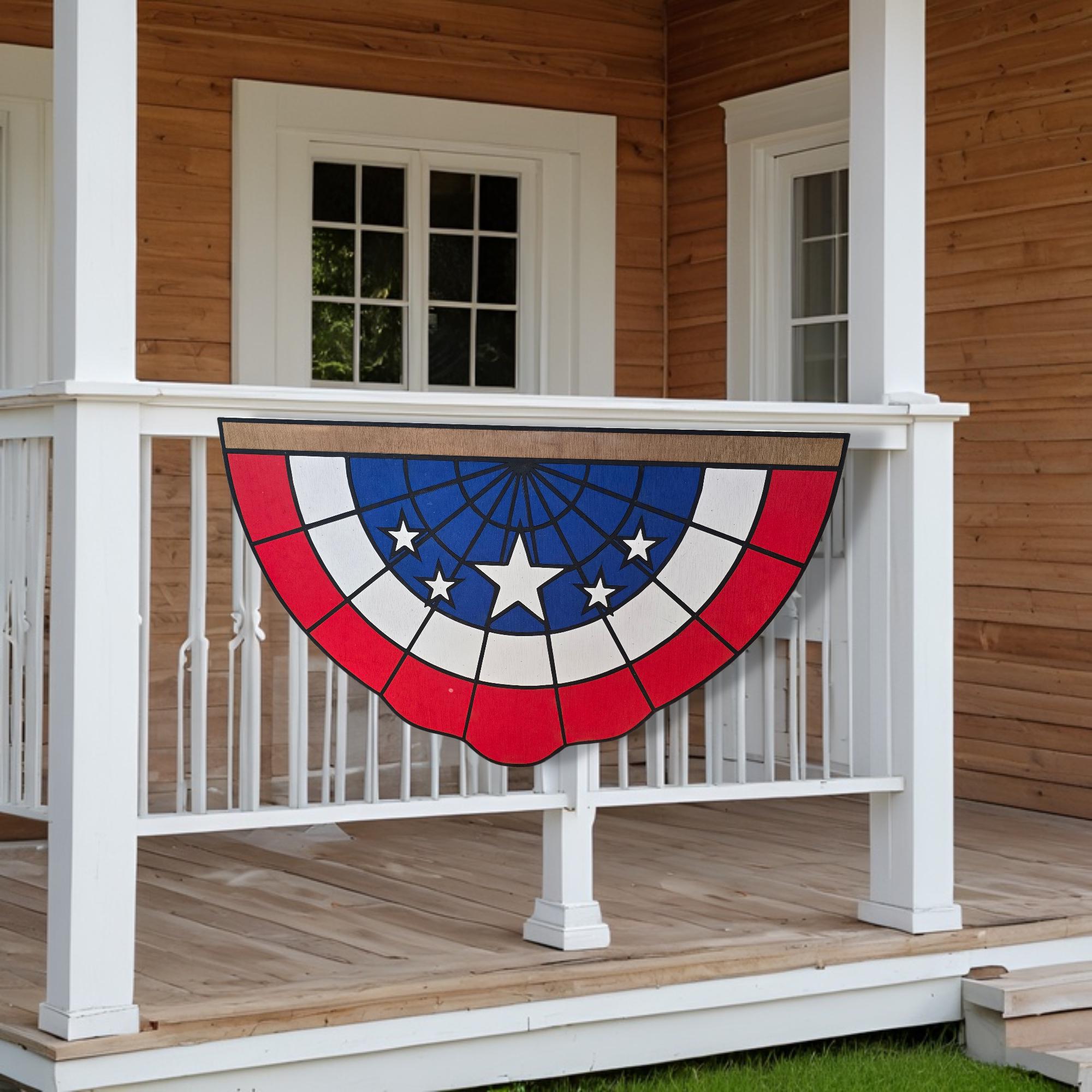 3D Patriotic Bunting Sign • Raised Americana Wood Decor • Rustic Farmhouse Flag Wall Art • Stars & Stripes 3D Porch Sign