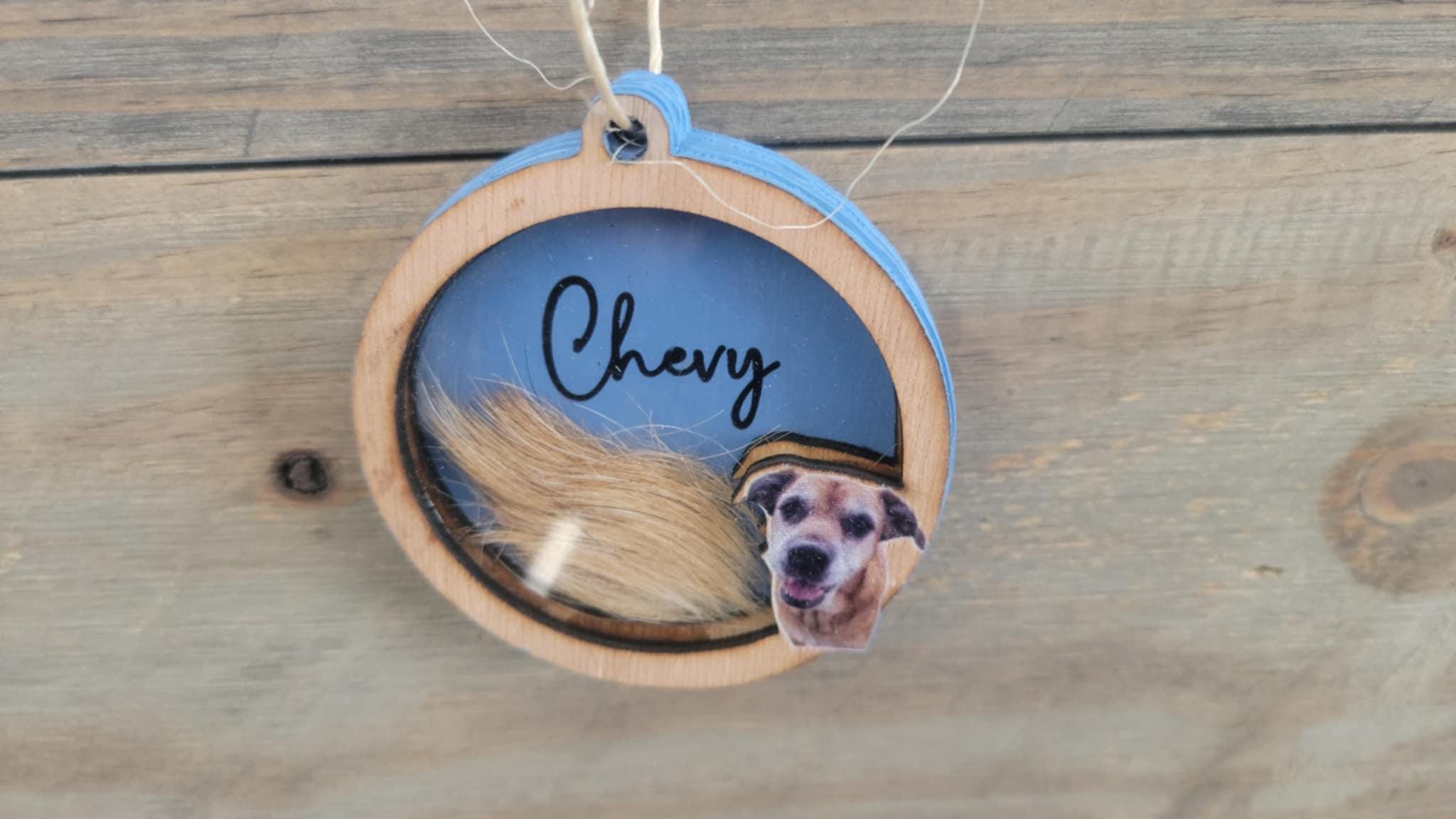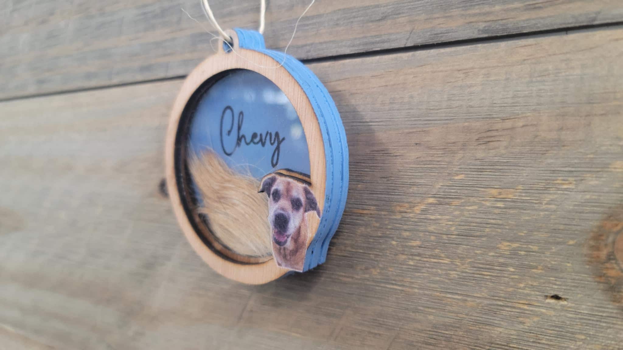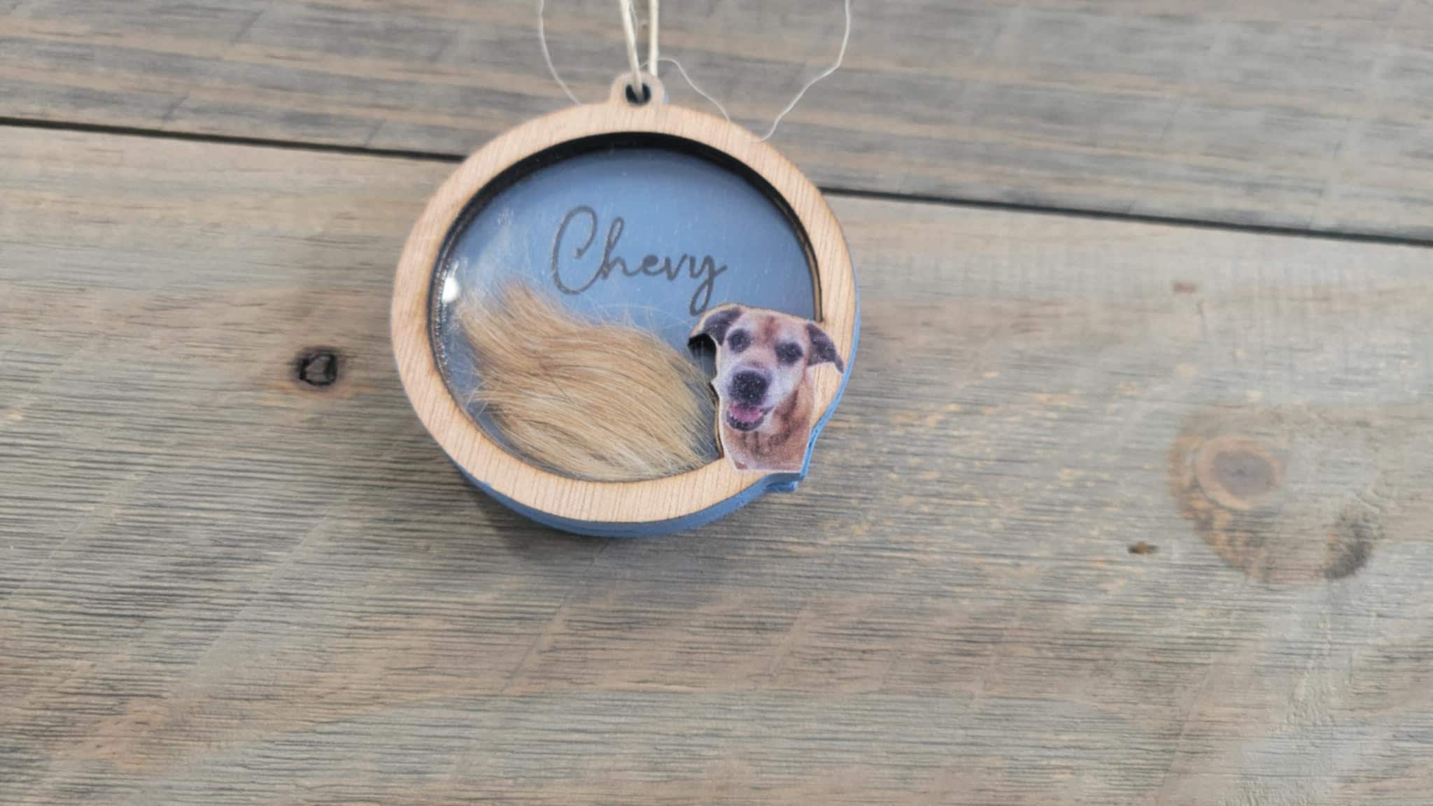 Custom Dog Hair Ornament • Personalized Photo & Text Wood Keepsake • Real Pet Hair Memorial Gift • Dog Lover Ornament