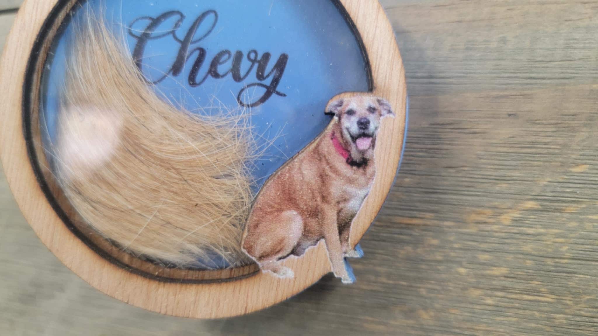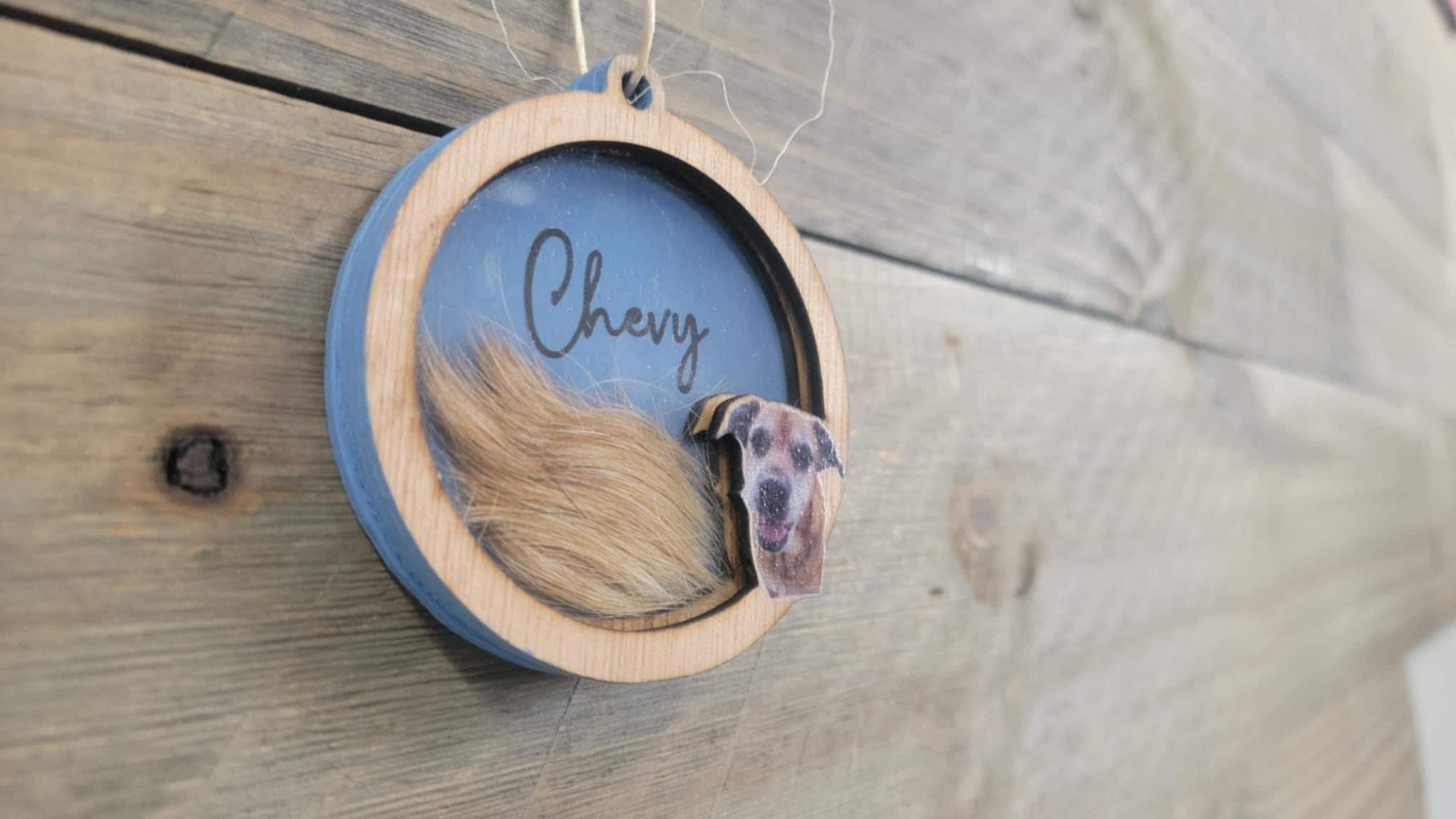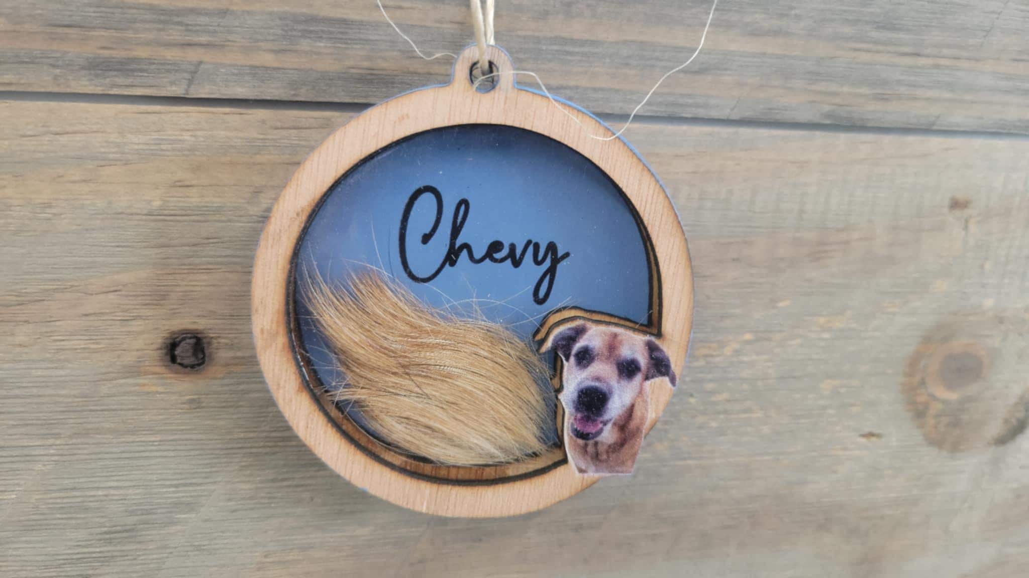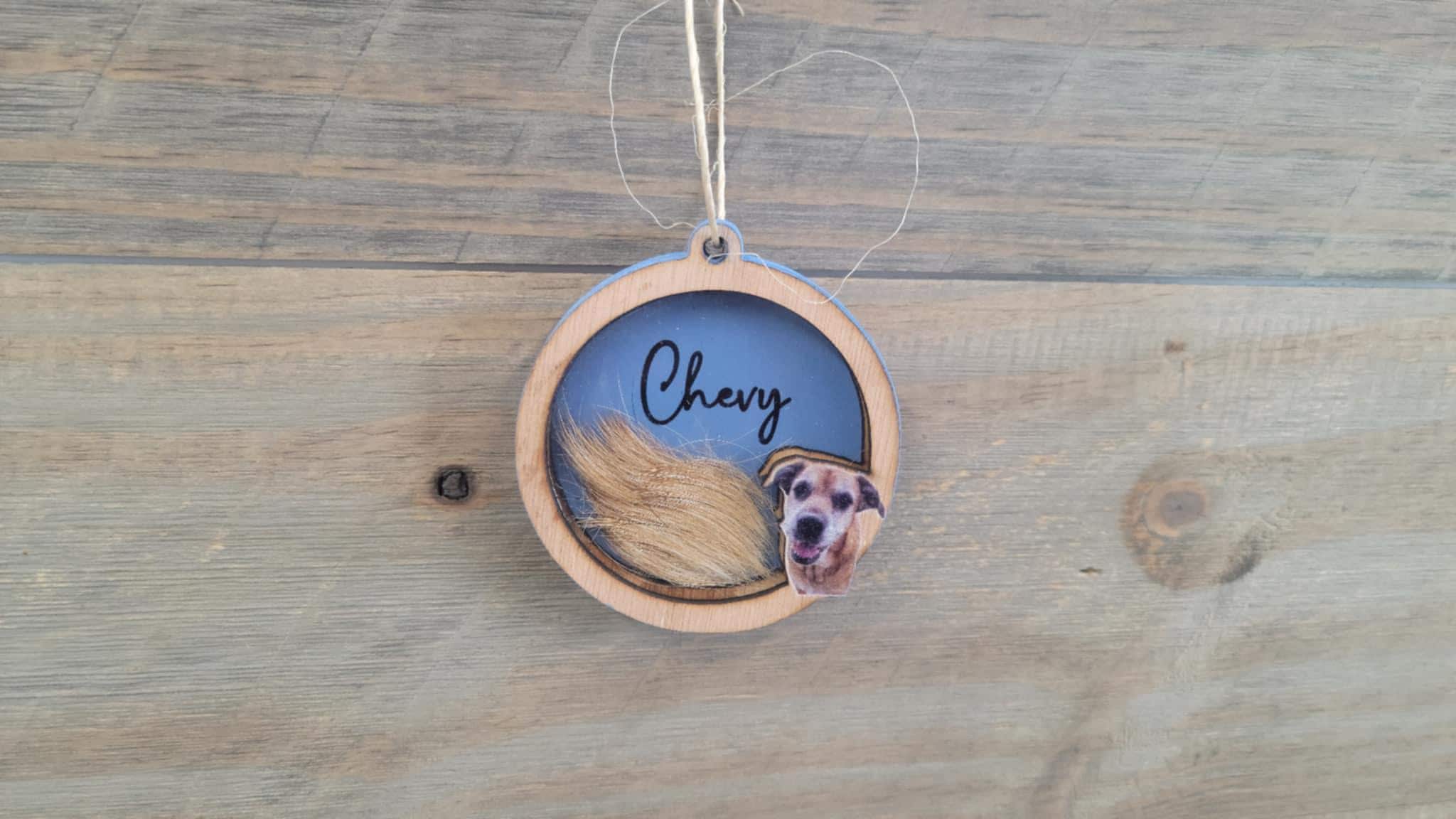 Custom Dog Hair Ornament • Personalized Photo & Text Wood Keepsake • Real Pet Hair Memorial Gift • Dog Lover Ornament