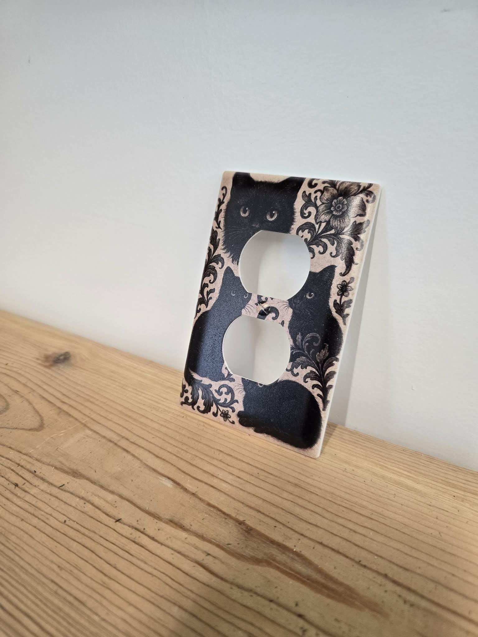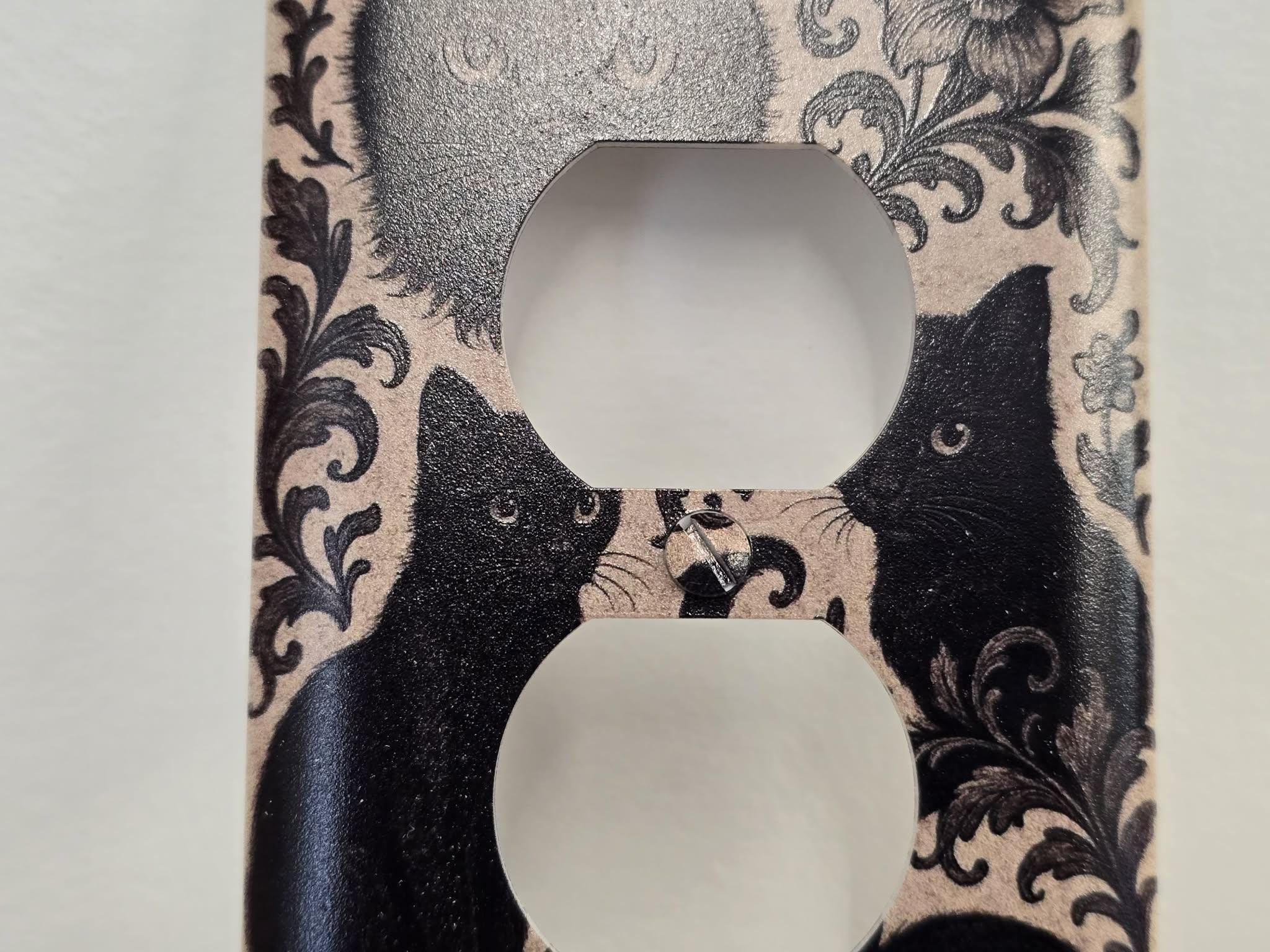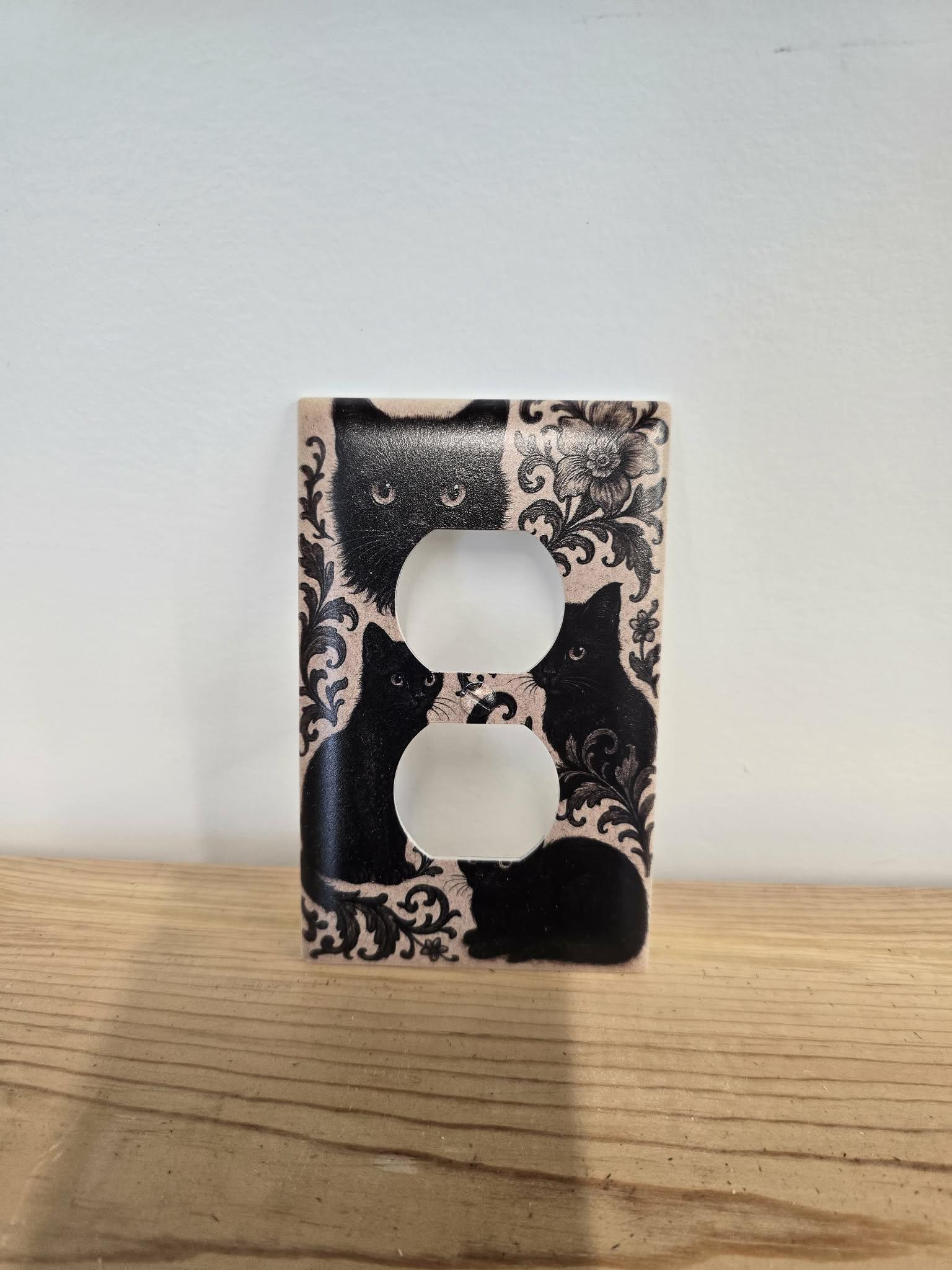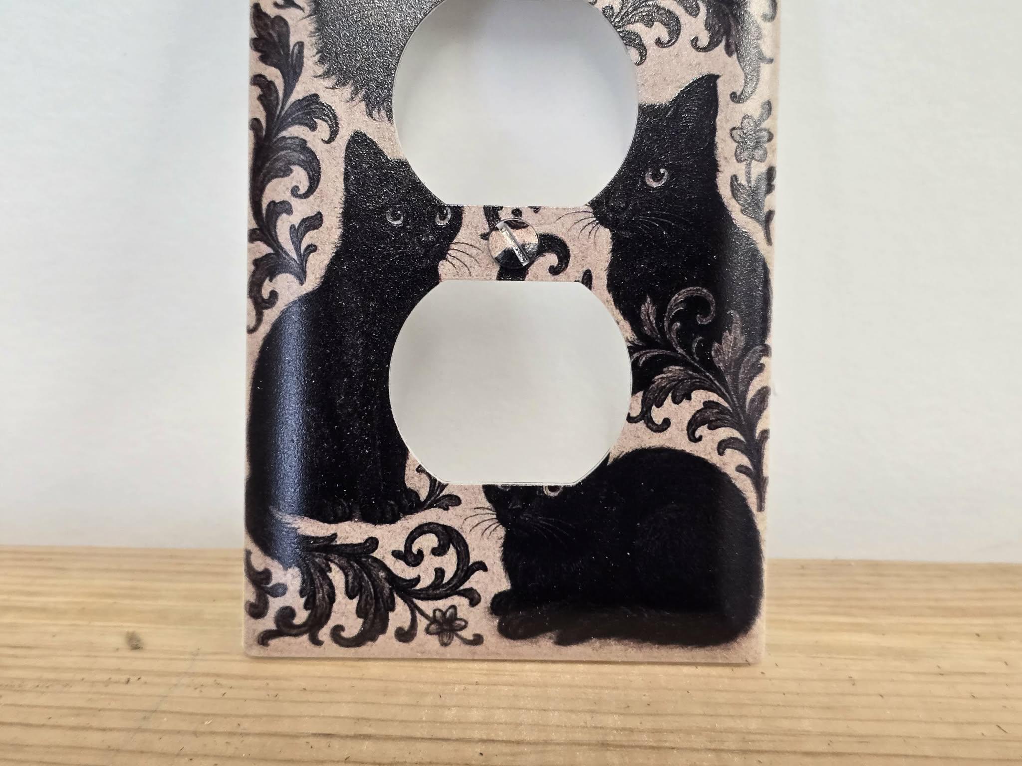 Black Cat Floral Outlet Cover – Vintage‑Style Decorative Switch Plate with Ornate Pattern for Gothic, Cottage, or Retro Home Decor