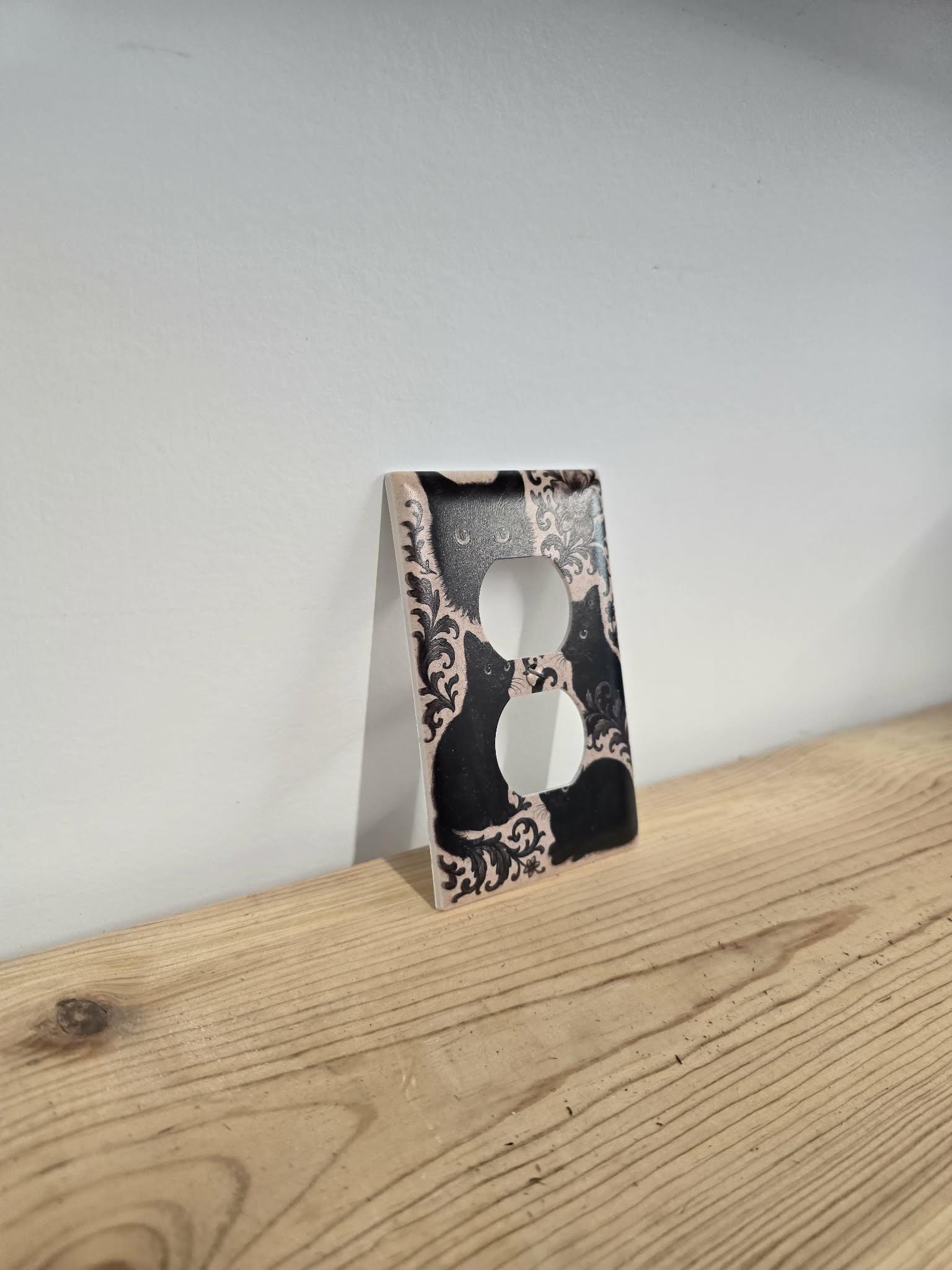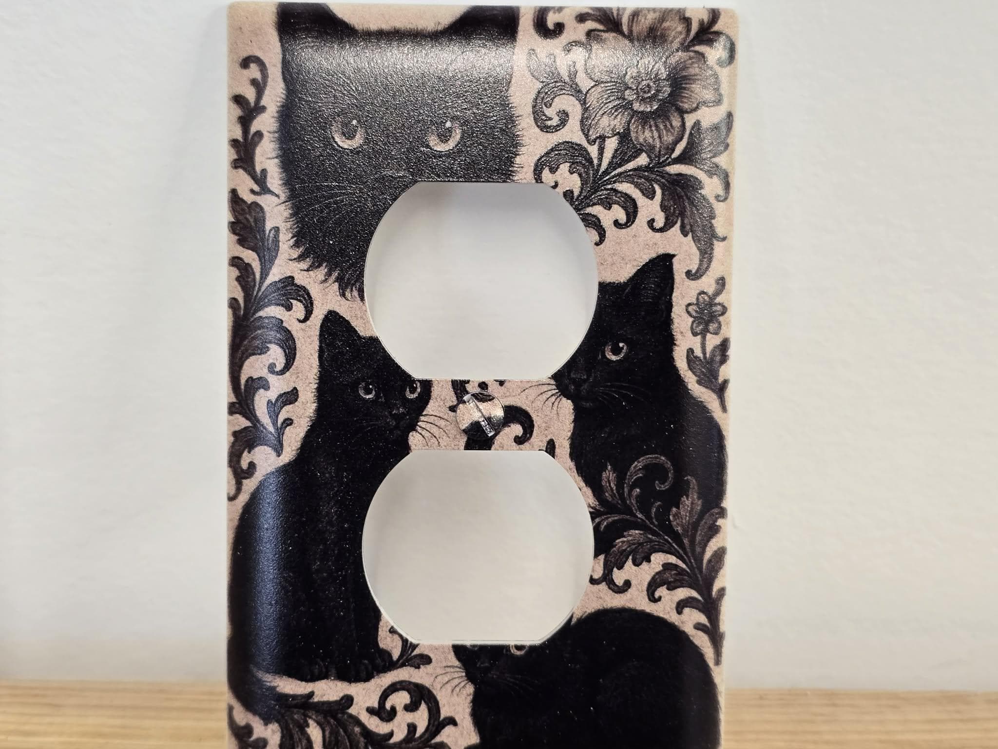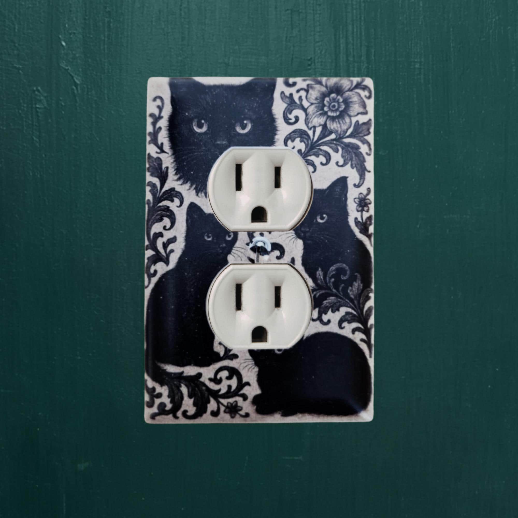 Black Cat Floral Outlet Cover – Vintage‑Style Decorative Switch Plate with Ornate Pattern for Gothic, Cottage, or Retro Home Decor