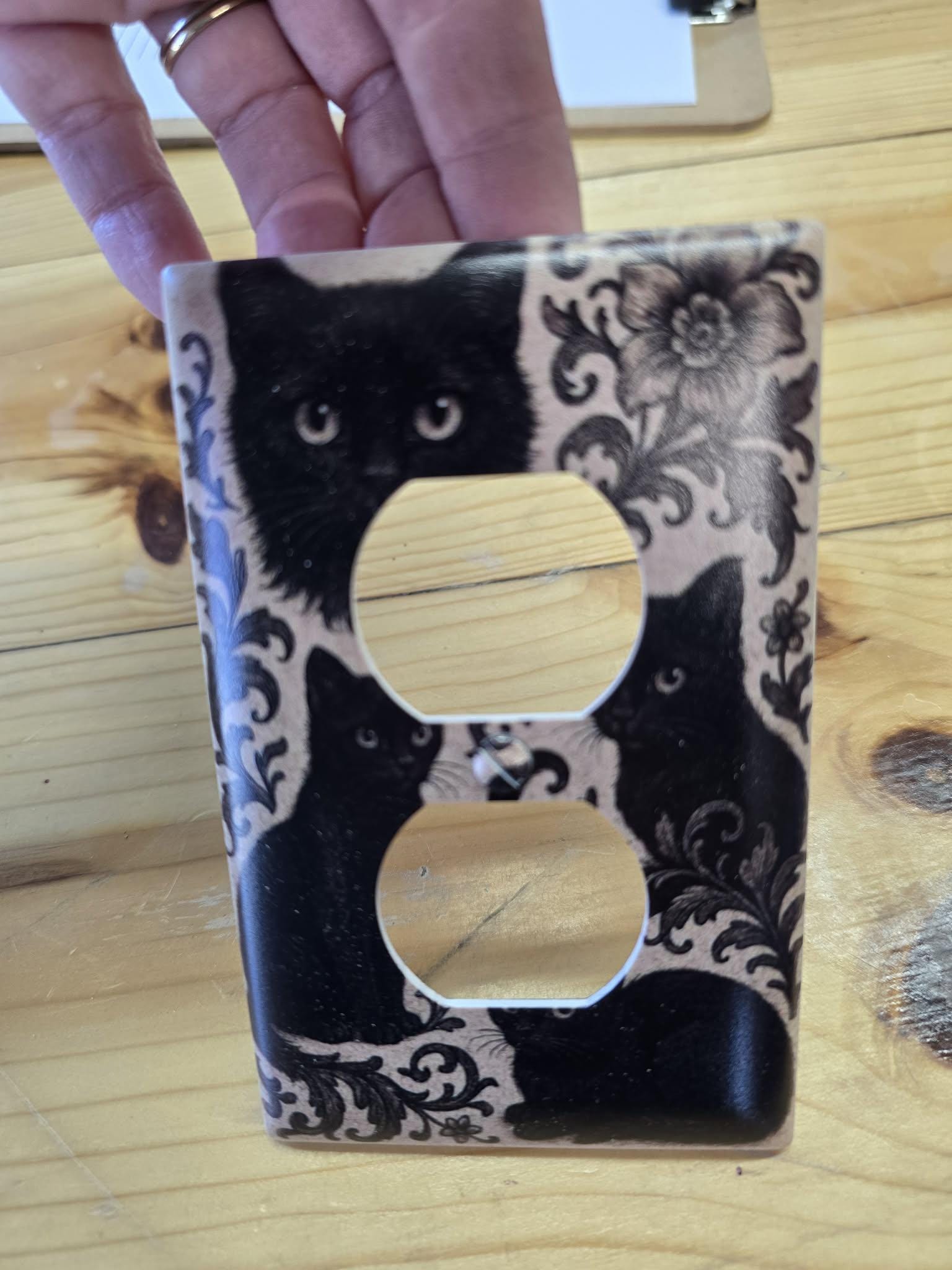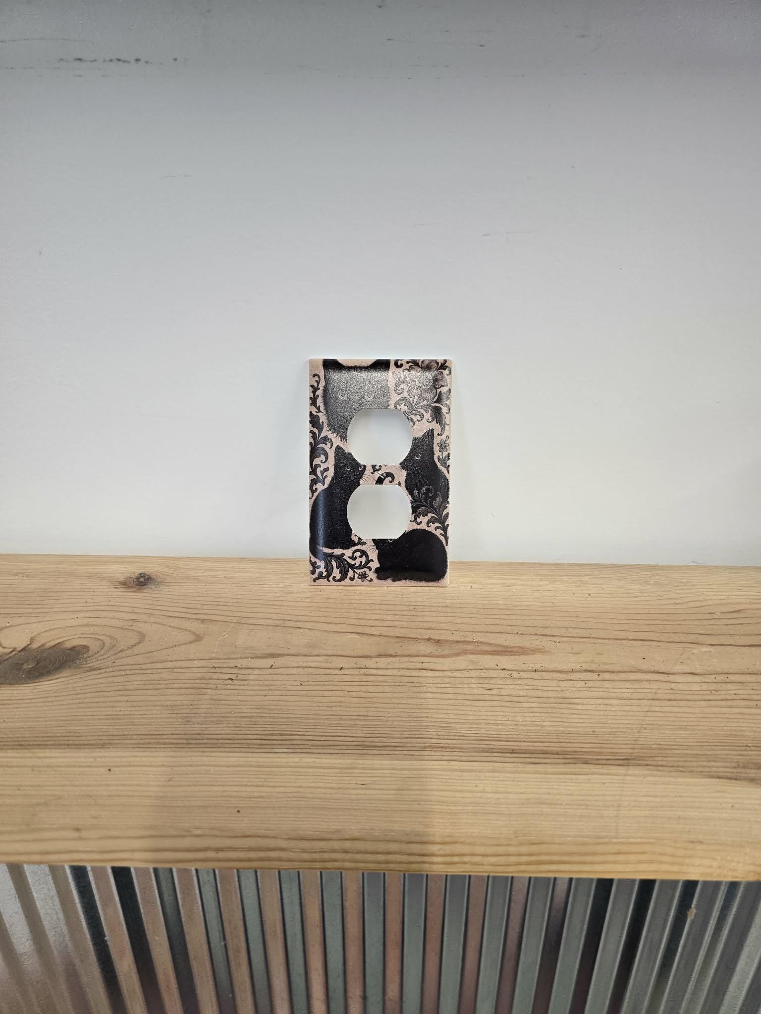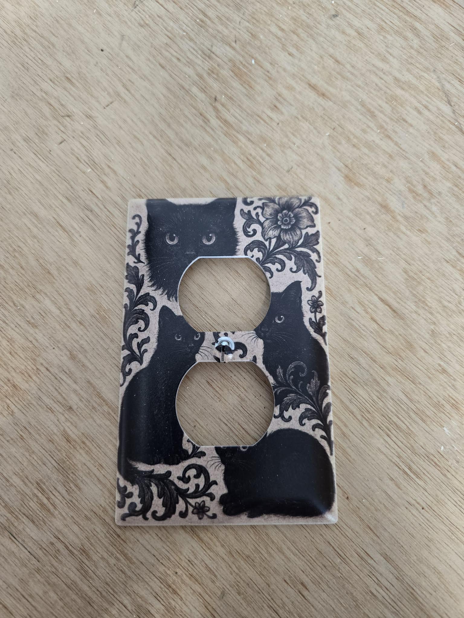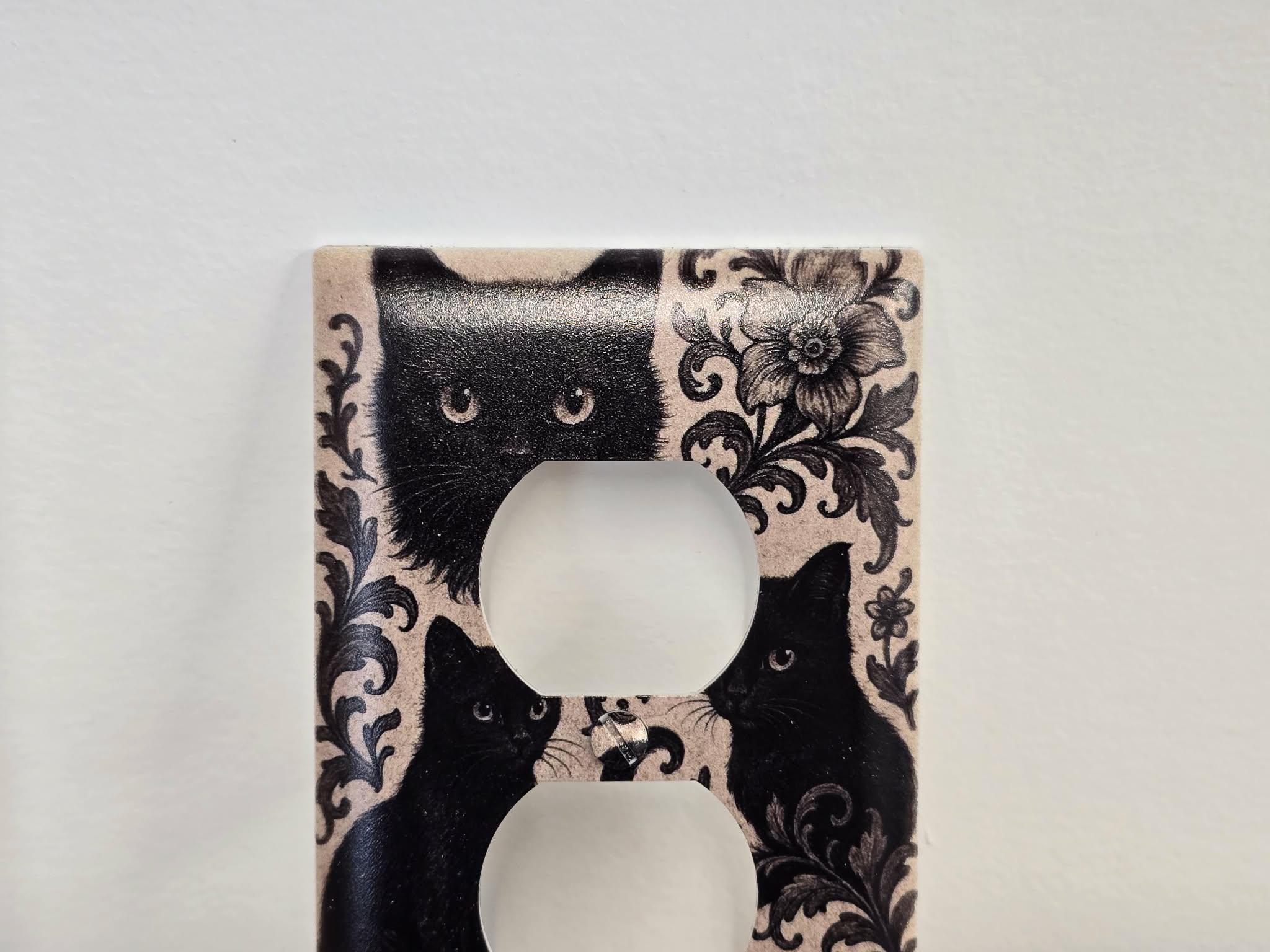 Black Cat Floral Outlet Cover – Vintage‑Style Decorative Switch Plate with Ornate Pattern for Gothic, Cottage, or Retro Home Decor