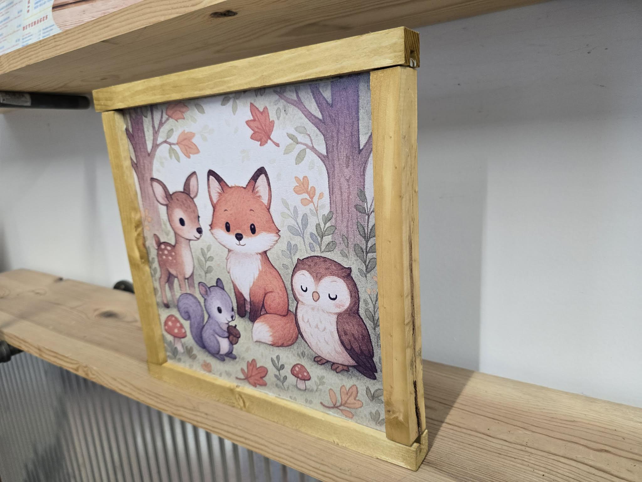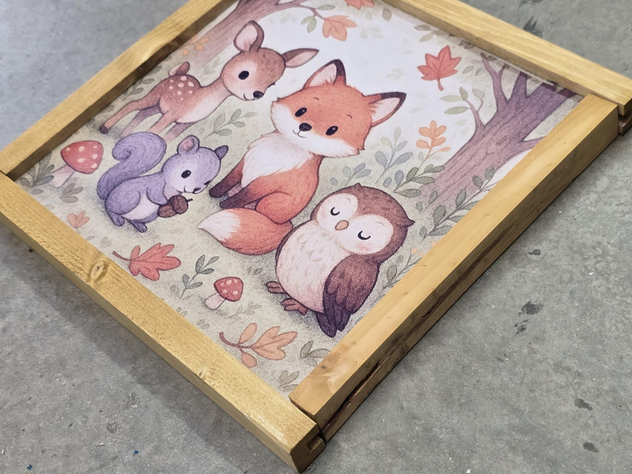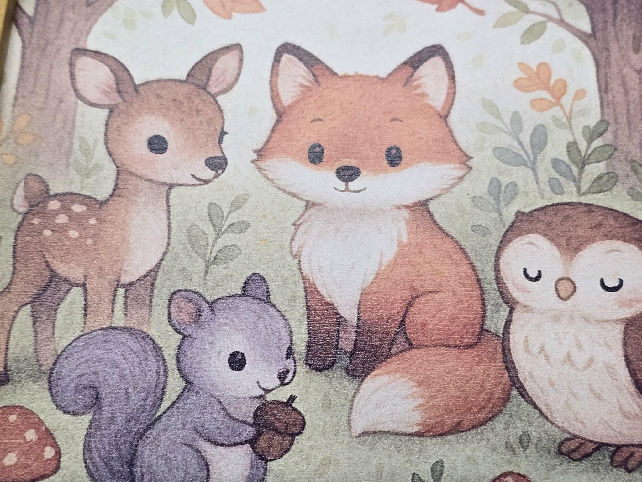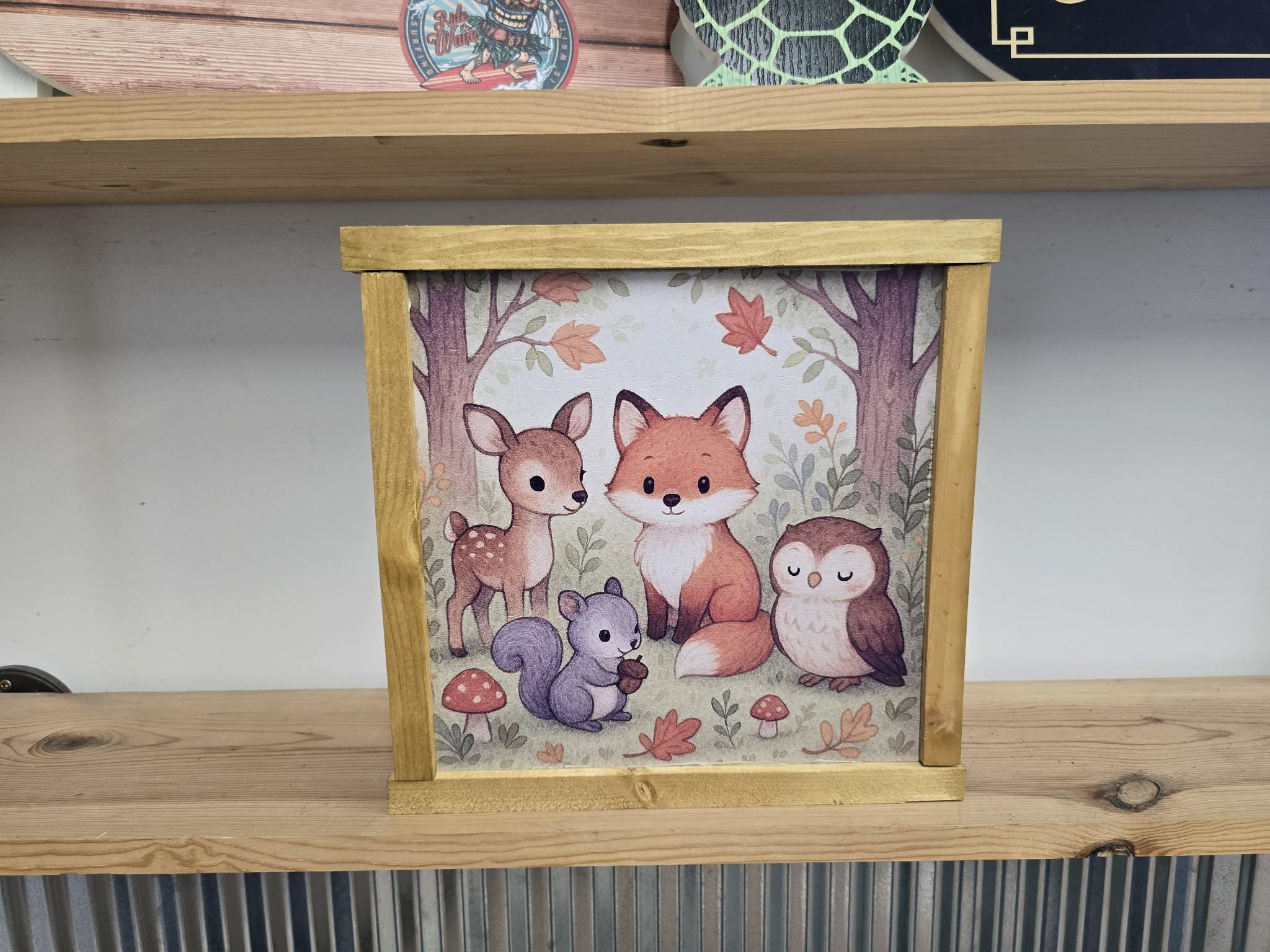 Pastel Woodland Animal Sign – Cute Deer, Fox, Squirrel, and Owl Illustration for Sweet Nursery, Playroom, or Cottage Kids’ Room Decor