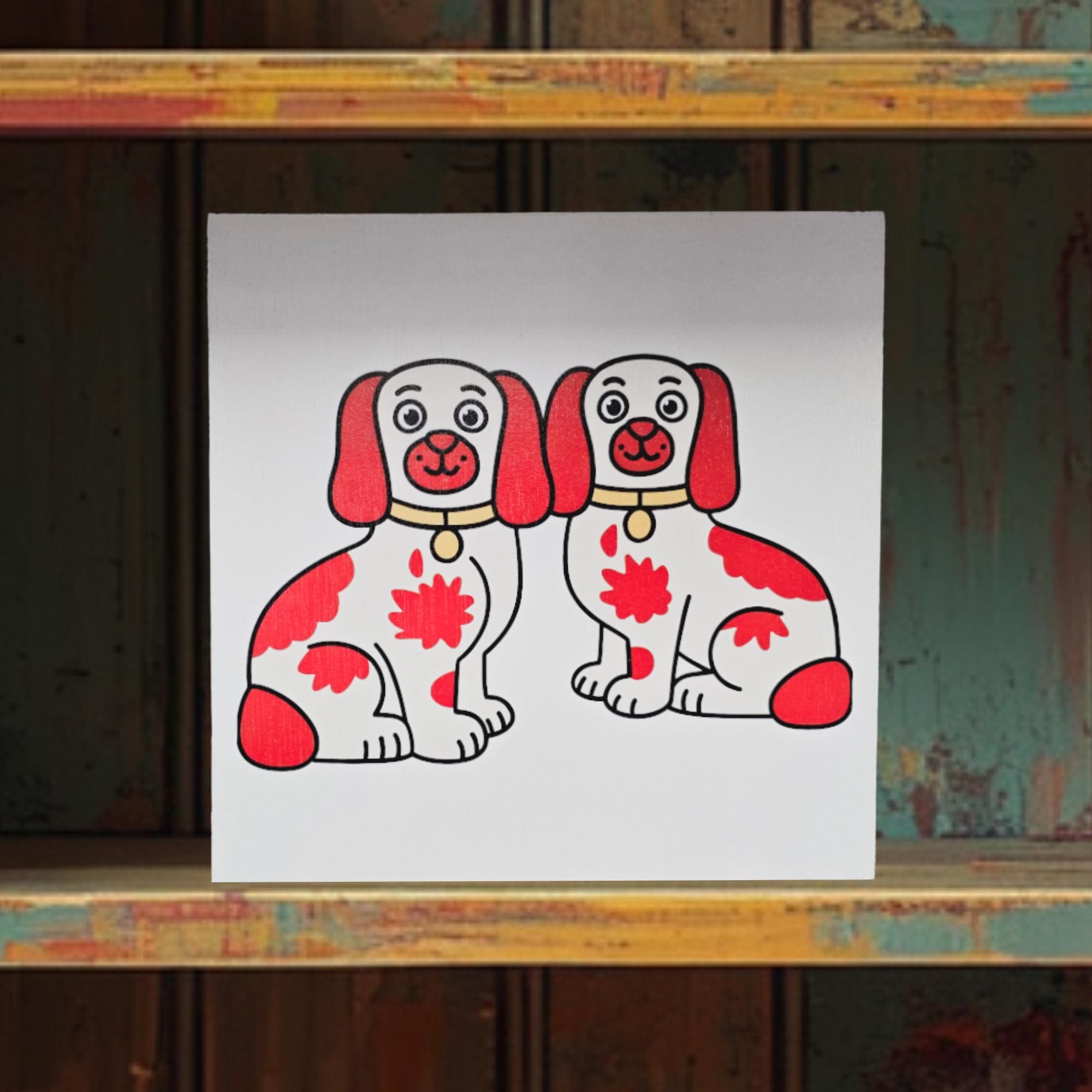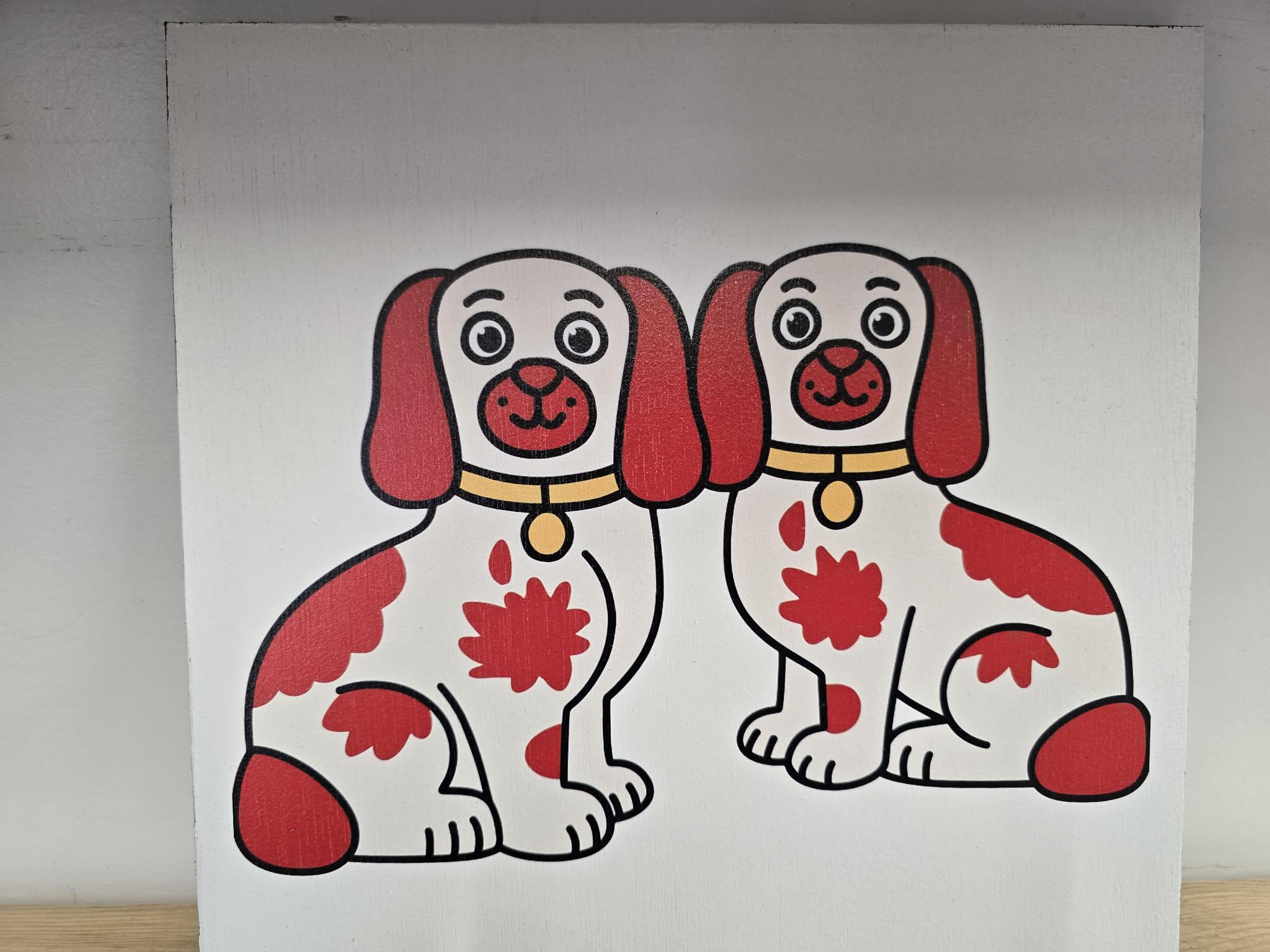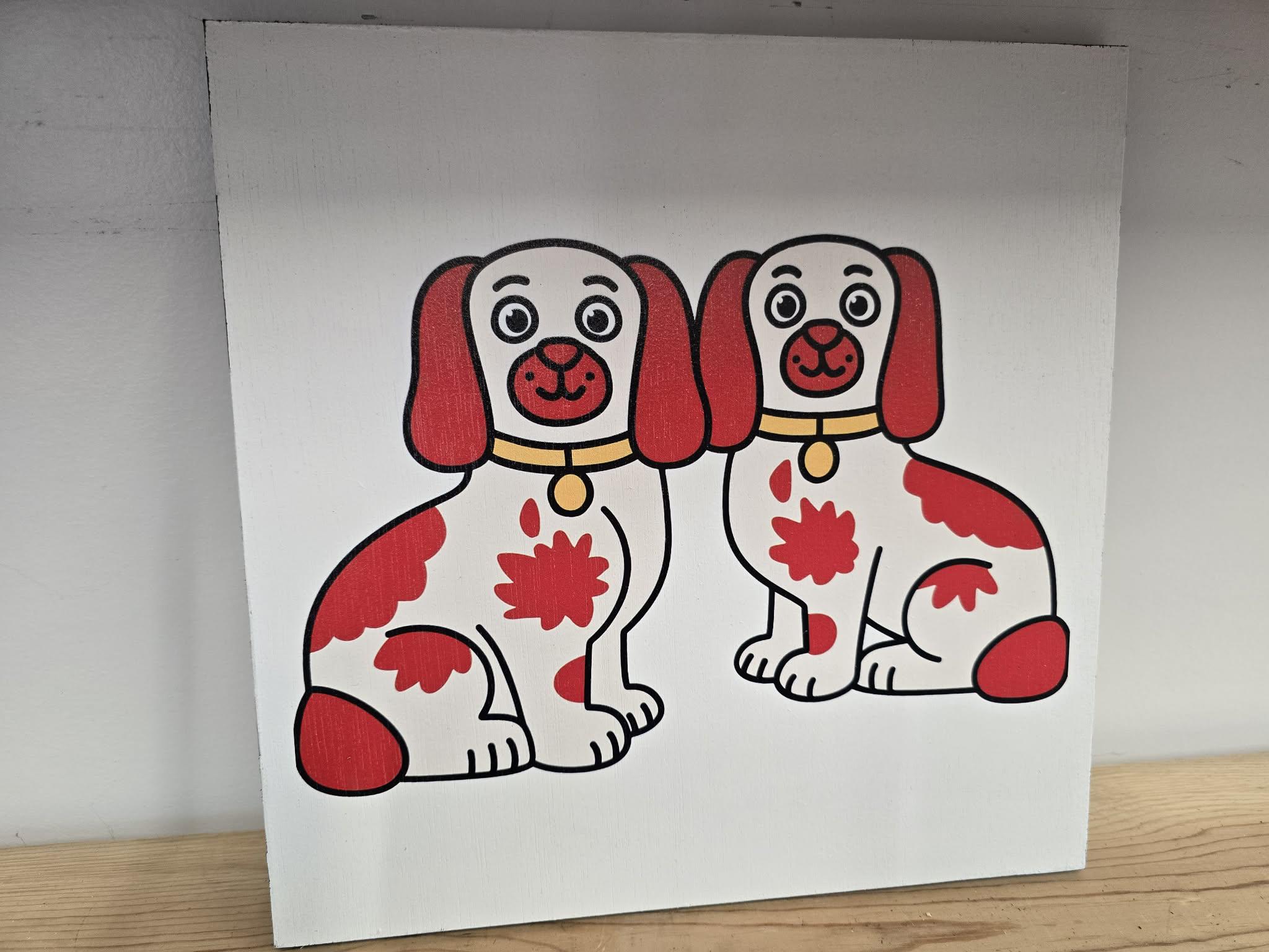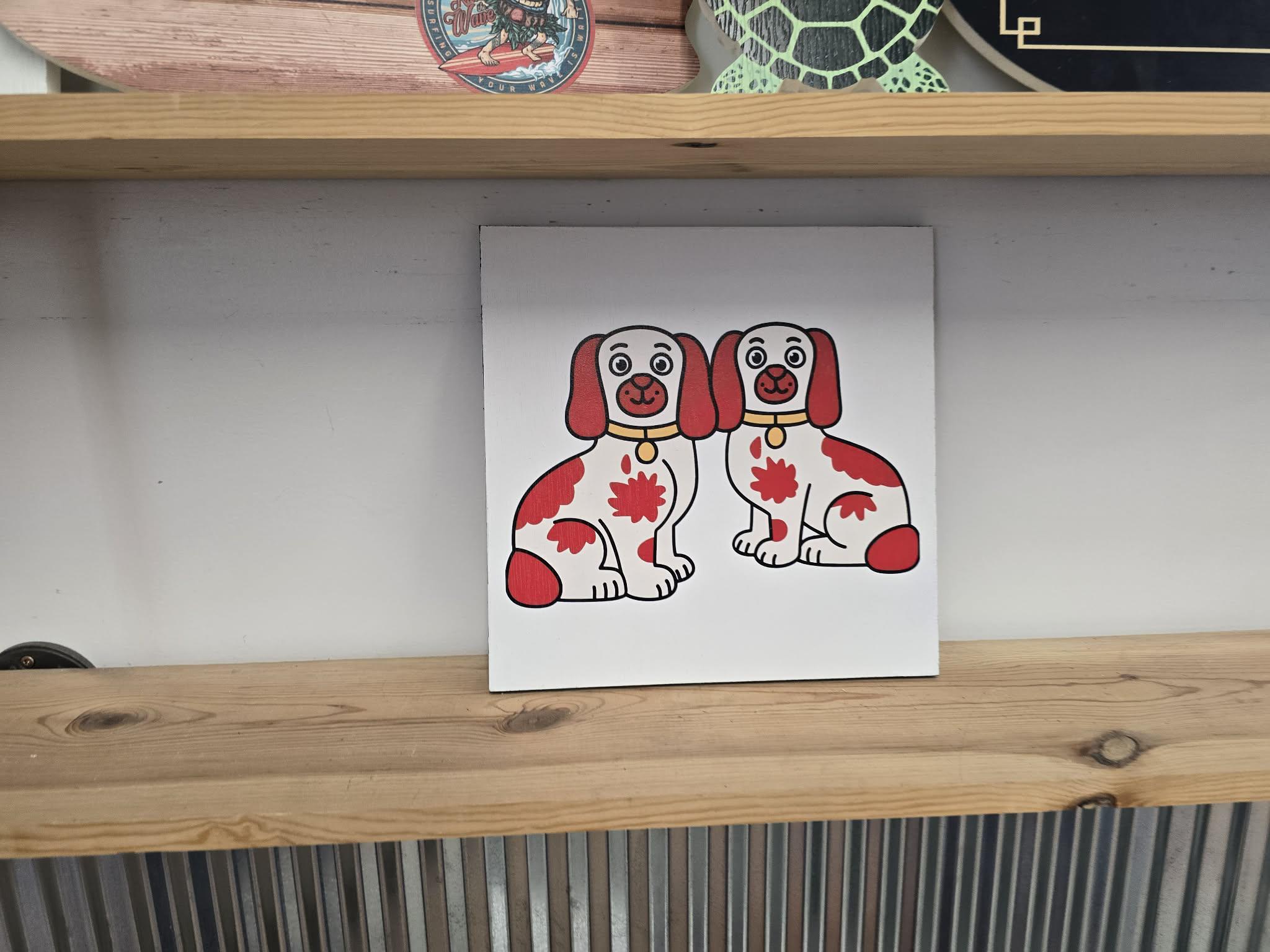 Staffordshire Dog Pair Sign – Cute Red‑Patch Twin Dogs Illustration for Vintage, Cottage, or Eclectic Home Decor