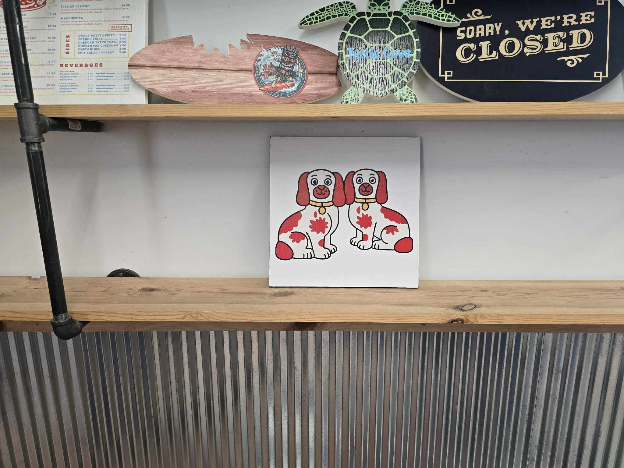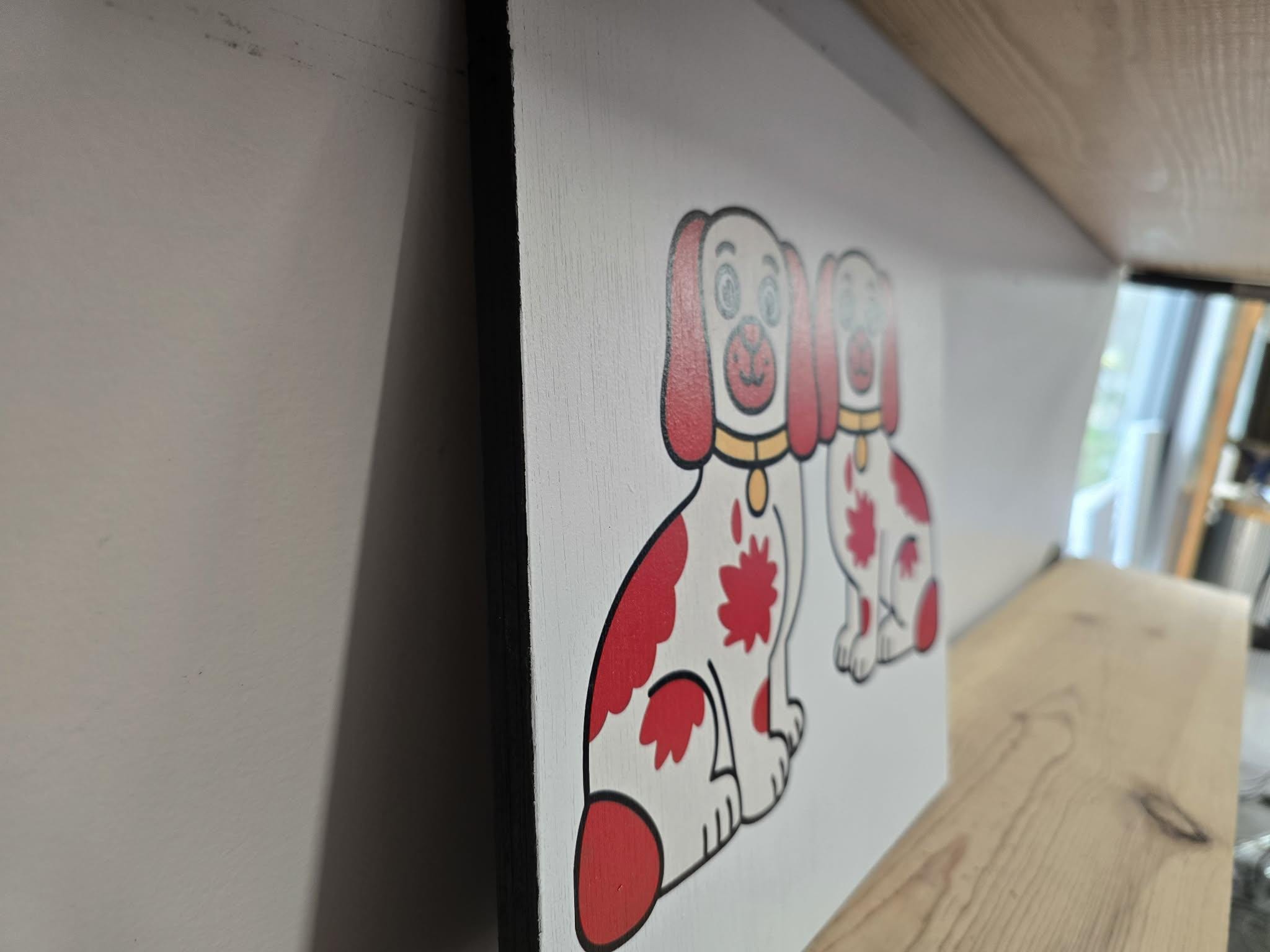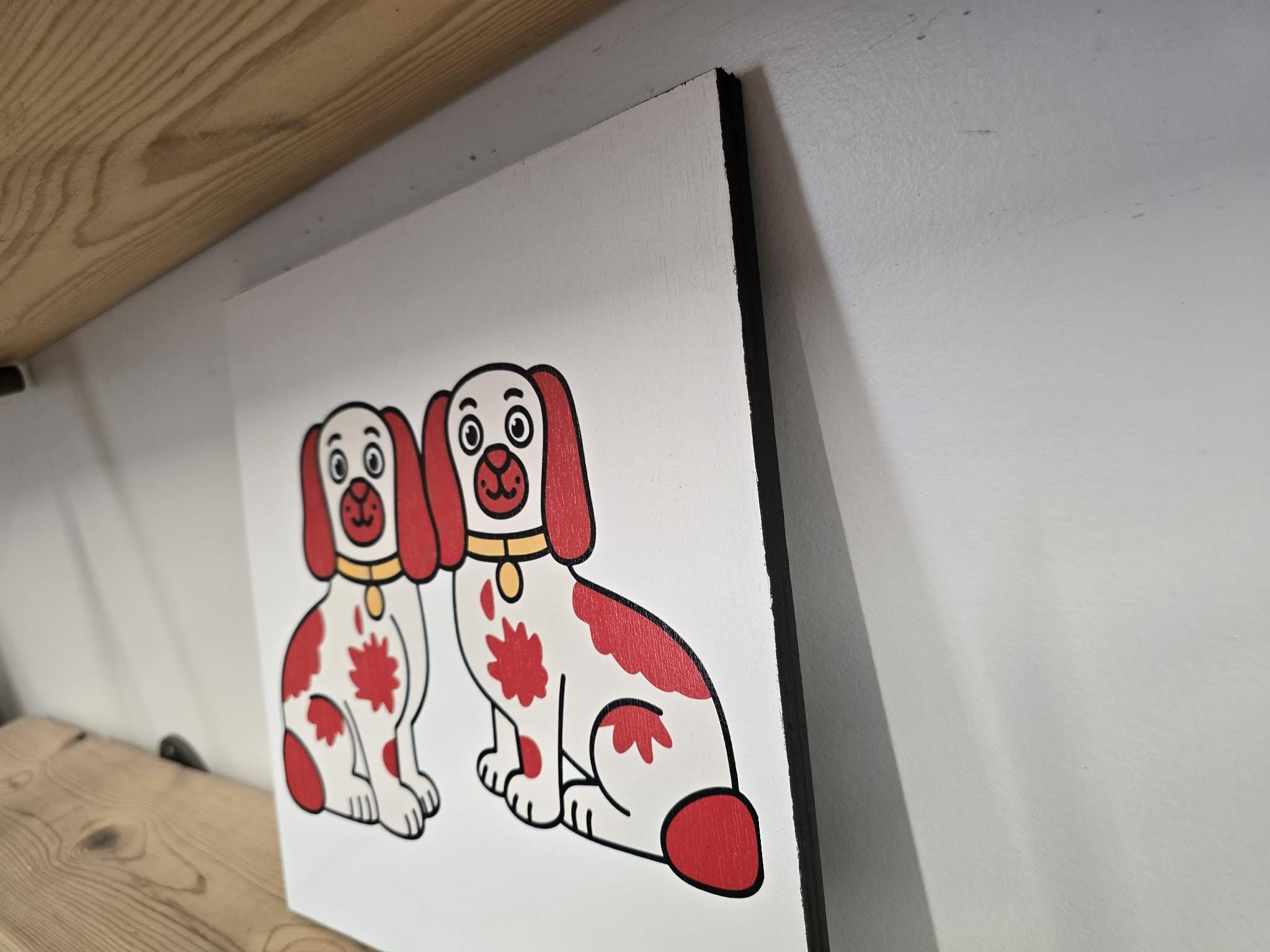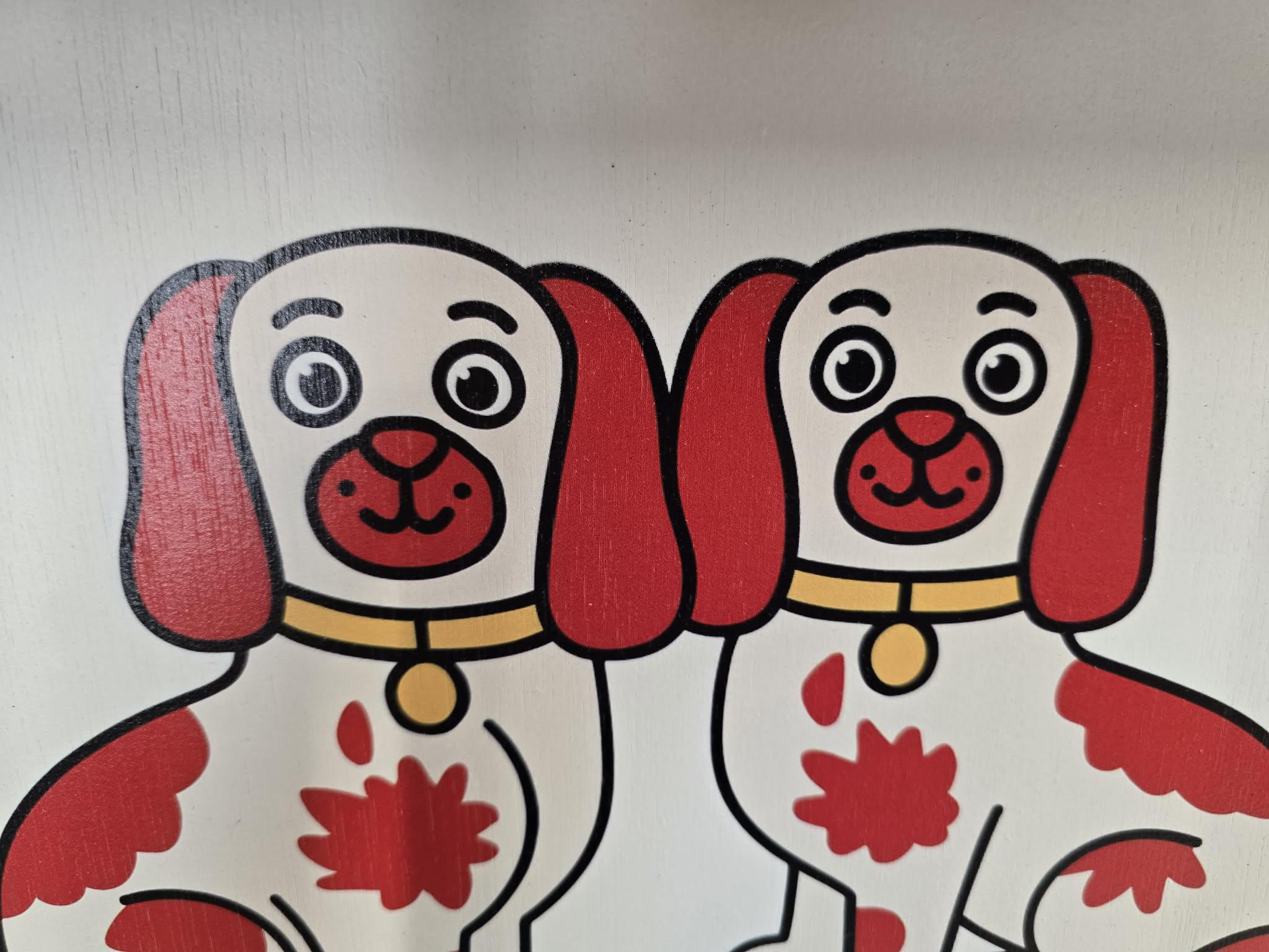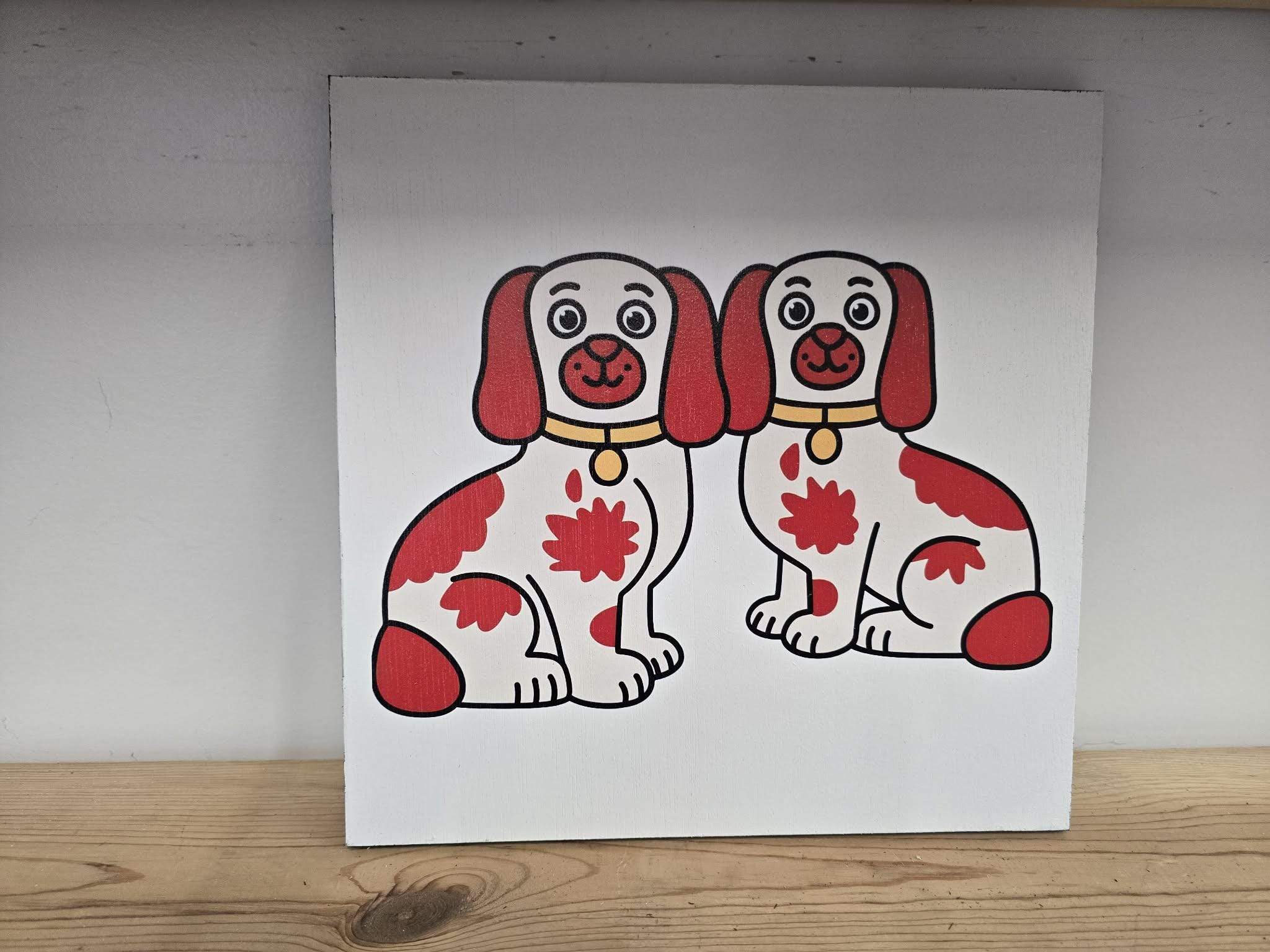 Staffordshire Dog Pair Sign – Cute Red‑Patch Twin Dogs Illustration for Vintage, Cottage, or Eclectic Home Decor
