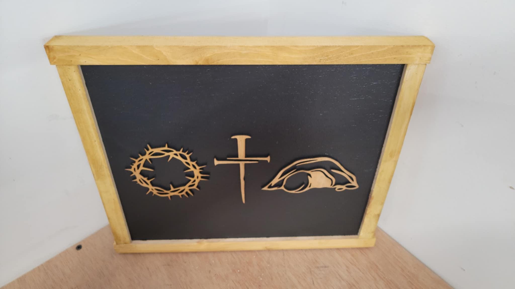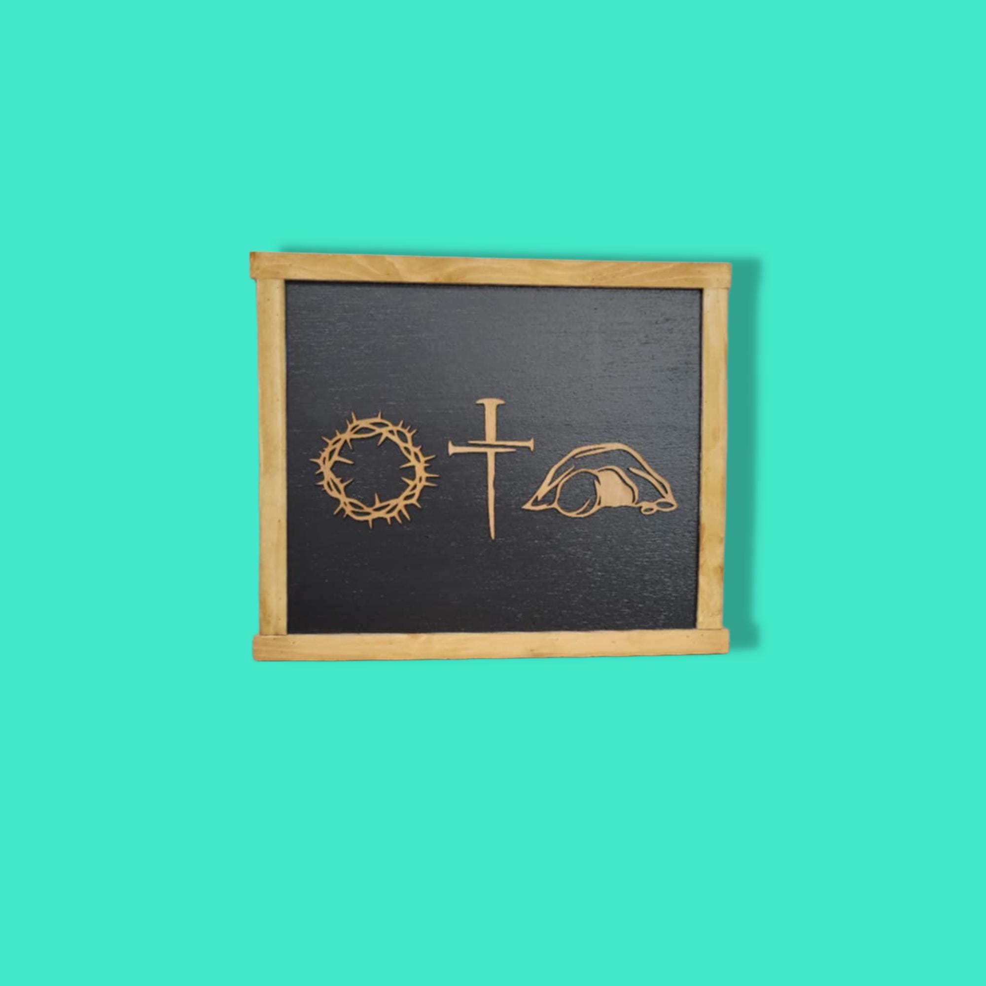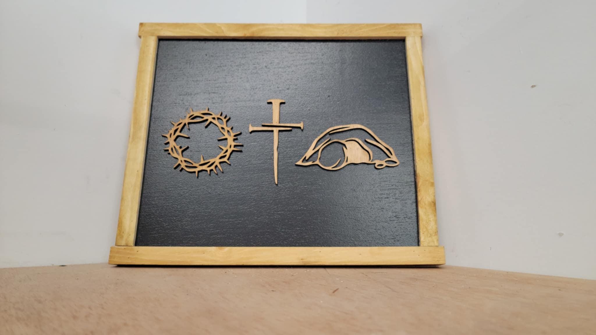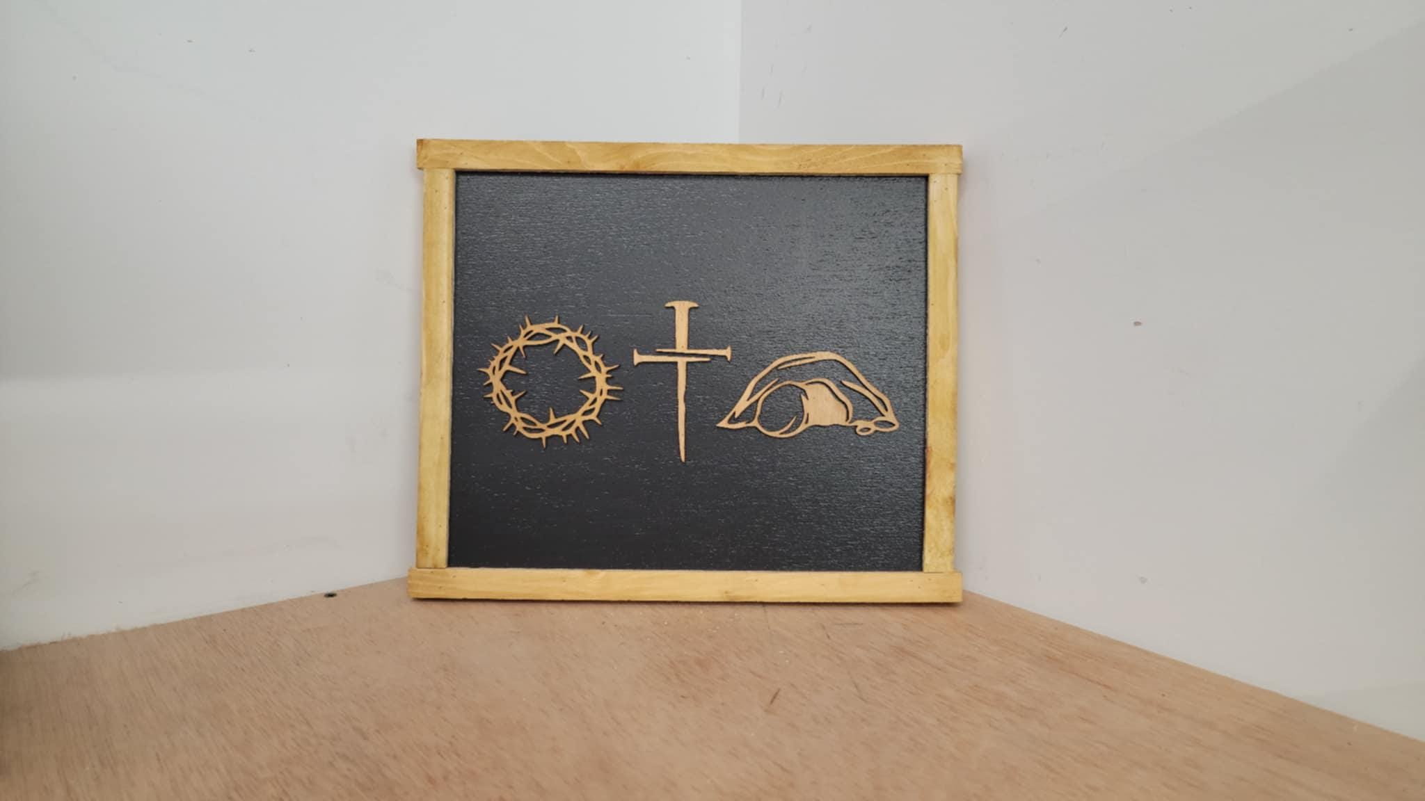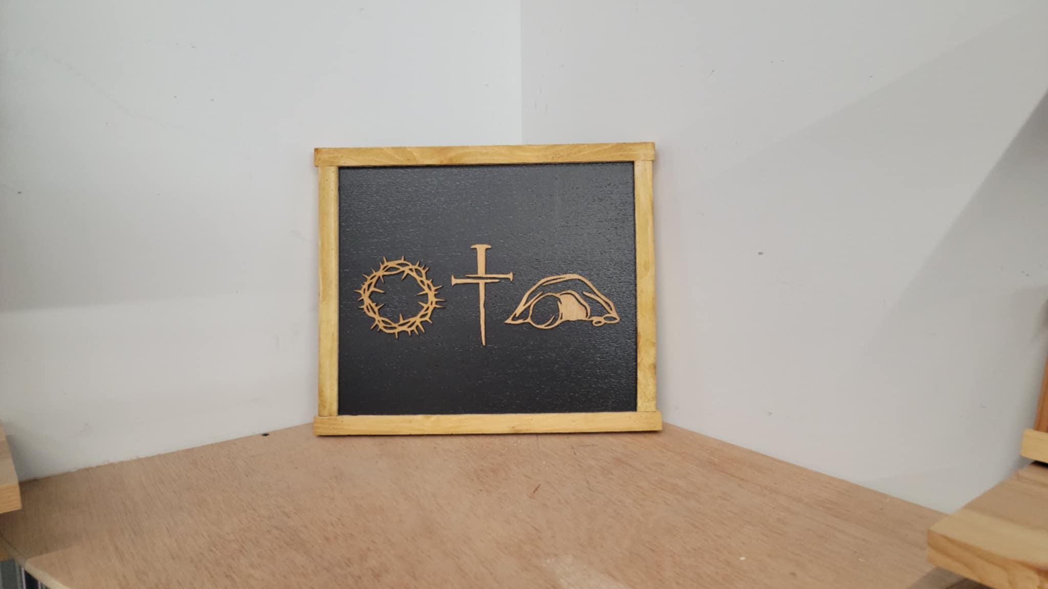 3D Christian Symbol Sign • Raised Crown Cross Tomb Decor • Rustic Faith Wall Art • Easter Resurrection Wood Sign