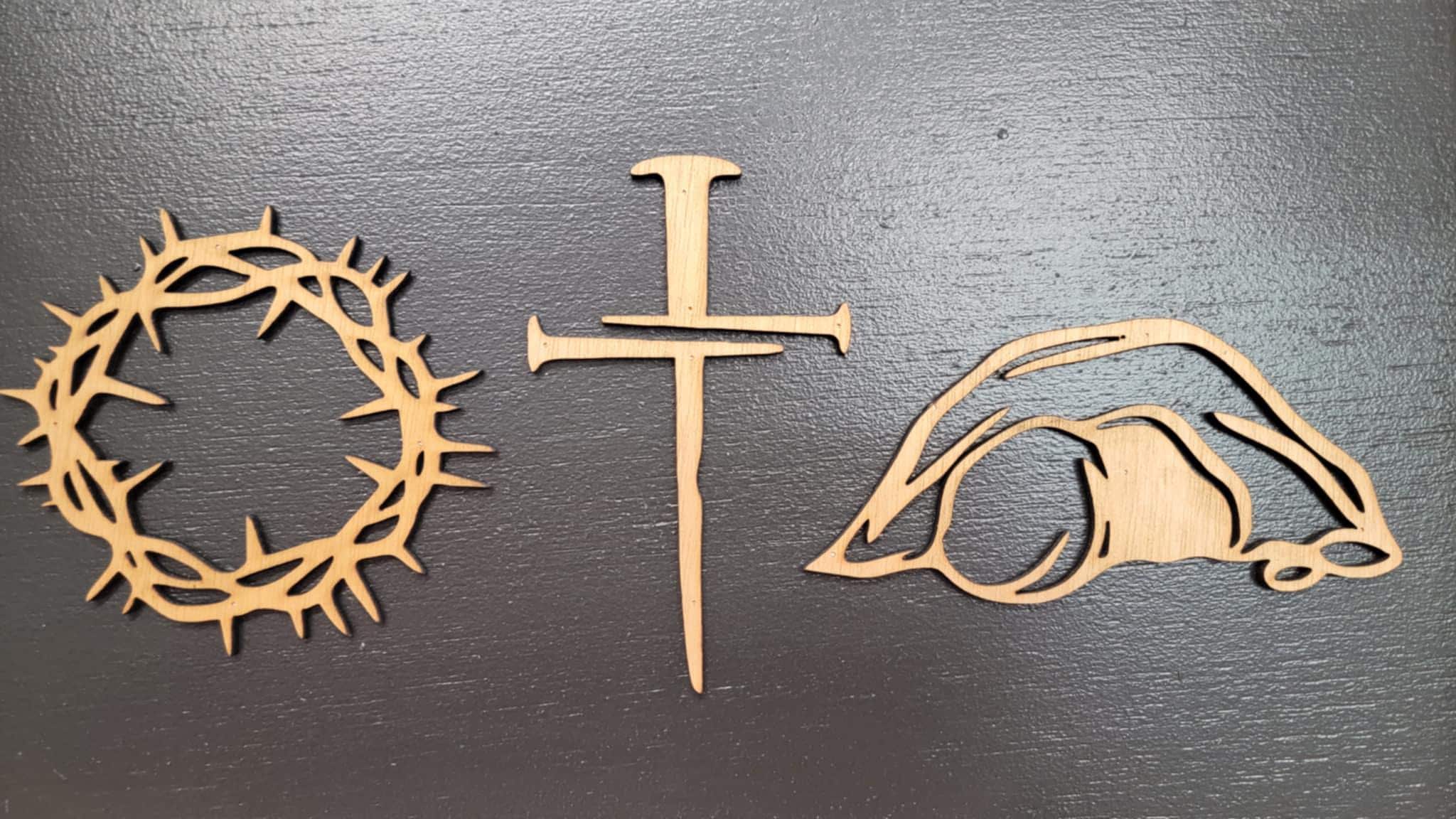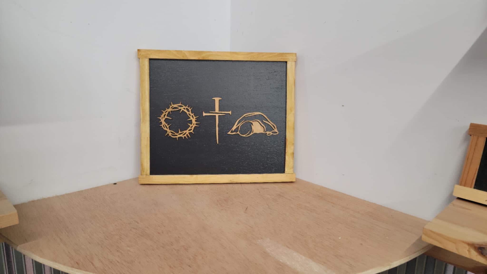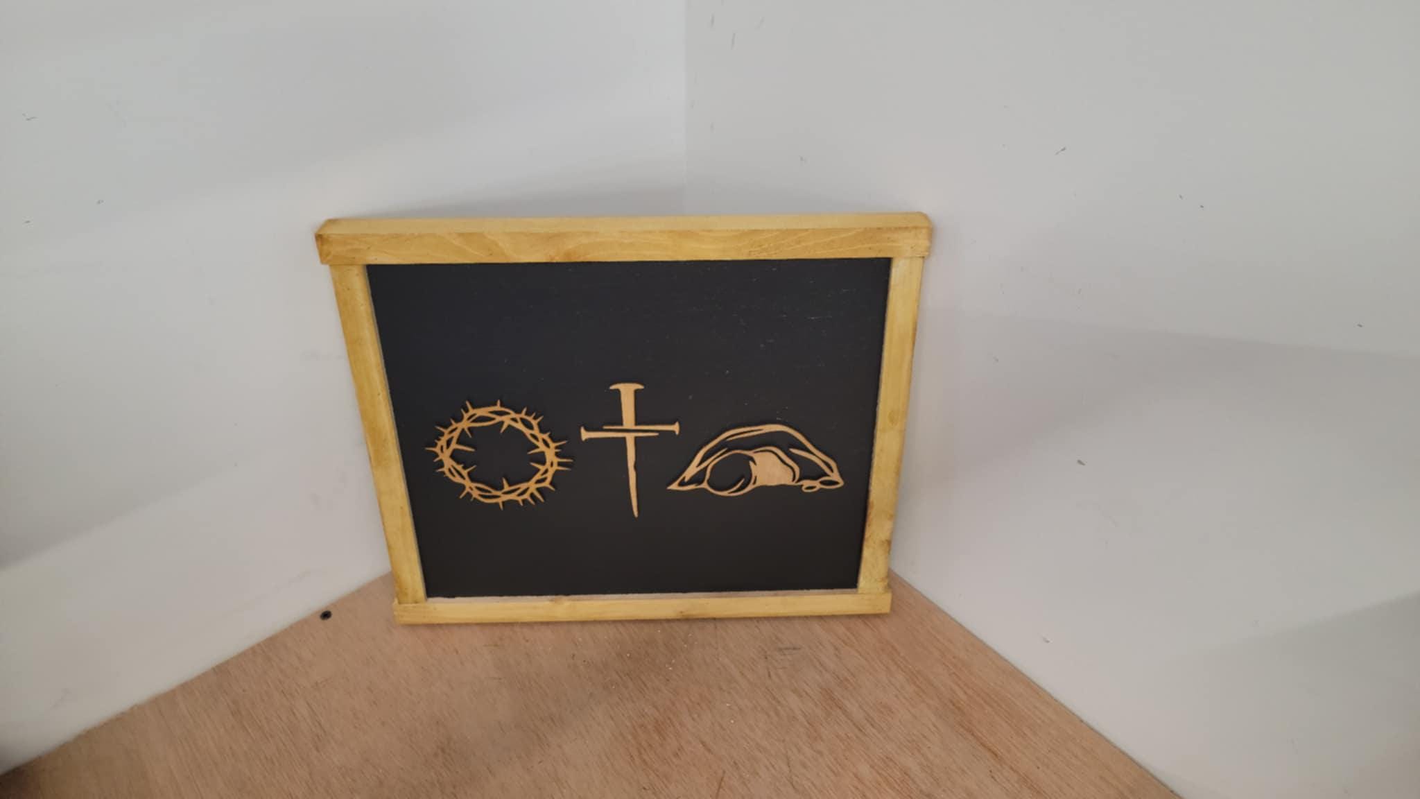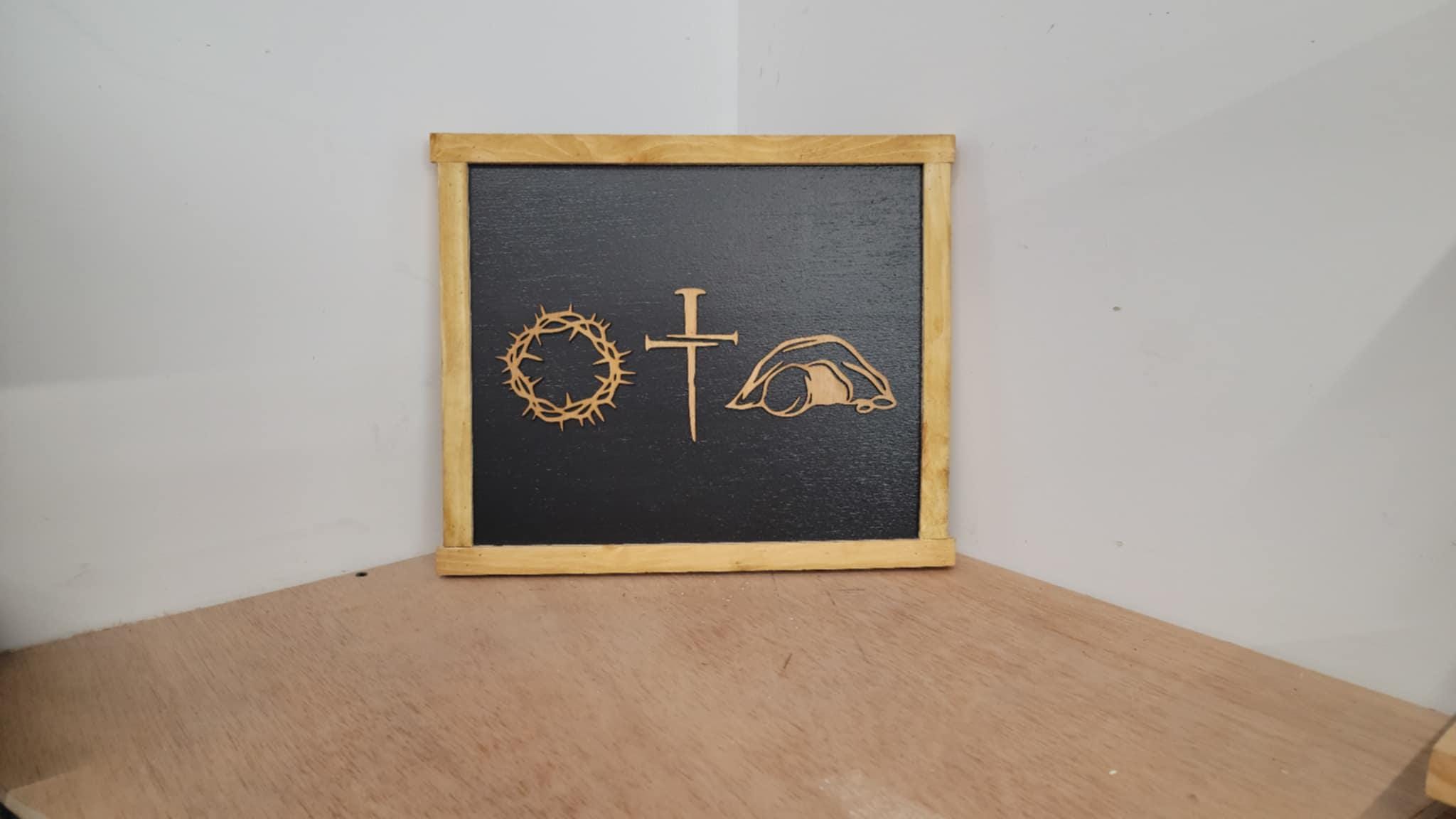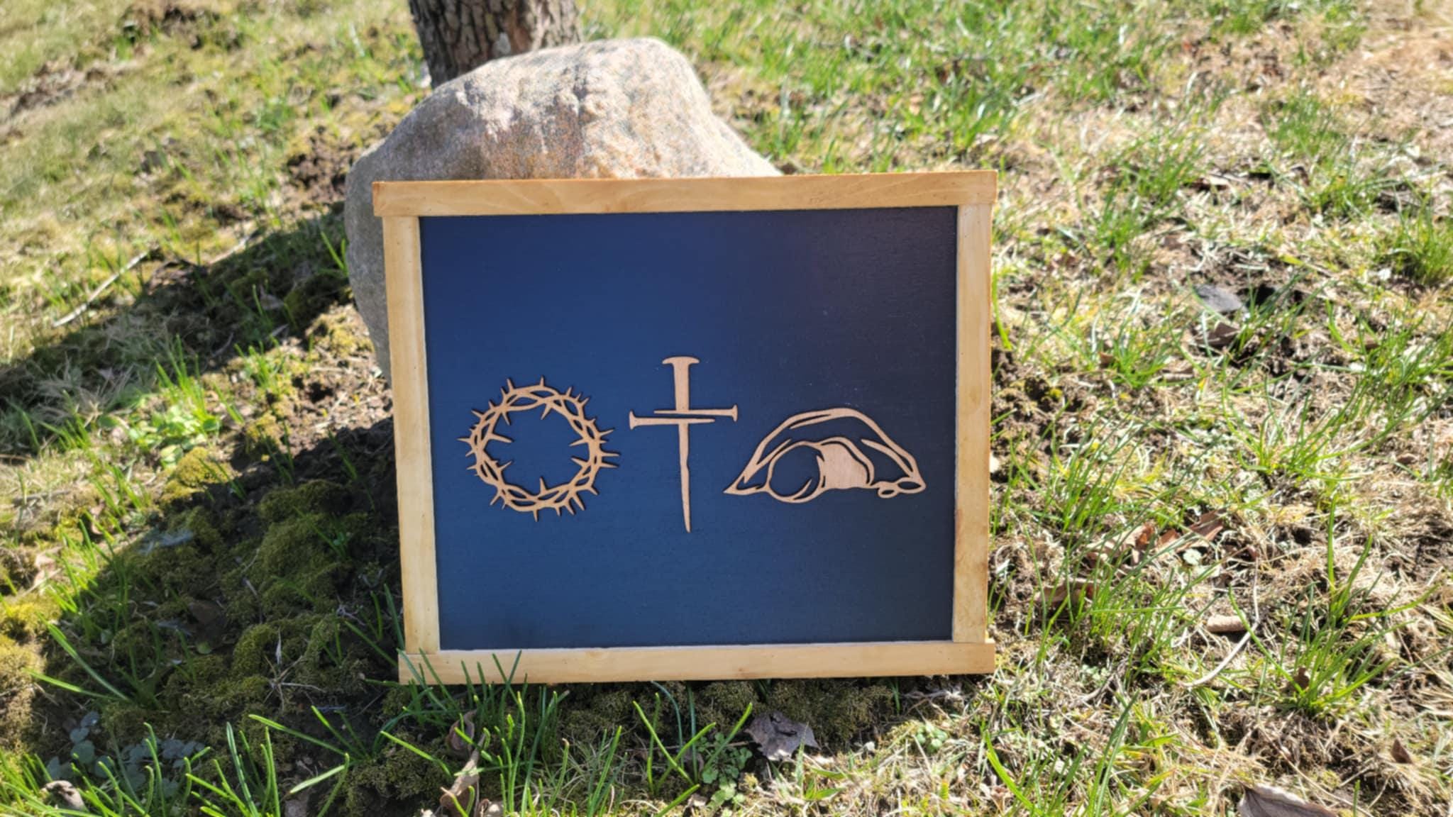 3D Christian Symbol Sign • Raised Crown Cross Tomb Decor • Rustic Faith Wall Art • Easter Resurrection Wood Sign