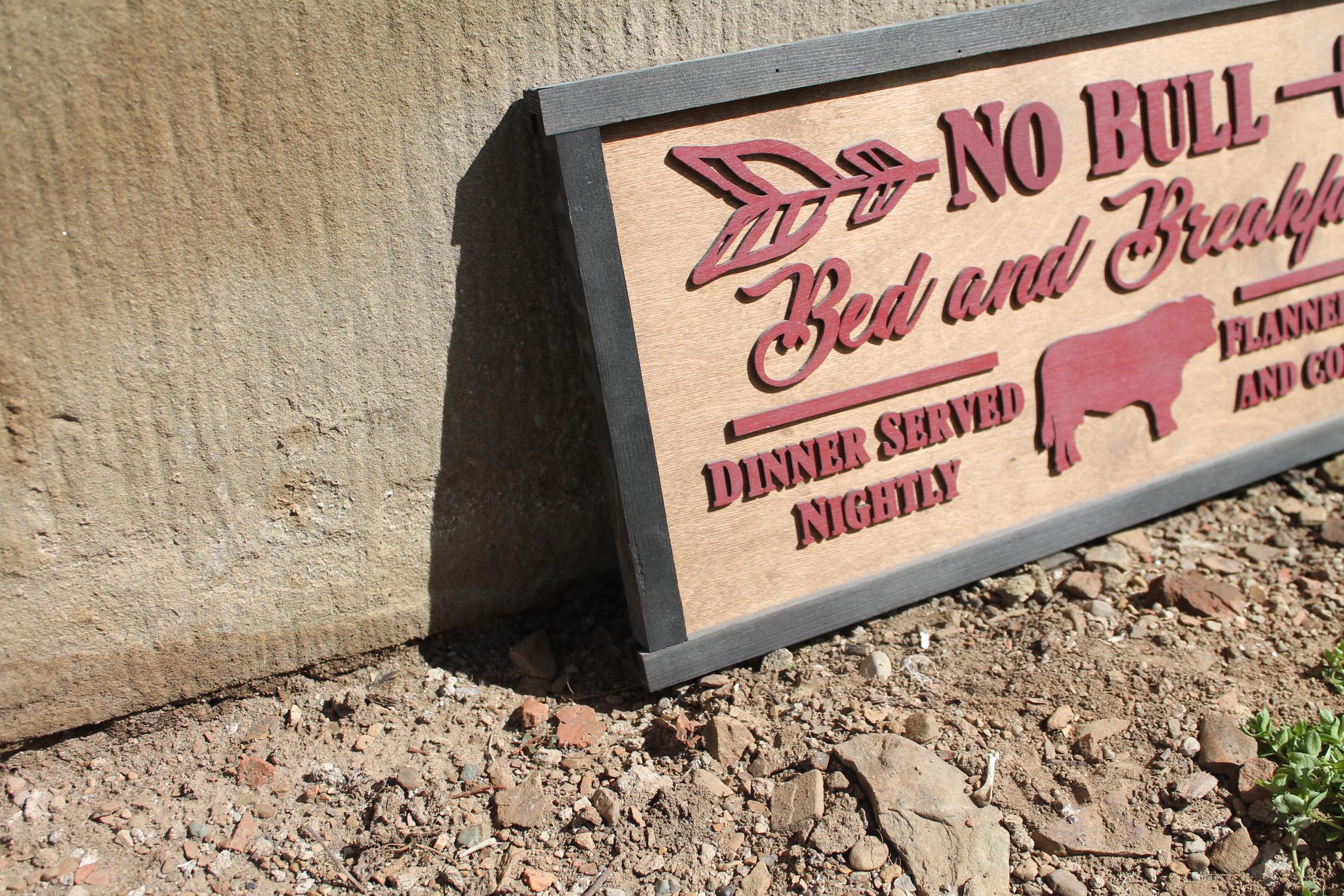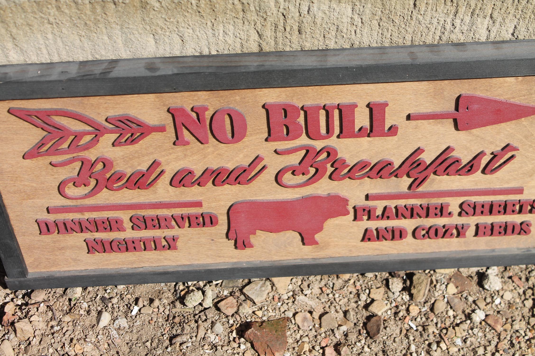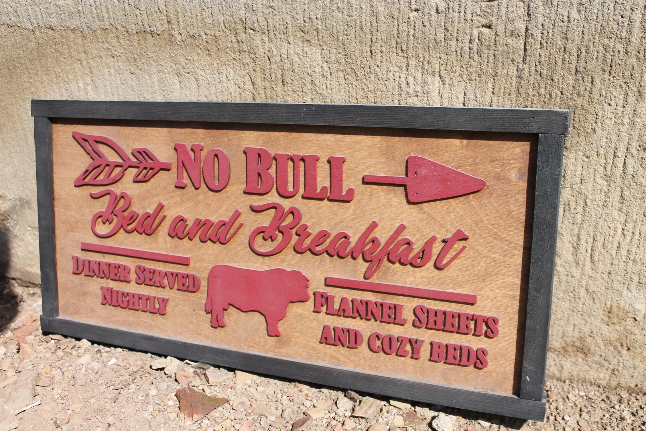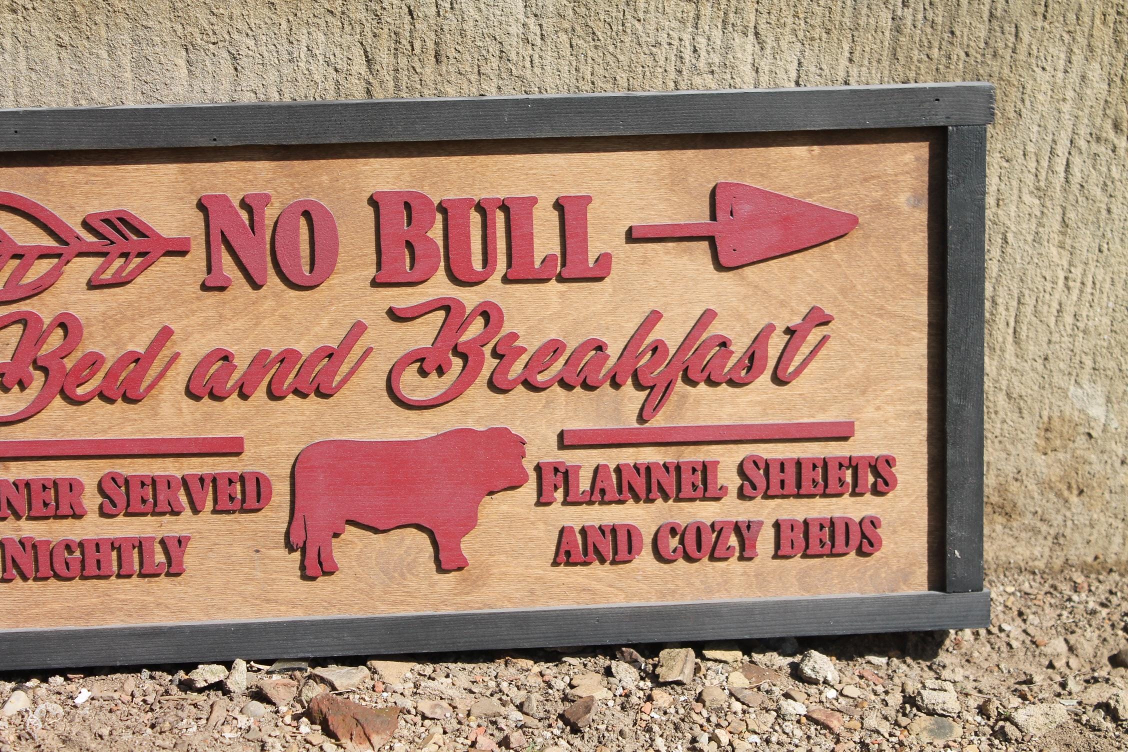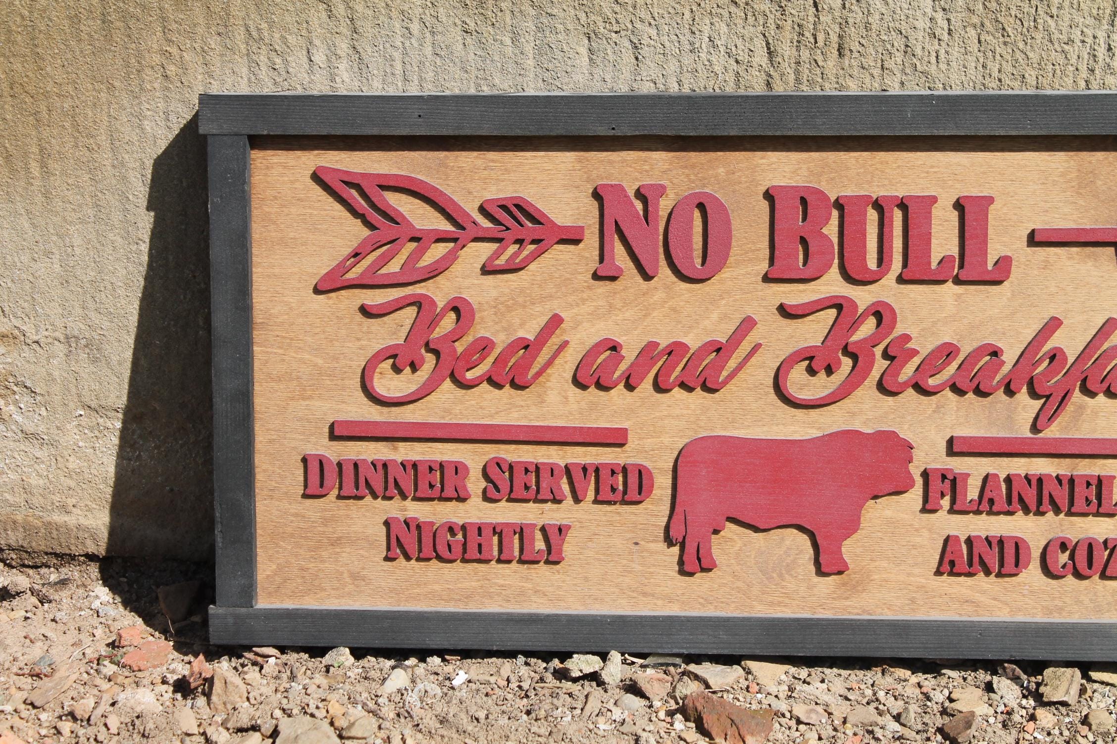 3D Western Vintage Sign • Raised “No Bull Bed & Breakfast” Ranch Decor • Old West Rustic Cow Camp Wall Art