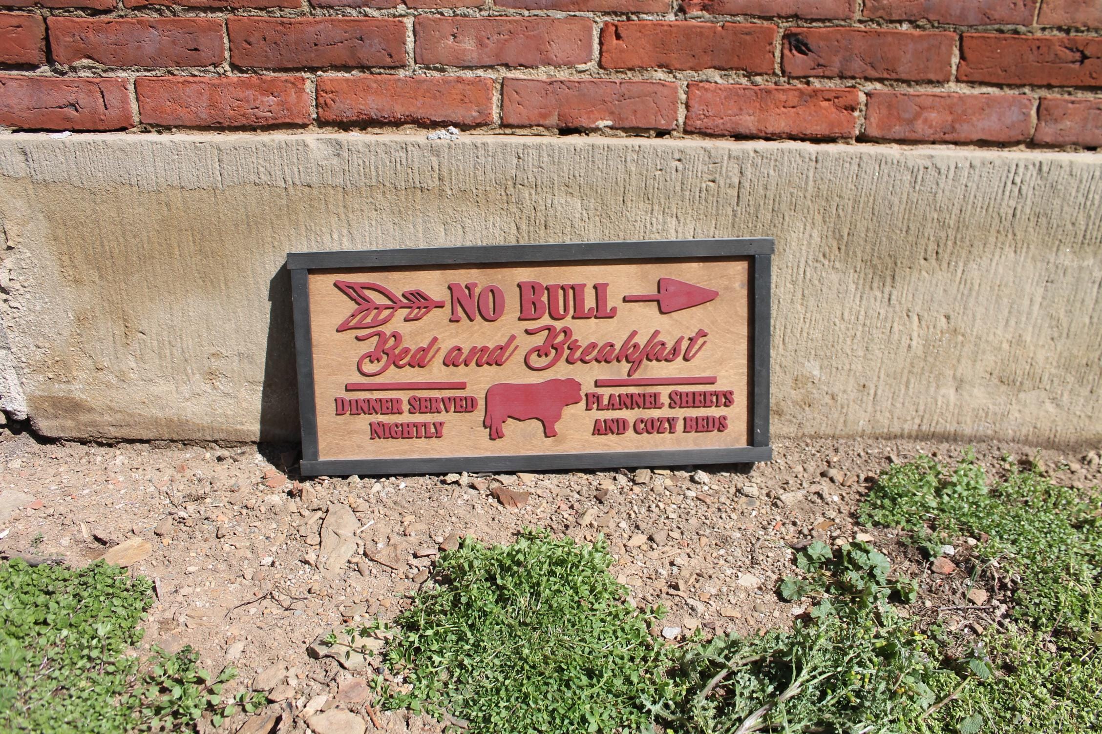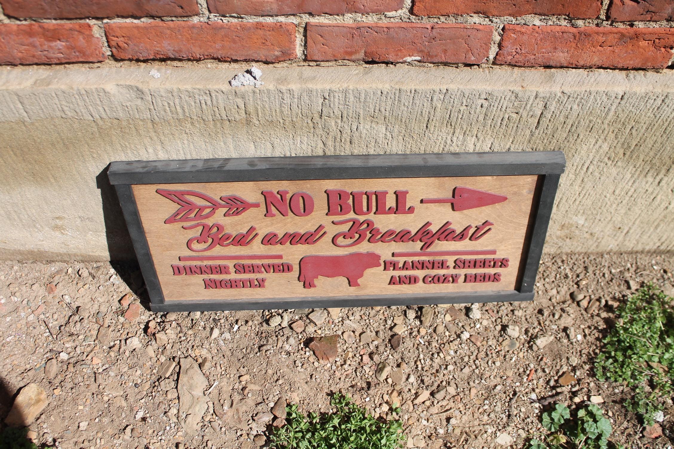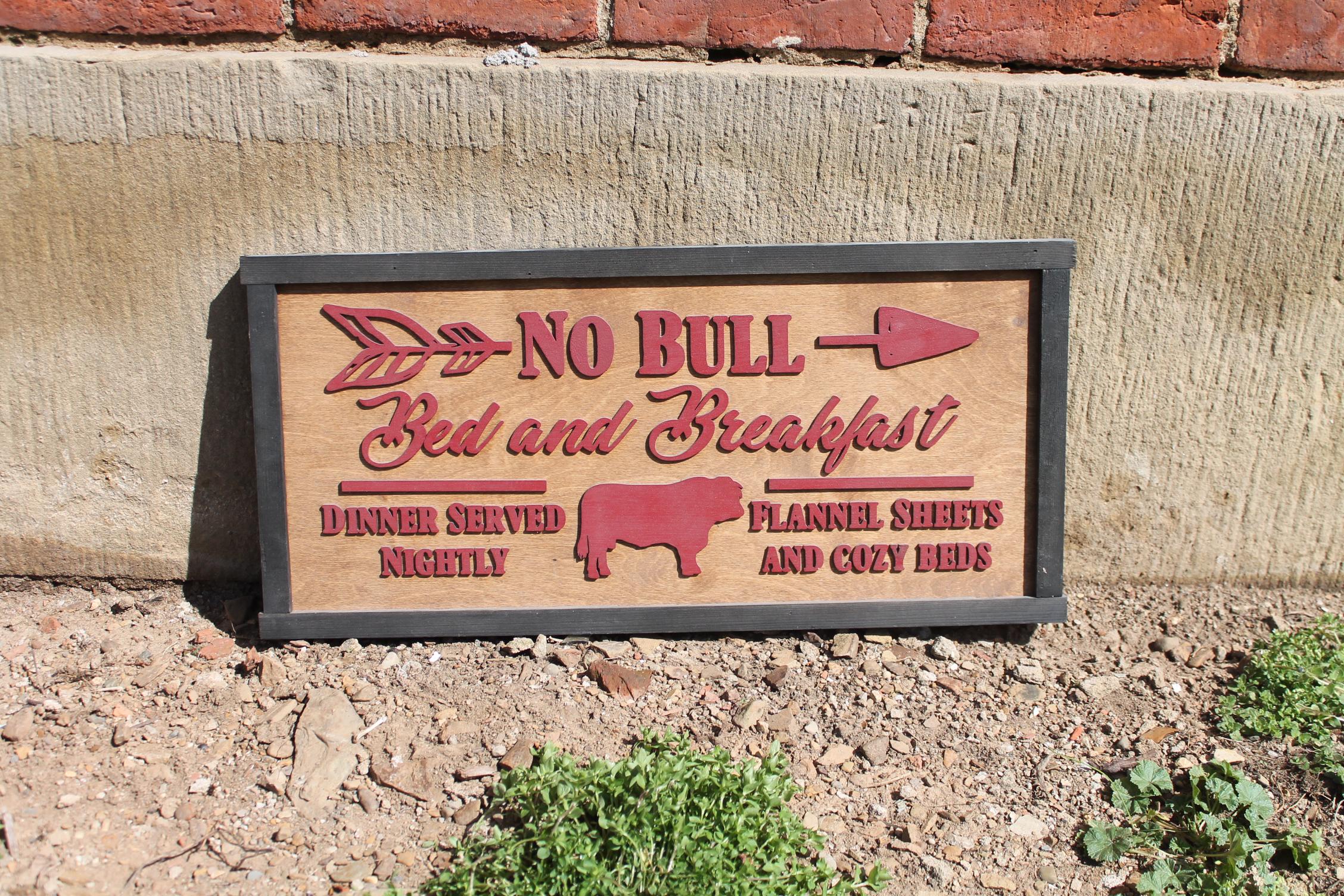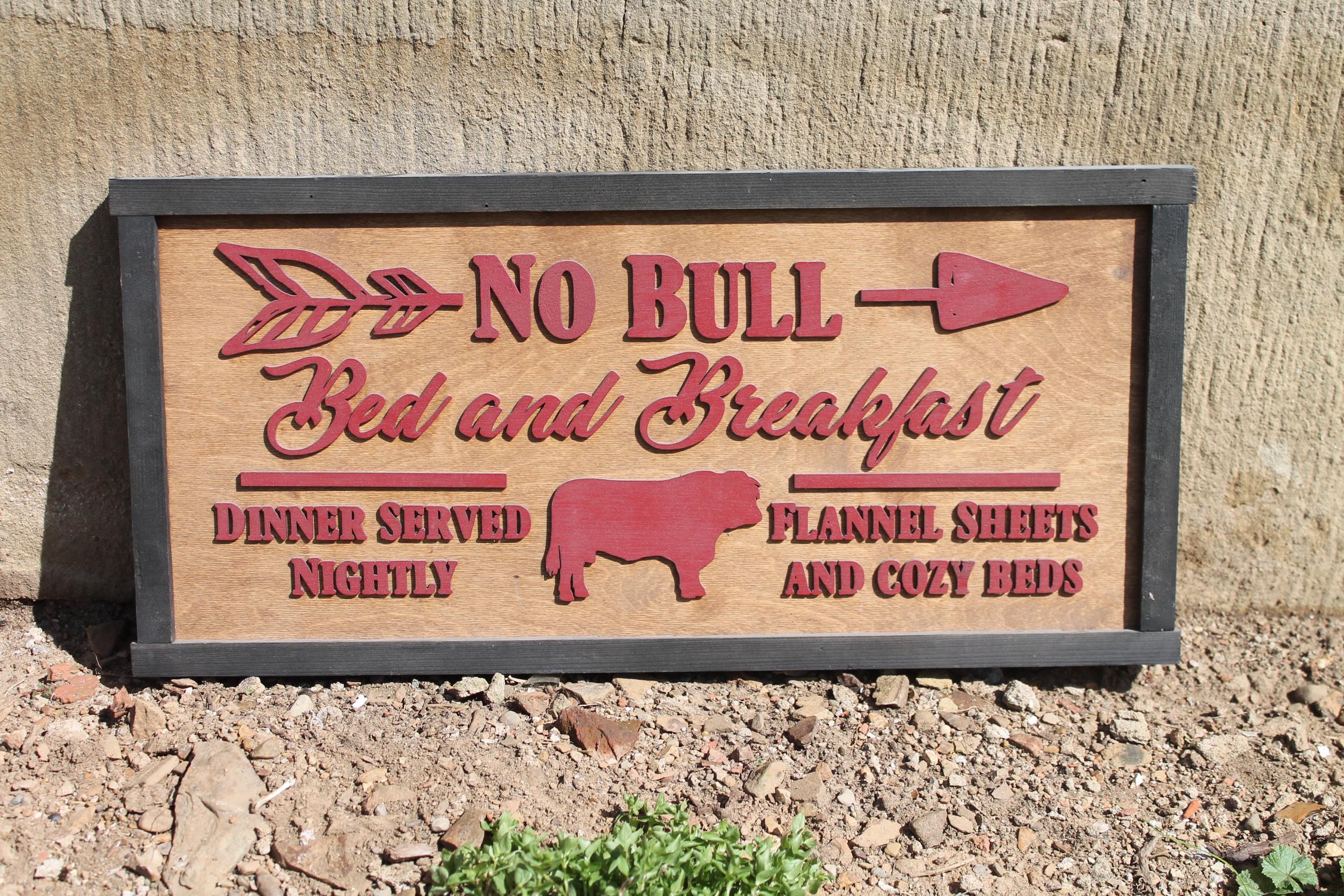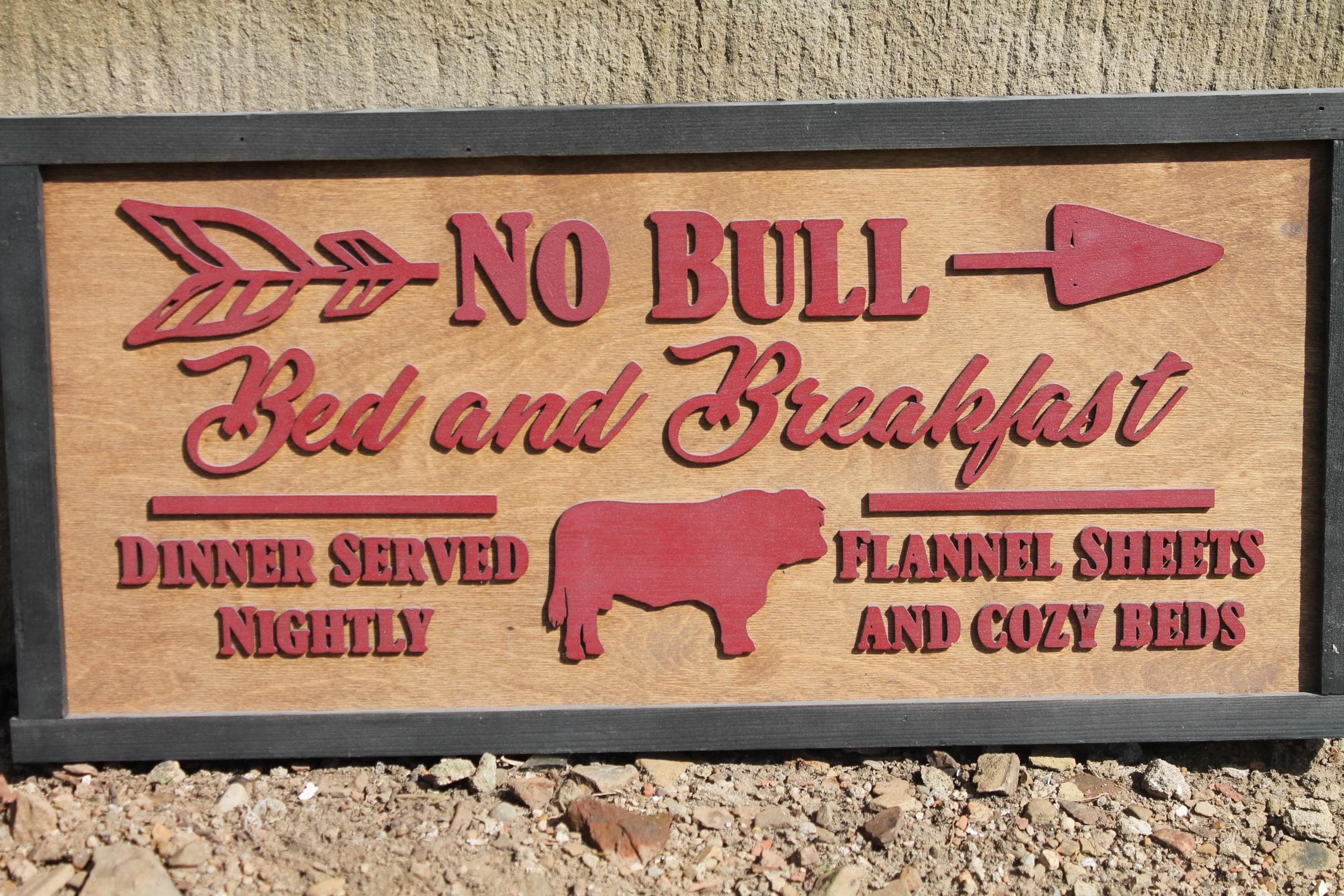 3D Western Vintage Sign • Raised “No Bull Bed & Breakfast” Ranch Decor • Old West Rustic Cow Camp Wall Art