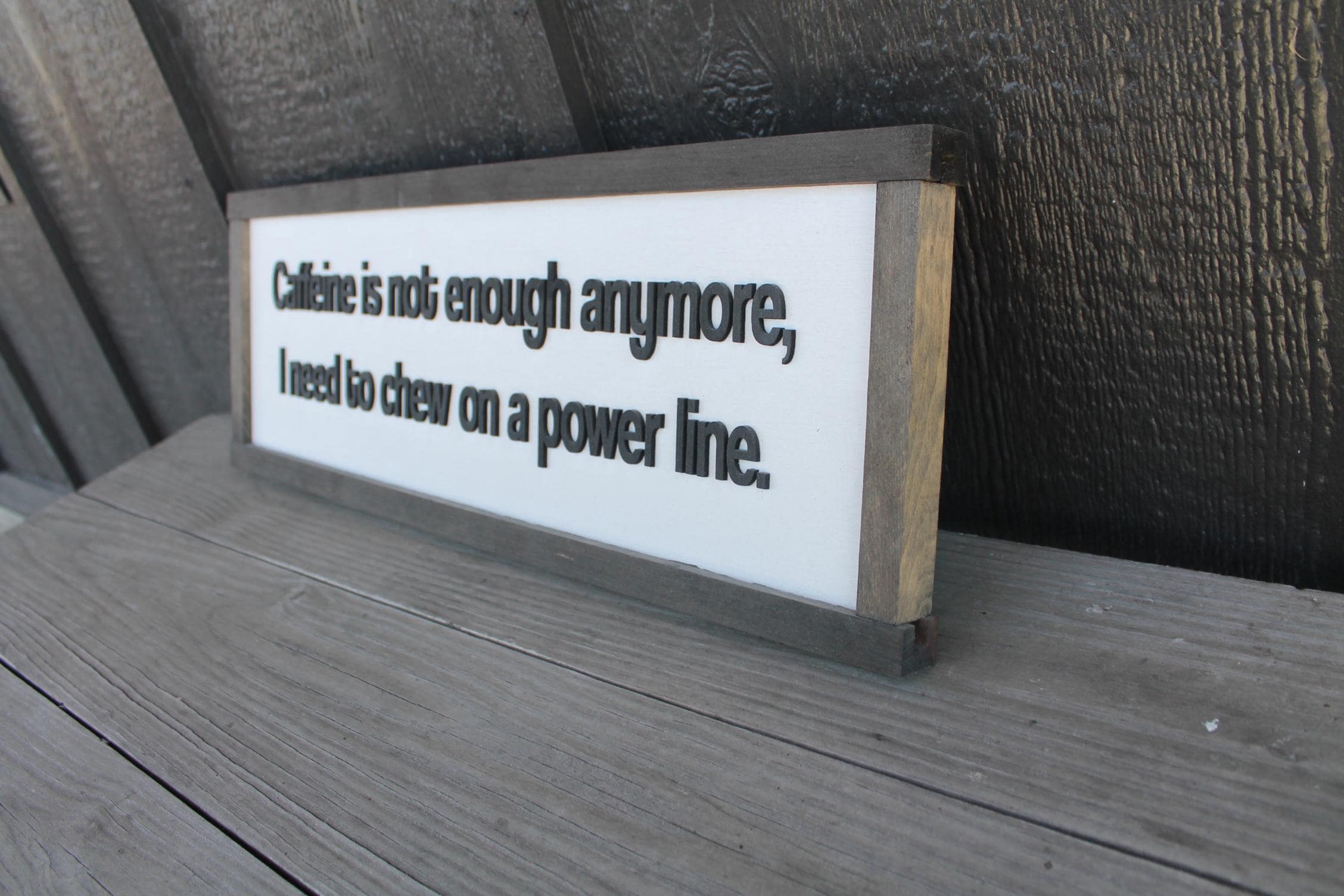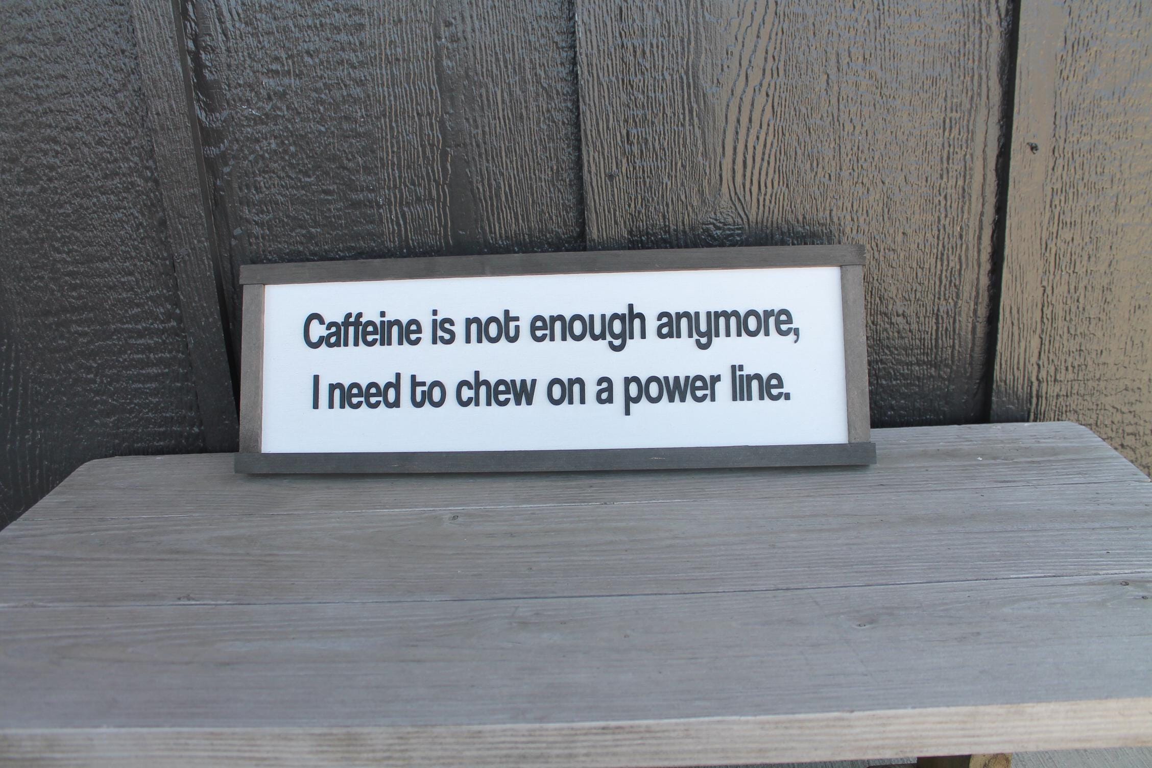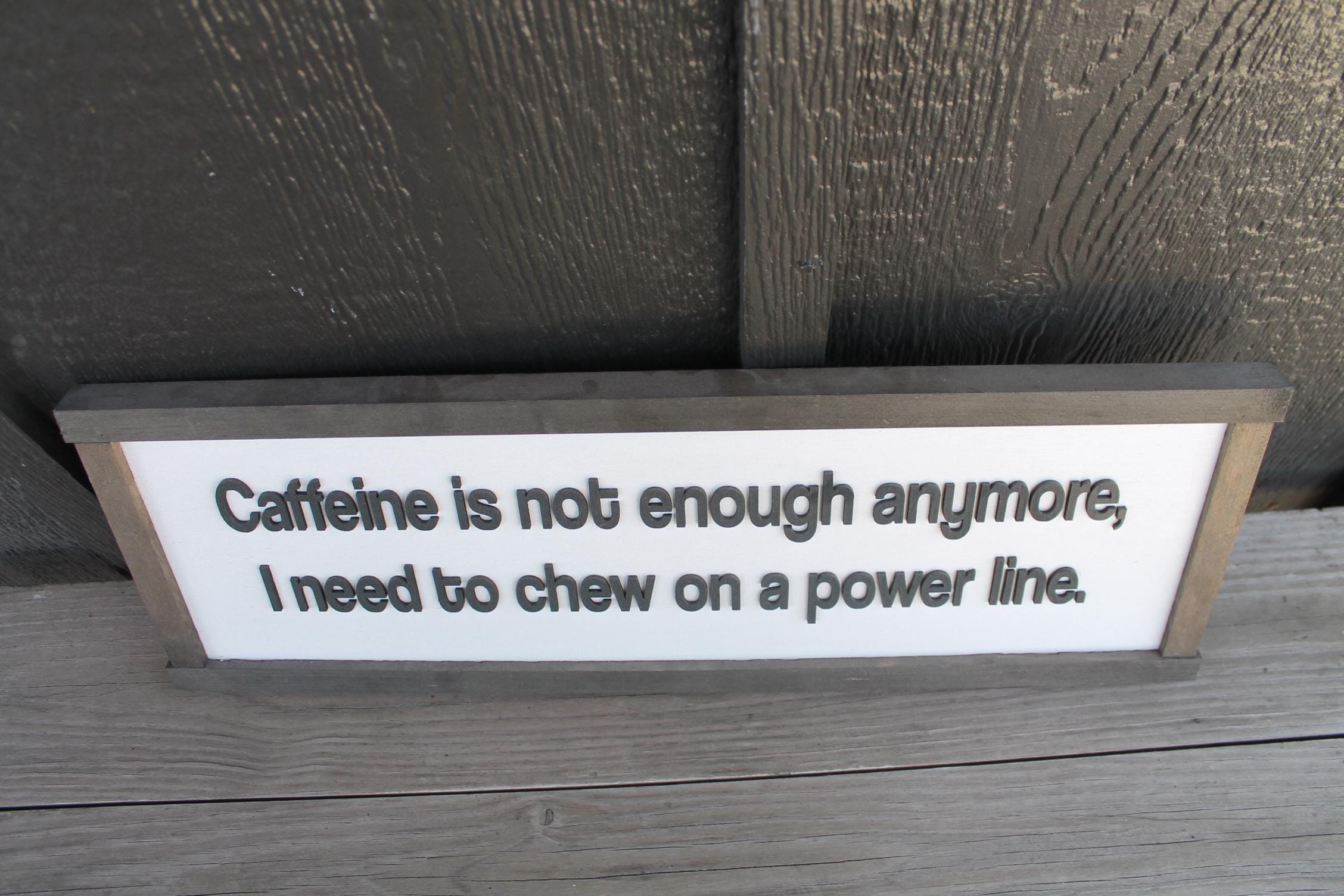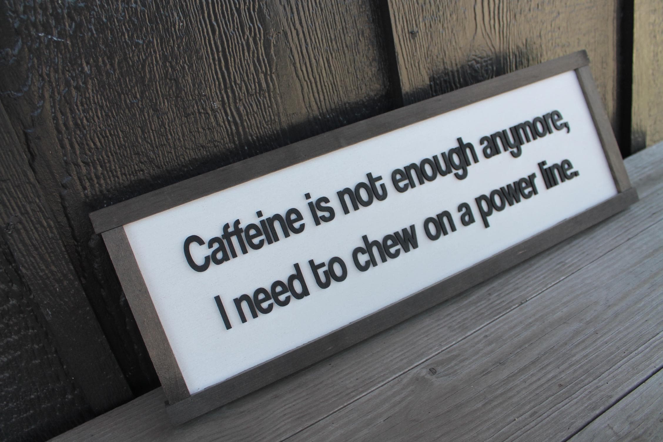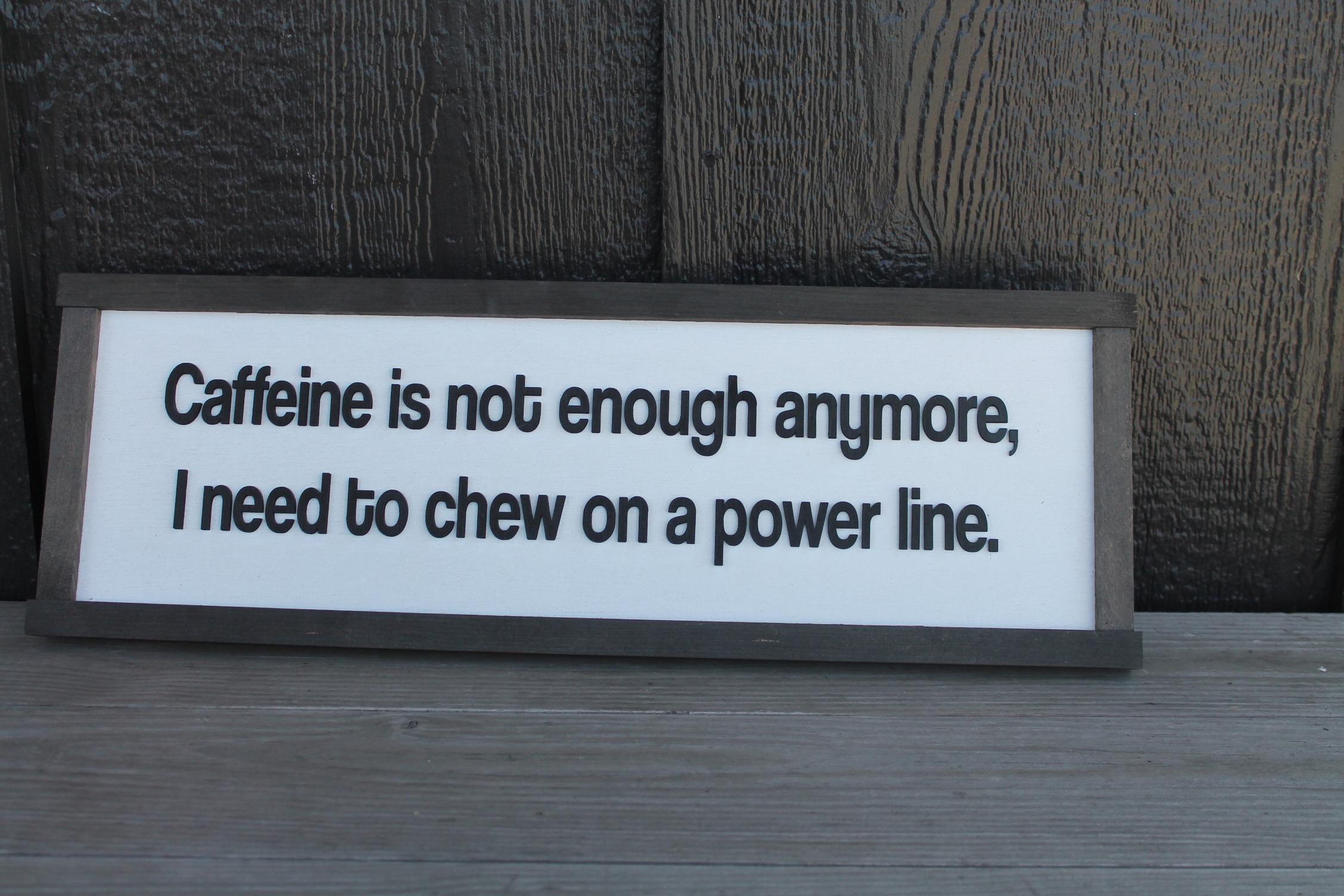 3D Funny Coffee Sign • Raised “Caffeine Is Not Enough” Wood Decor • Rustic Sarcastic Wall Art for Kitchen or Office