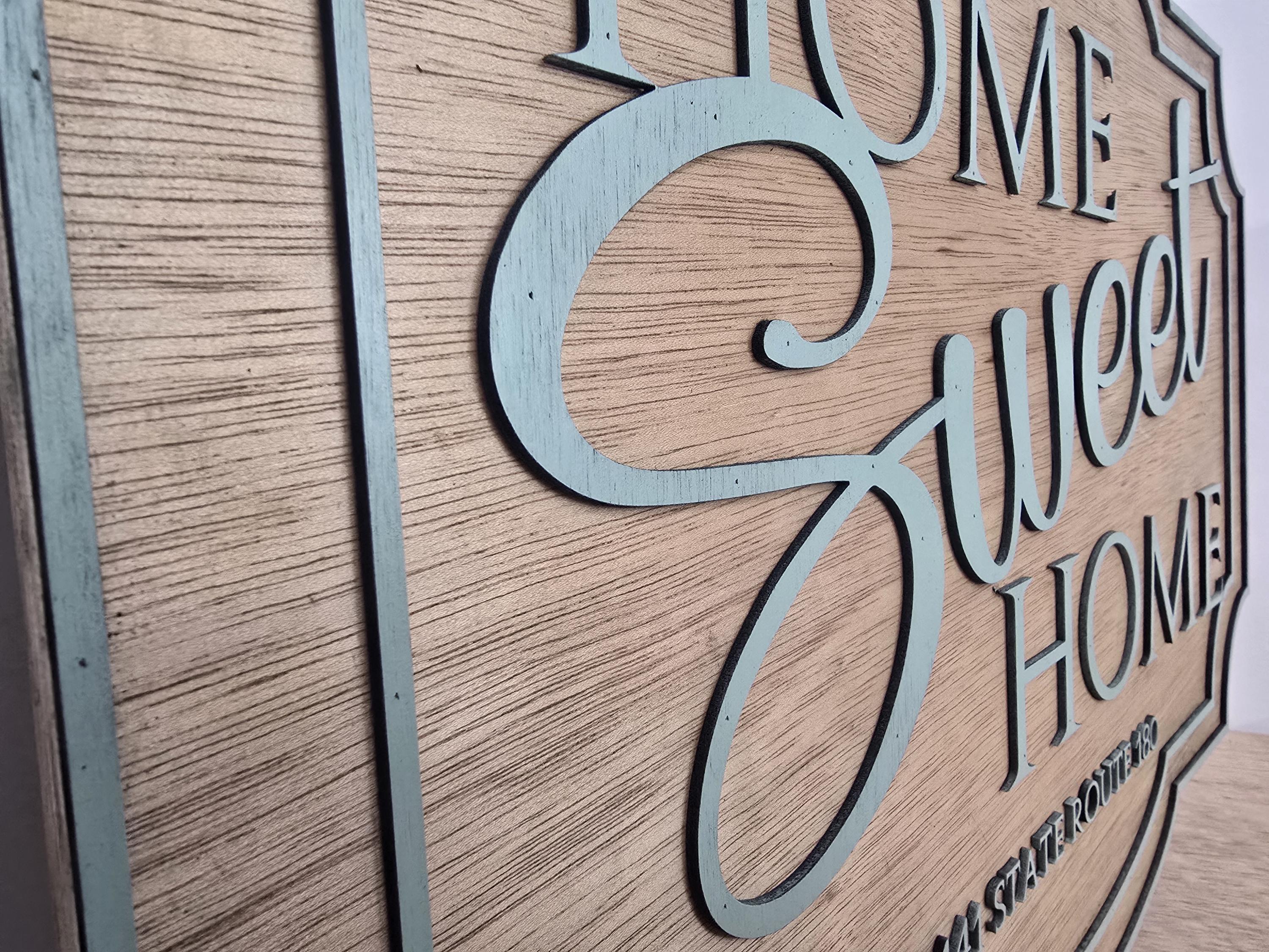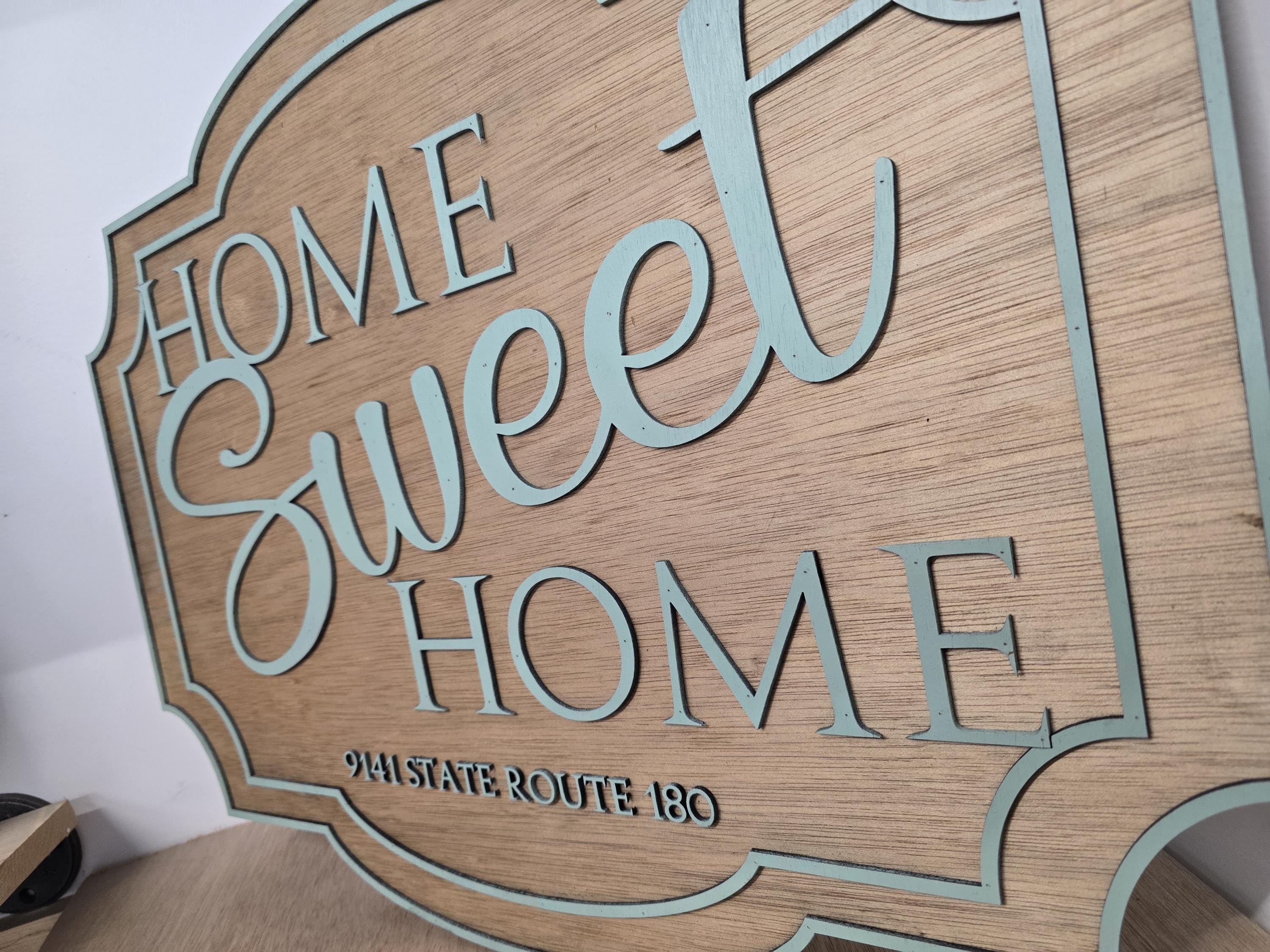 3D Home Sweet Home Sign • Raised Address Plaque • Rustic Farmhouse Entryway Decor • Personalized Family Home Wood Sign