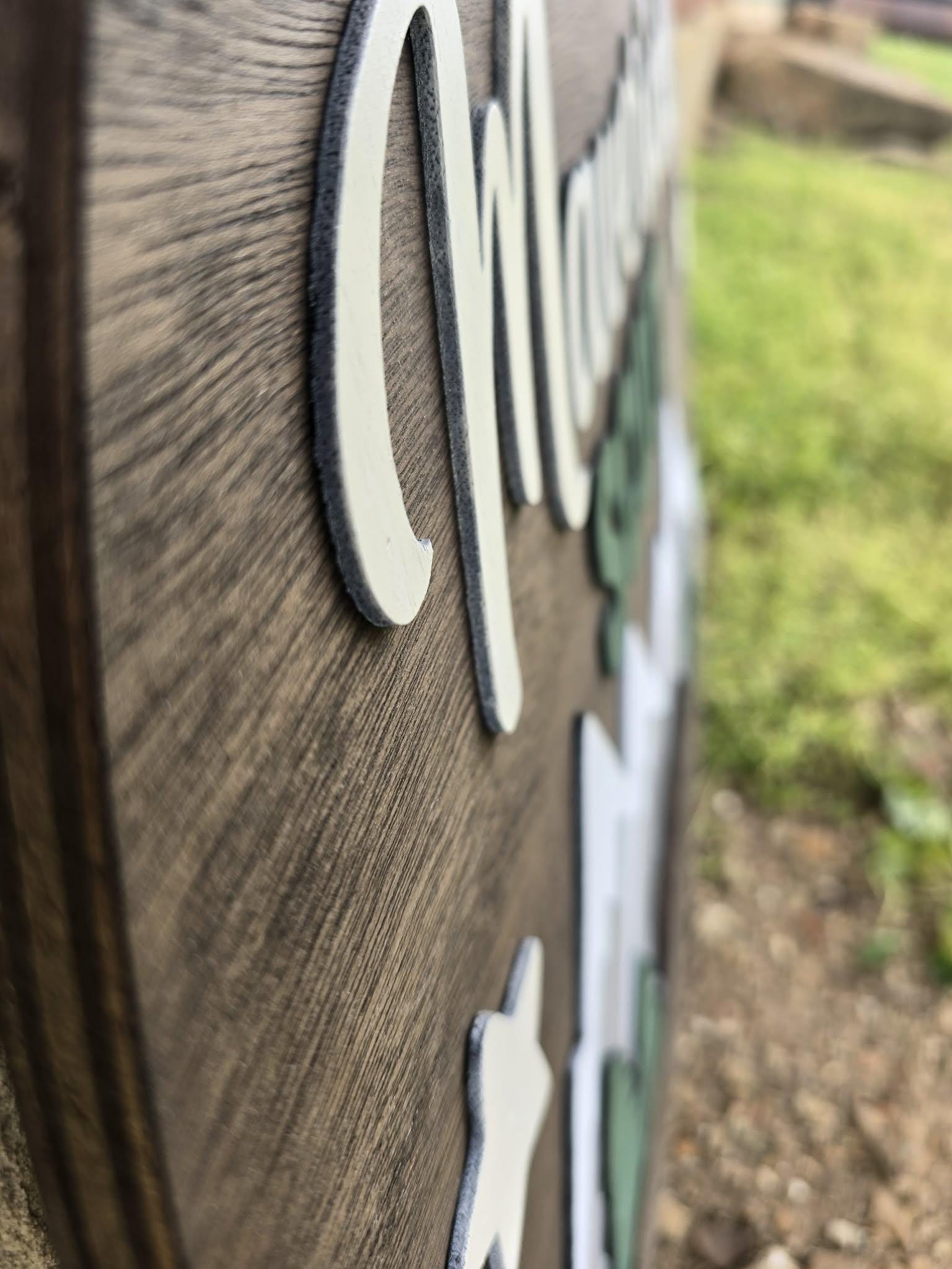 The lettering is not painted on, they are plywood letters that stand off the backboard. Please see the photos. Each piece is painted to be as close to the customers' needs as possible.