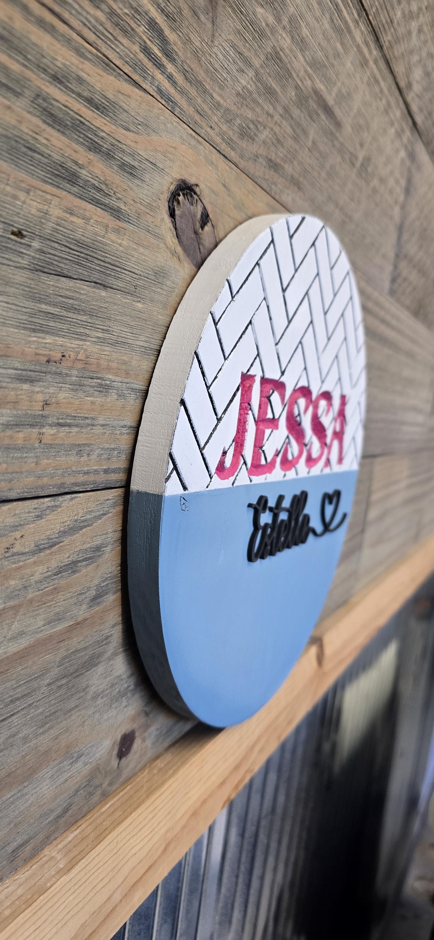 Engraved Custom Name Sign • Personalized Round Nursery Decor • Modern Script & Block Letter Wood Engraving