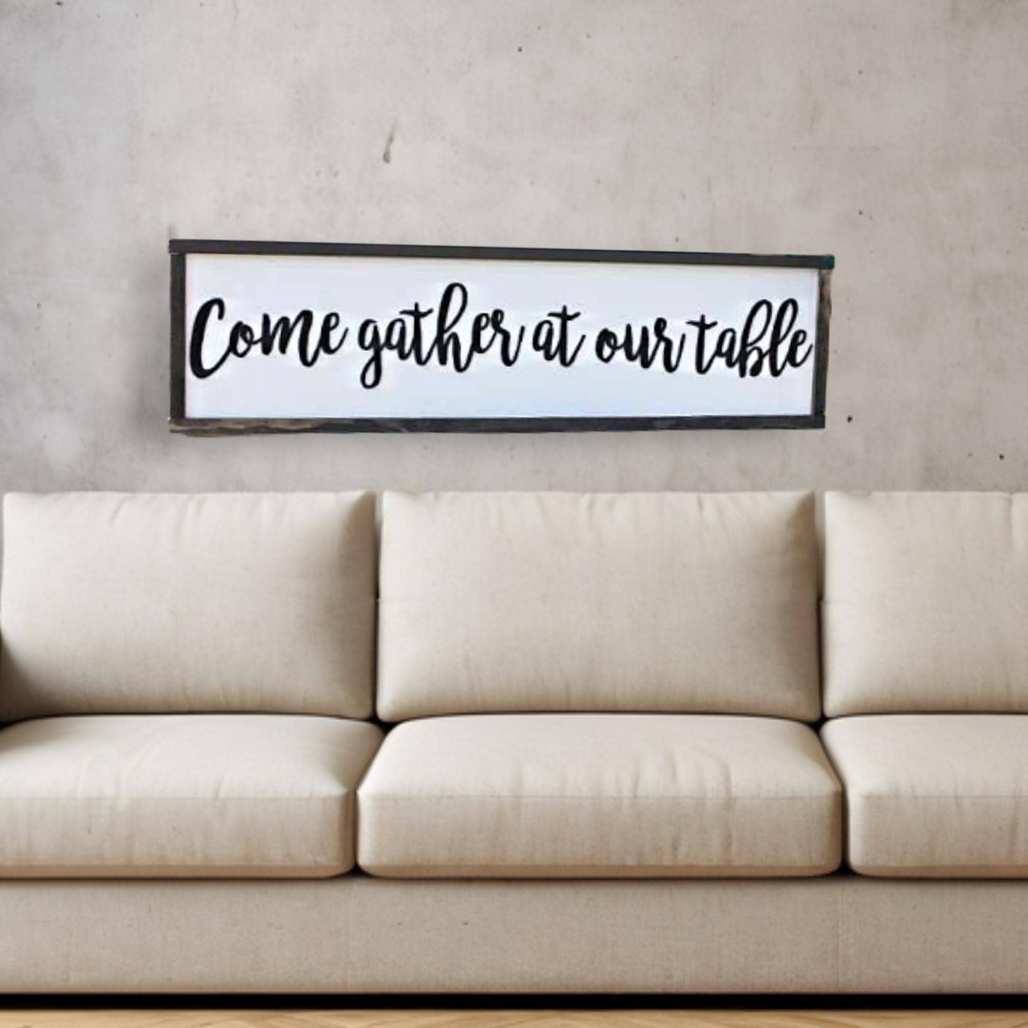3D Distressed Farmhouse Sign • “Come Gather at Our Table” • Chippy Raised‑Letter Rustic Kitchen & Dining Room Decor