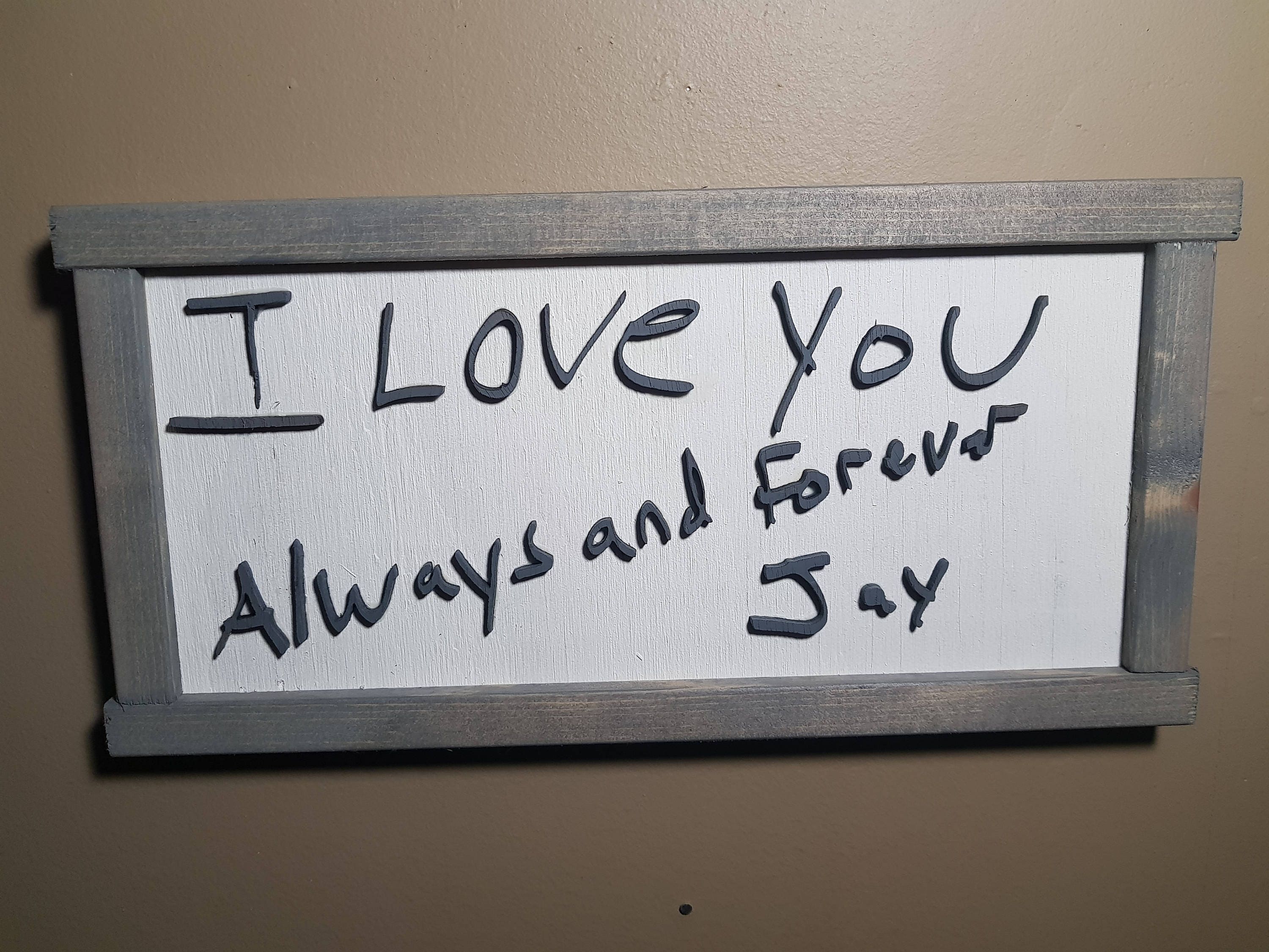 Gift for girlfriend, your actual handwriting cut from wood sign