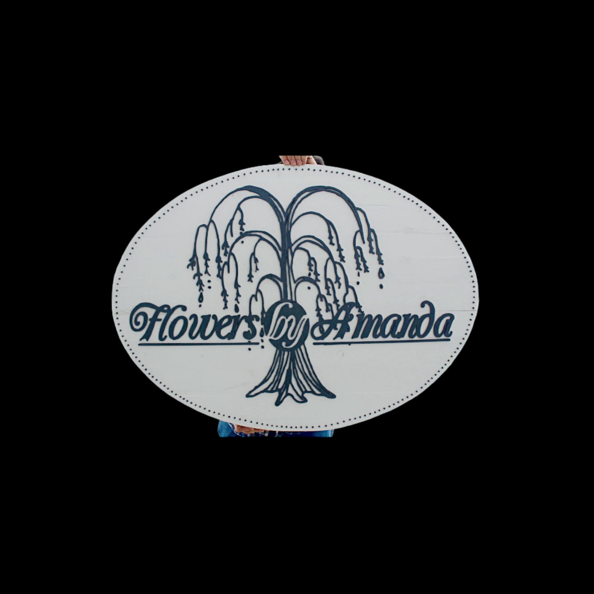 Raised Rustic Artisan Logo Sign • 3D Custom Business Branding • Handcrafted Oval Shop Sign with Willow Design for Small Boutiques