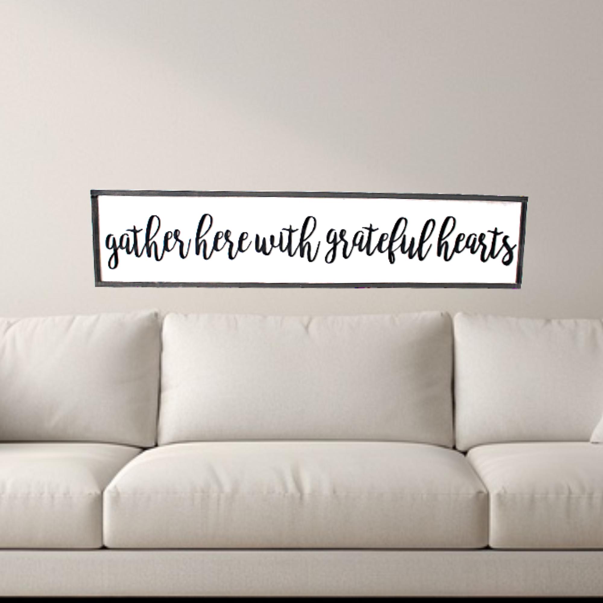 Rustic 3D Wood Sign – Gather Here With Grateful Hearts – Farmhouse Wall Decor – Distressed Layered Home Sign – Country Cottage Style