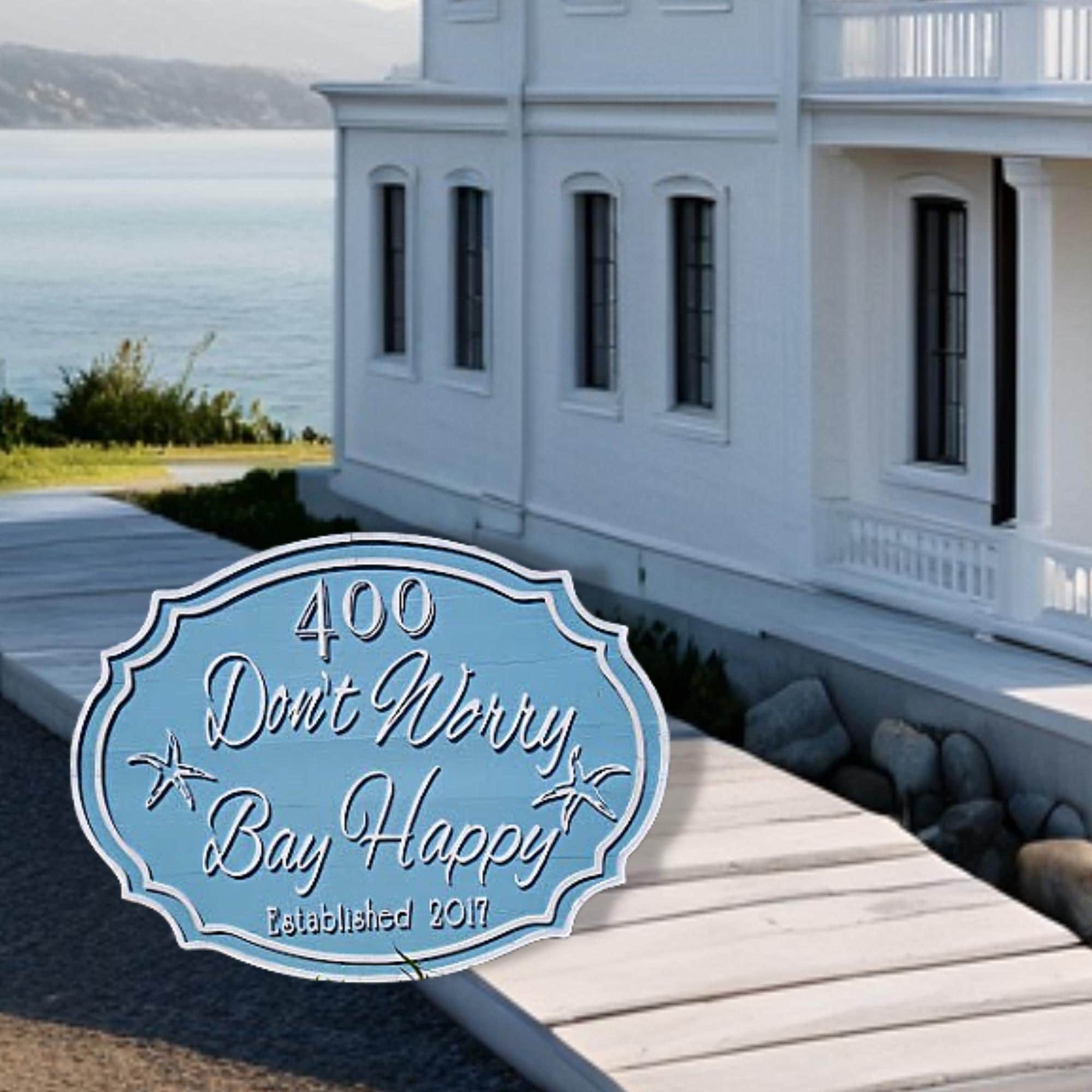 Raised Text Coastal Sign • Don’t Worry Bay Happy Sign • 3D Beach House Decor • Custom Coastal Cottage Sign