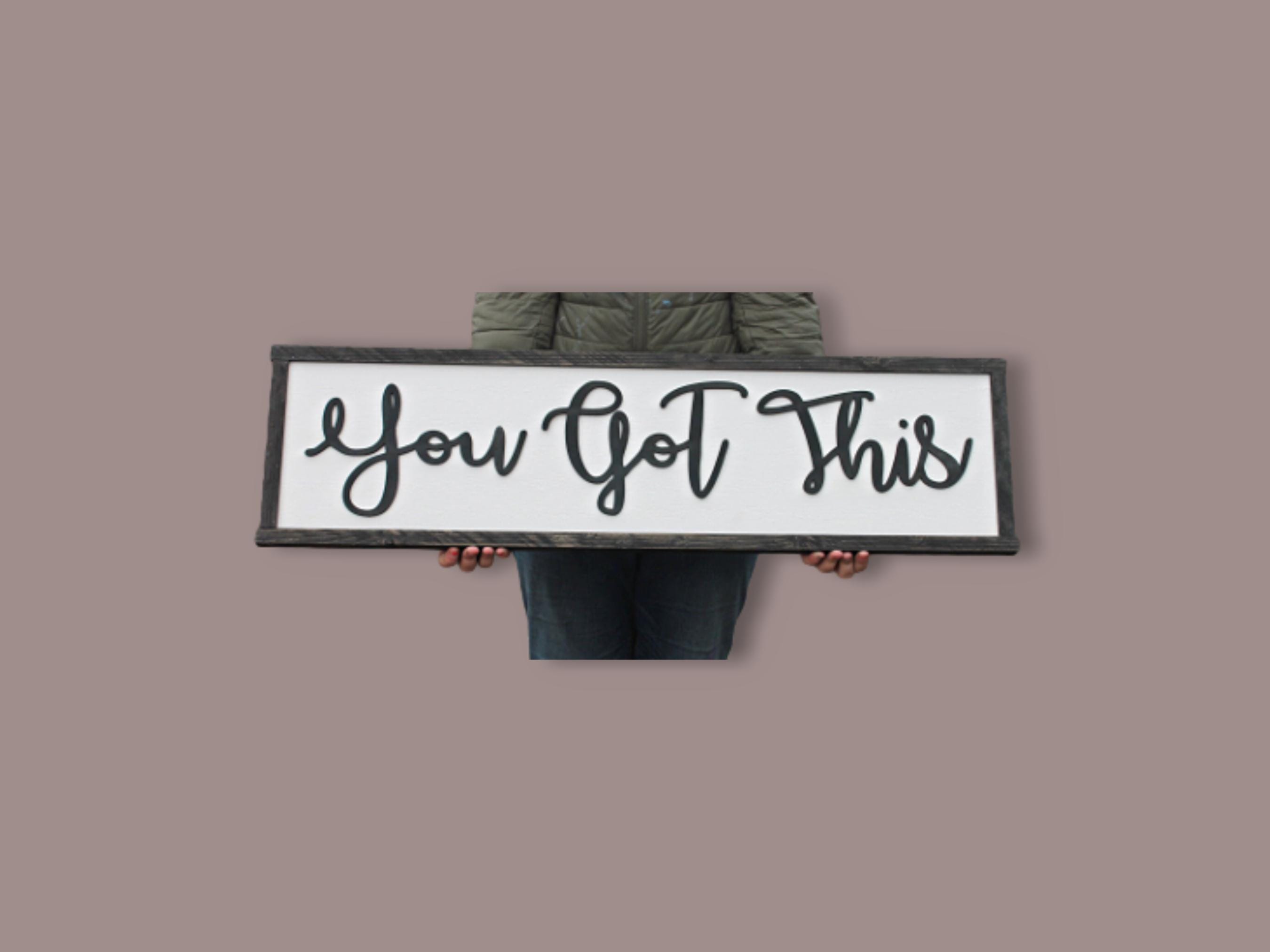 Raised 3D Wood You Got This Sign • Motivational Wall Decor • Modern Farmhouse Framed Wooden Sign • Positive Message Home Accent
